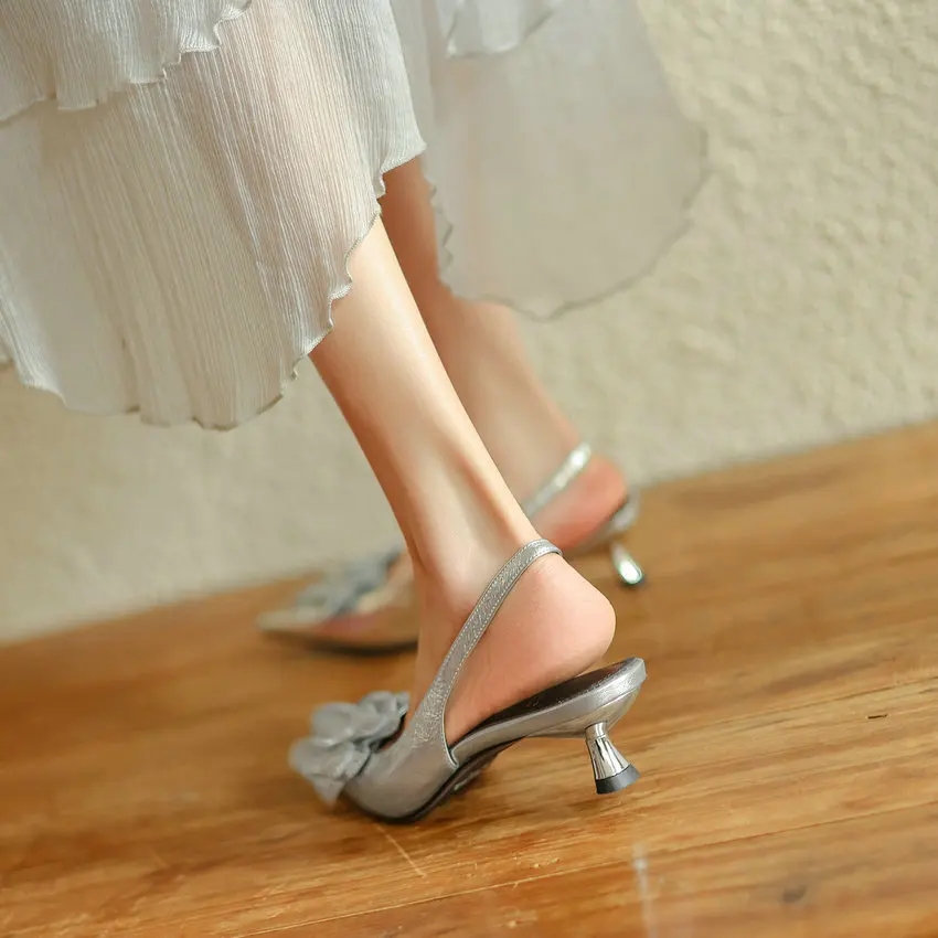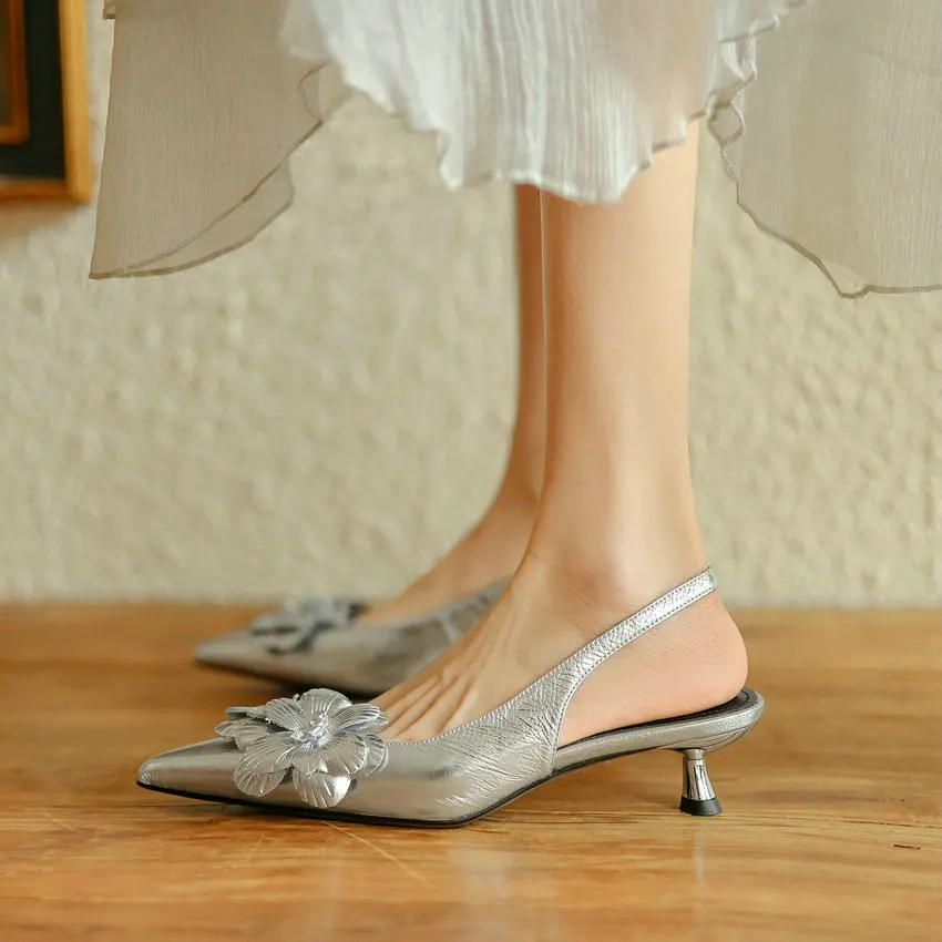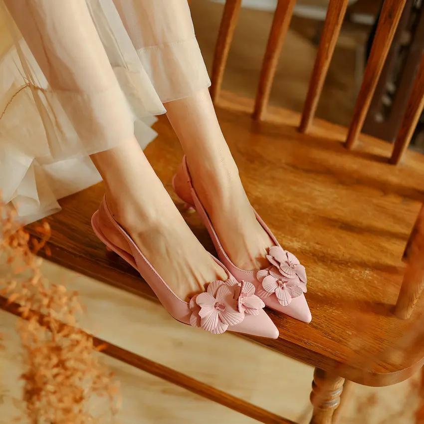 QUTAA 2024 Women Sandals Summer Party Office Ladies Wedding Pumps Leather Low...