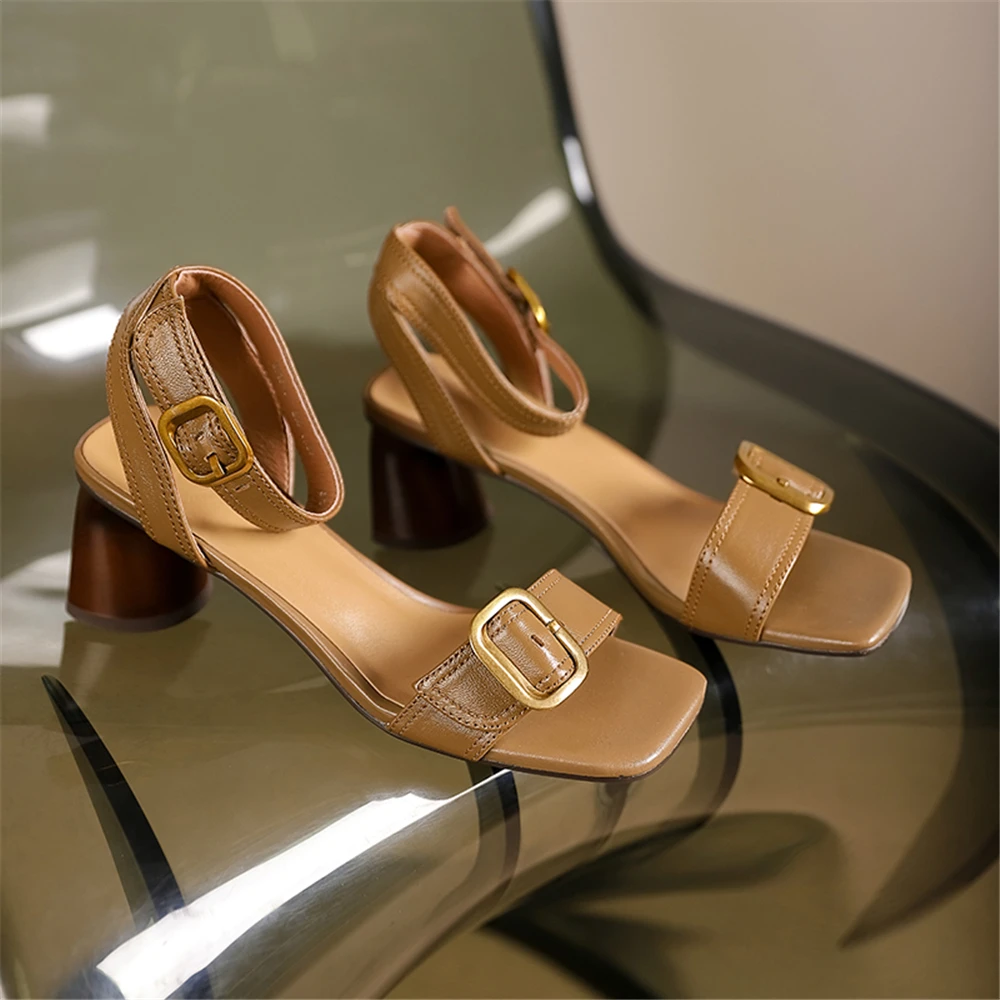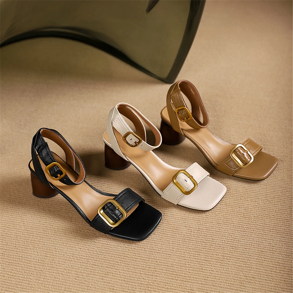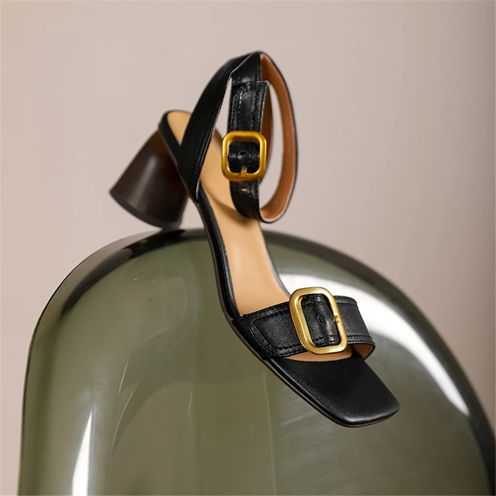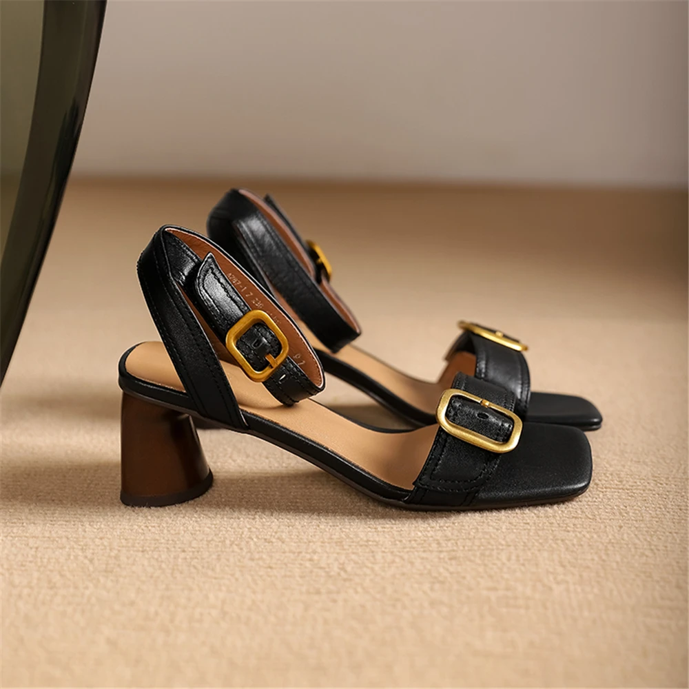 FEDONAS Elegant Women Genuine Leather Sandals Thick High Heels Buckles Office...