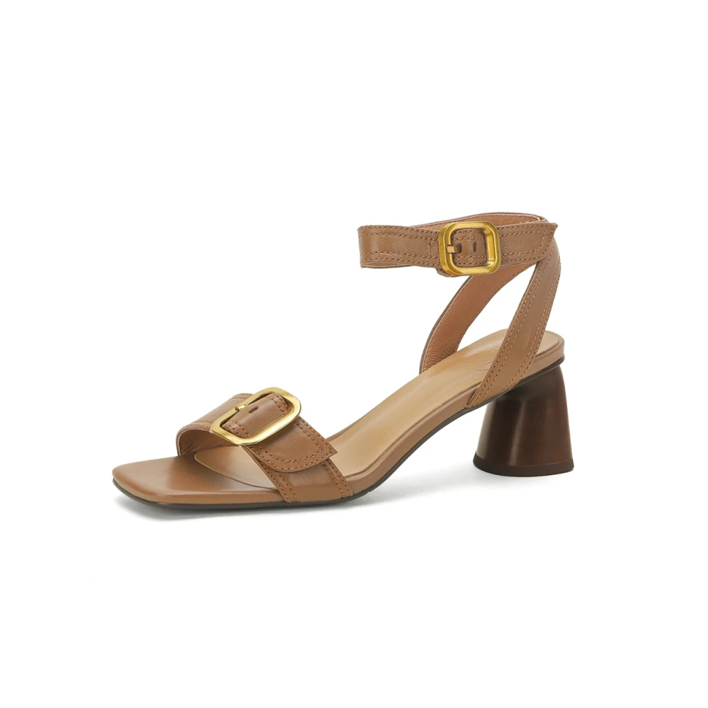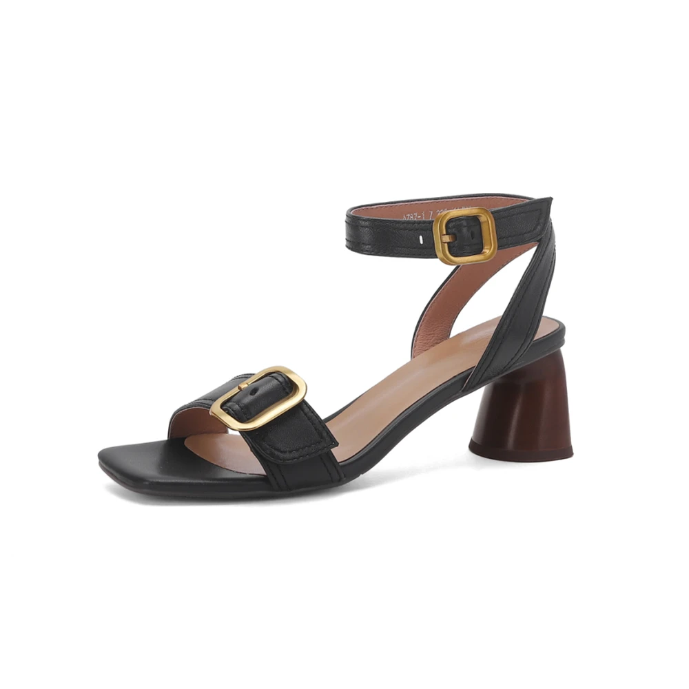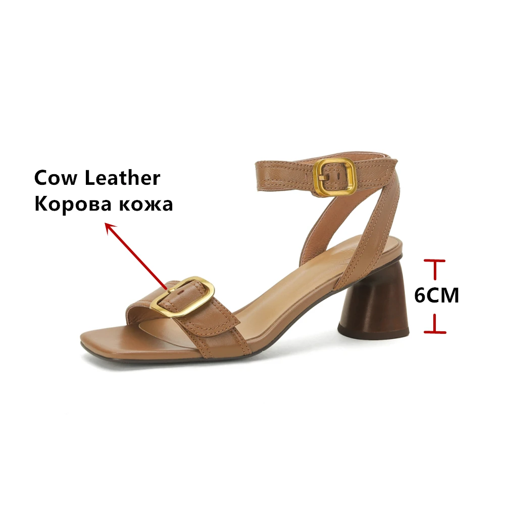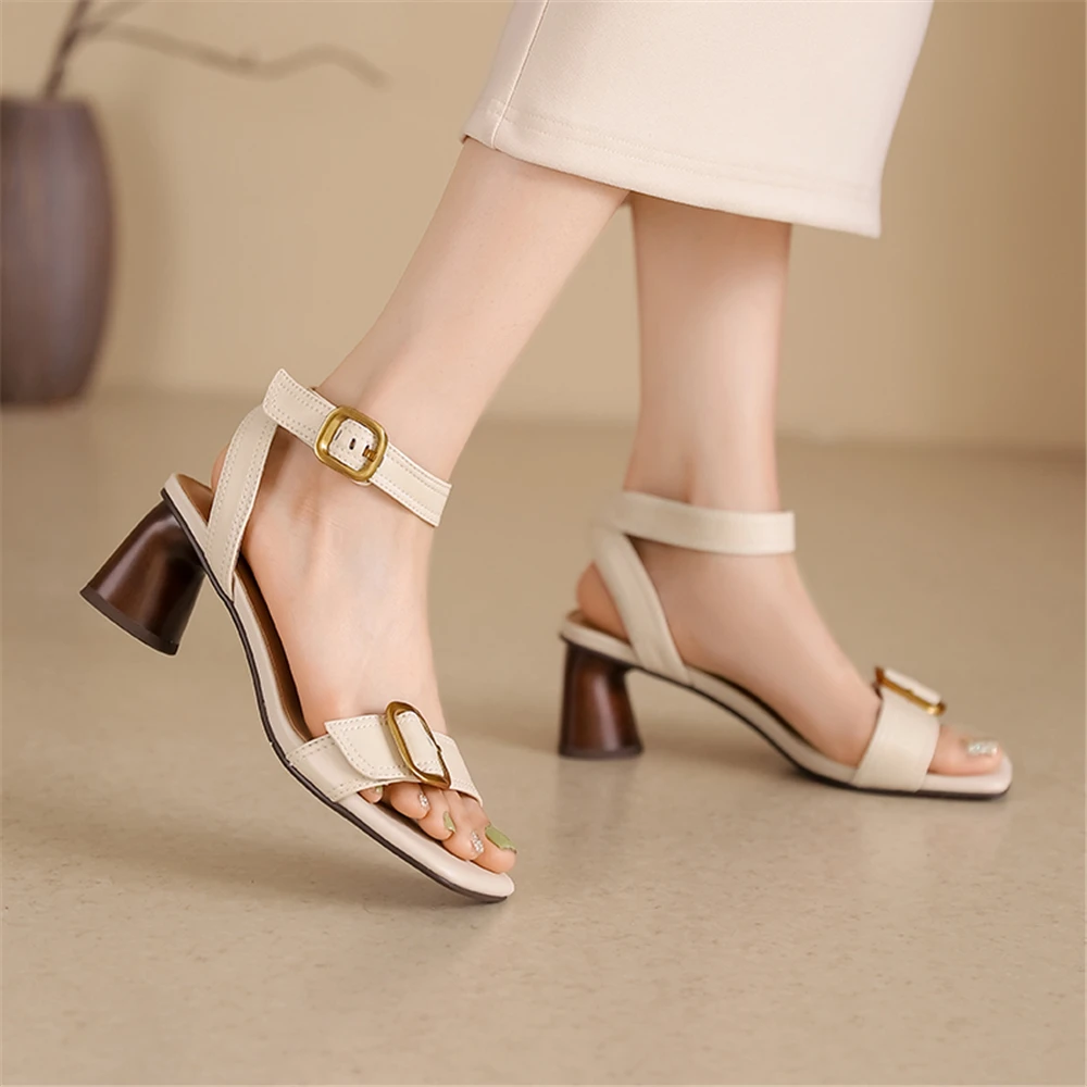 FEDONAS Elegant Women Genuine Leather Sandals Thick High Heels Buckles Office...