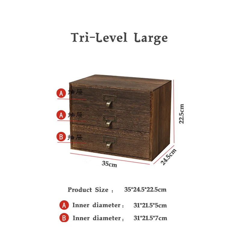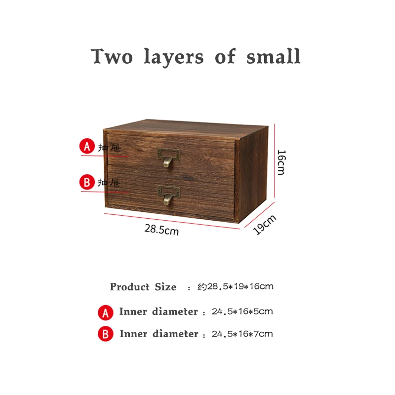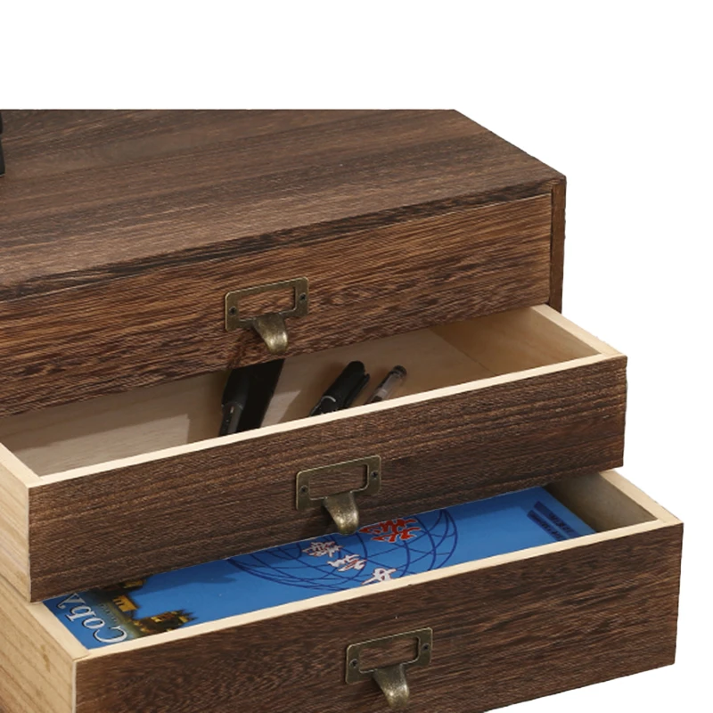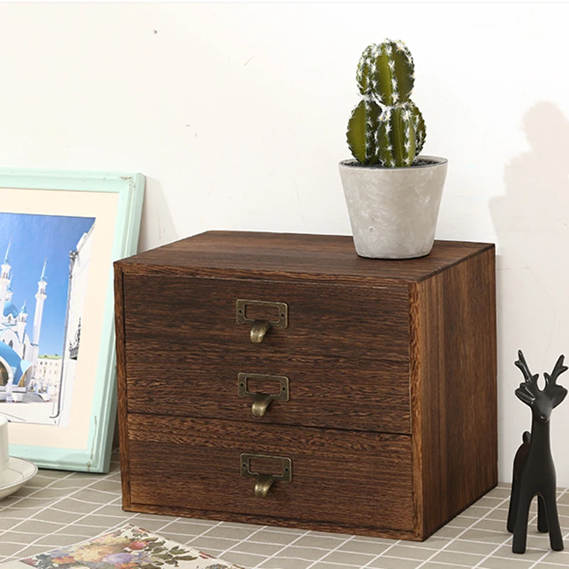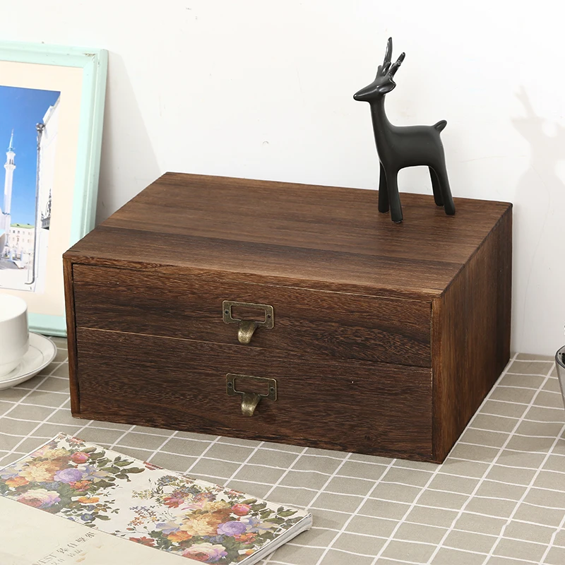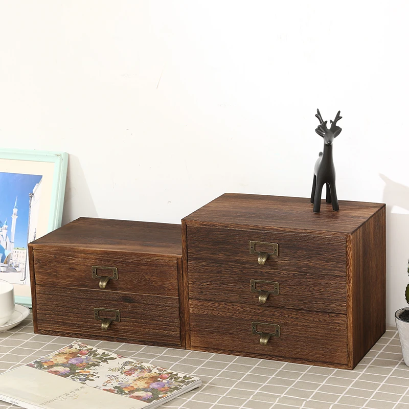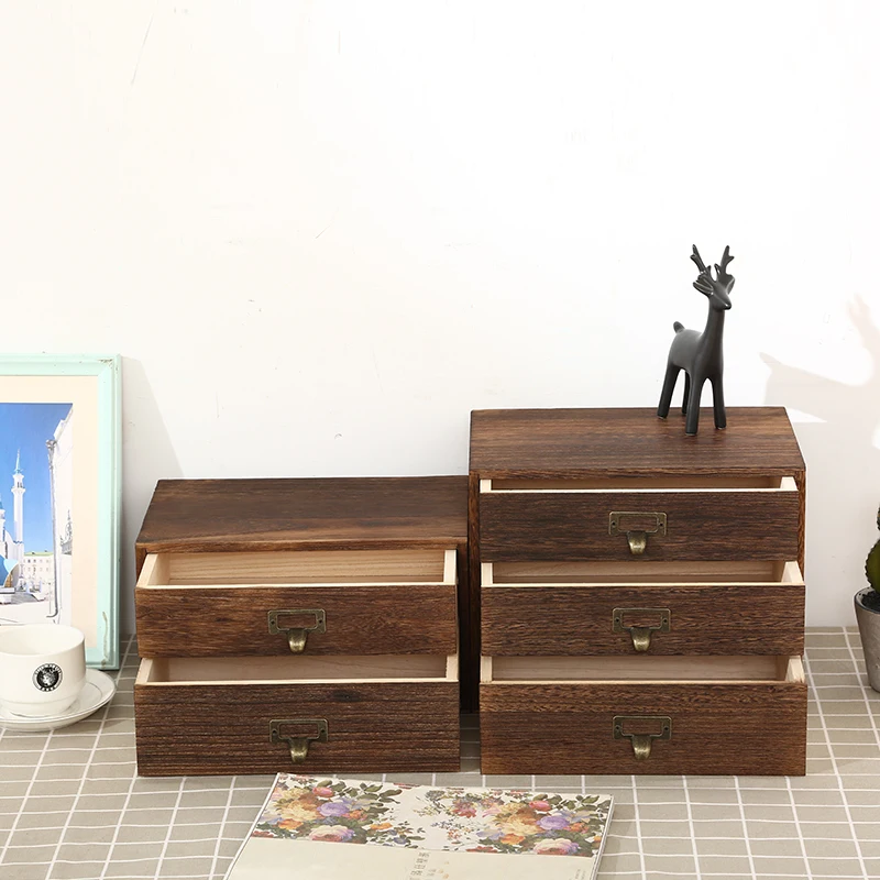 Solid wood multi-layer zakka desktop storage box wooden drawer storage box...