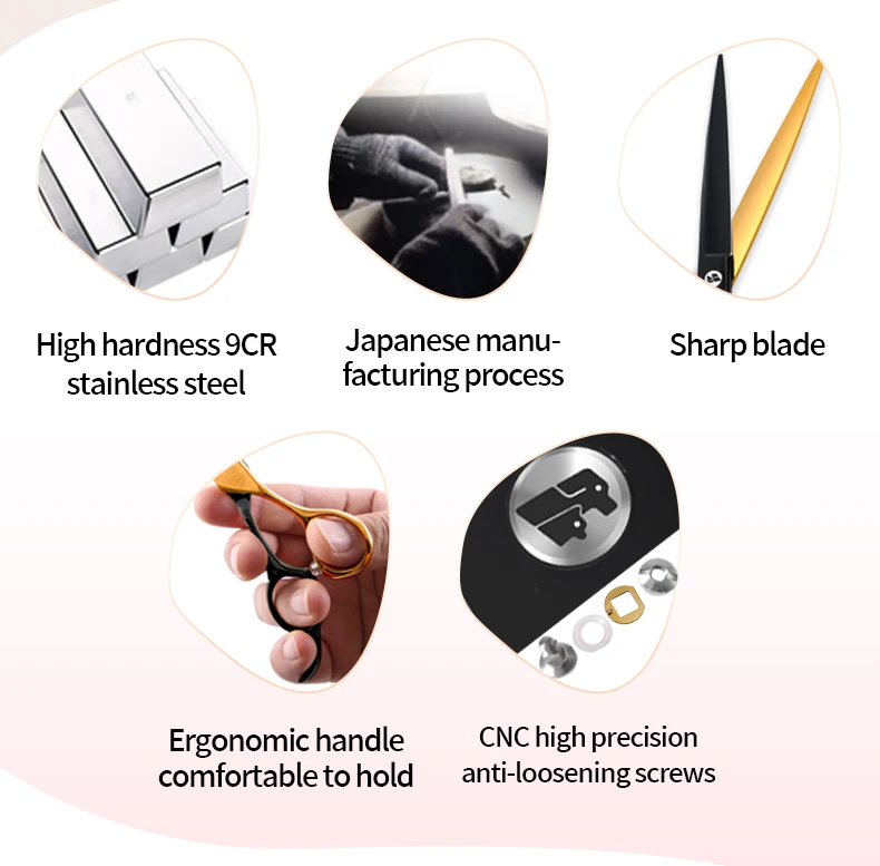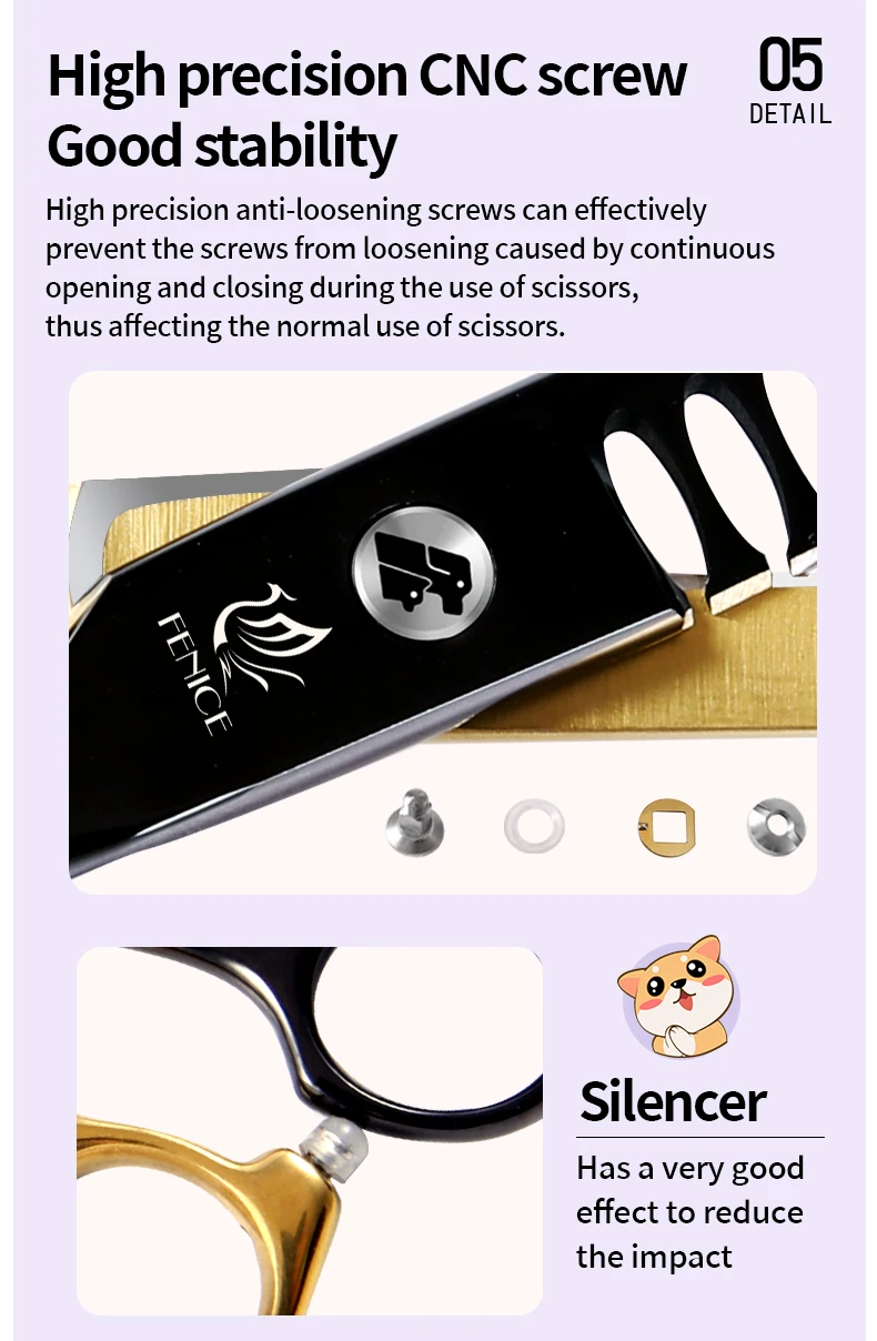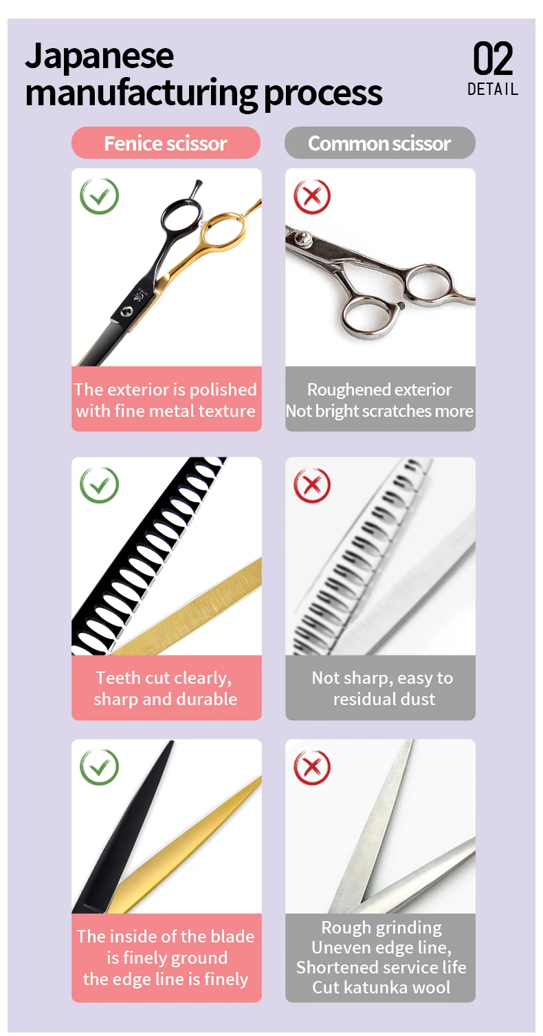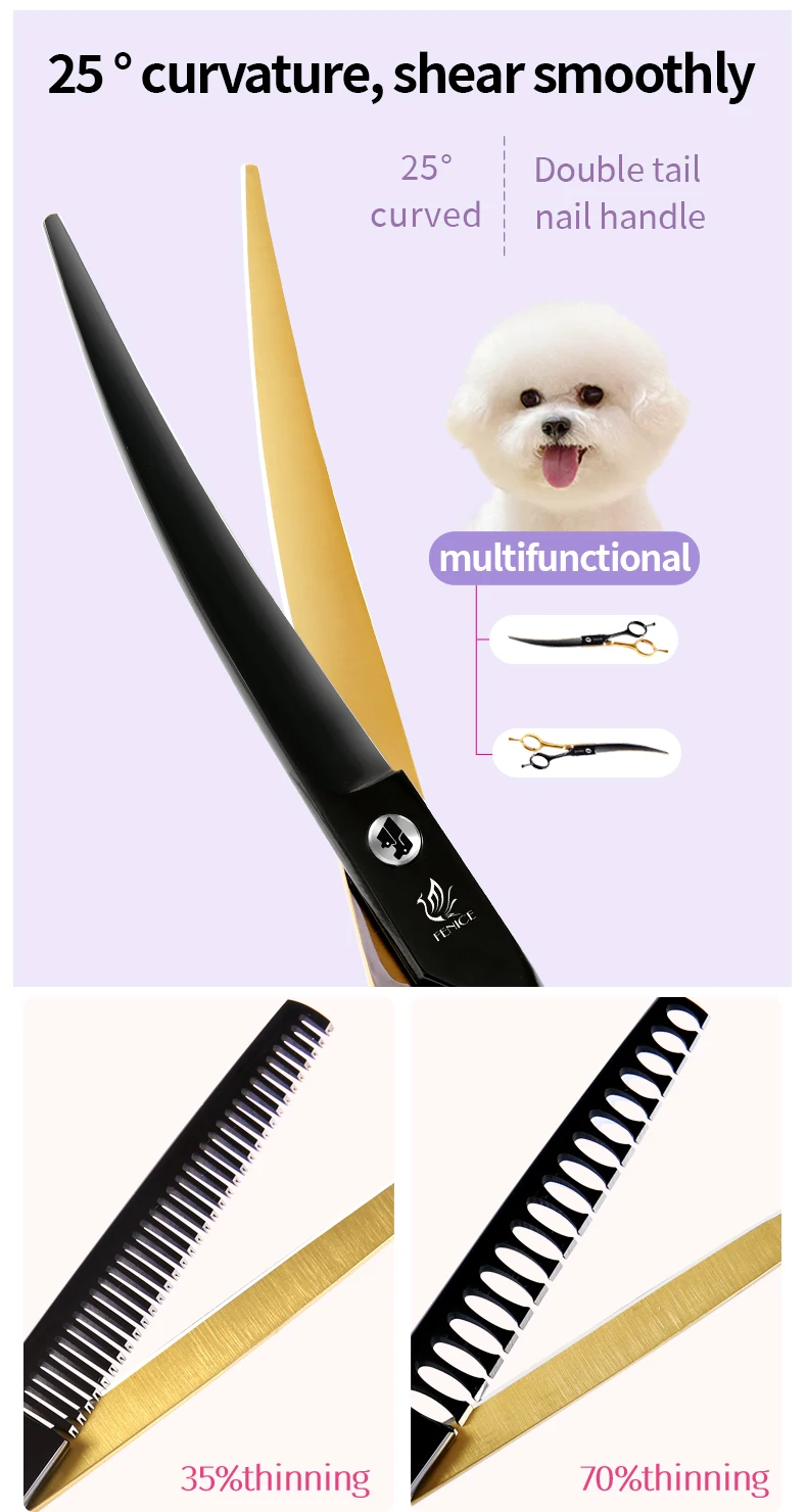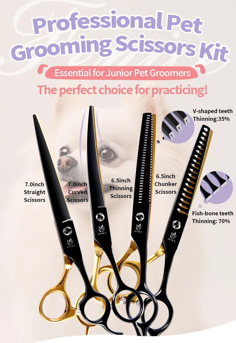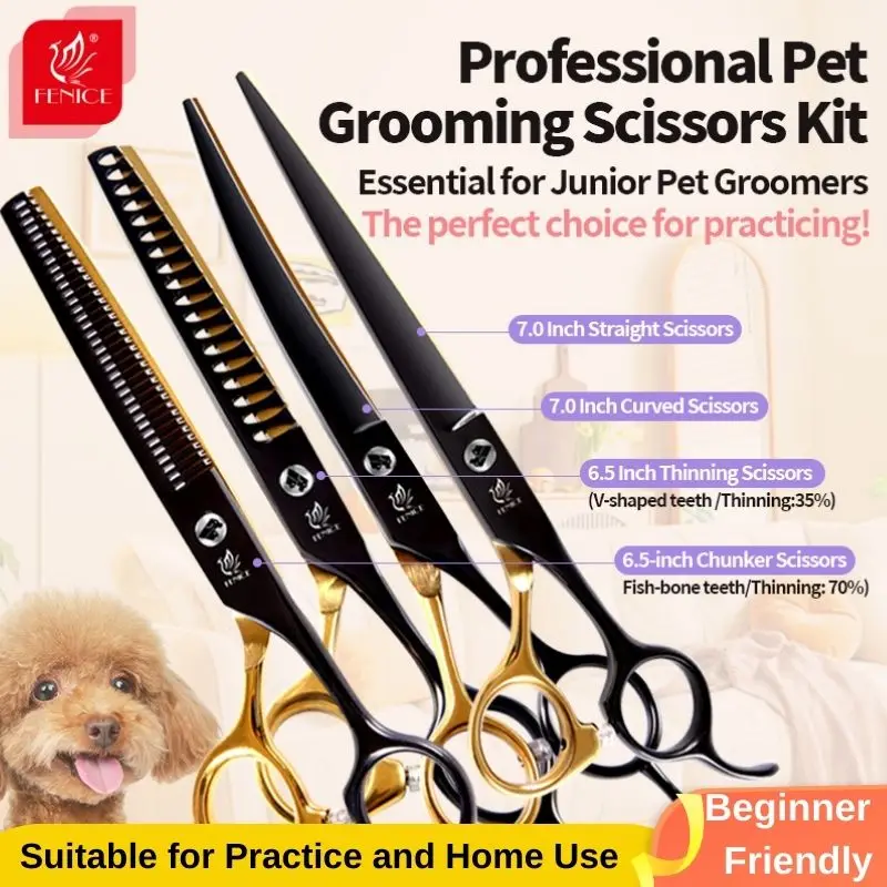 Fenice Professional Black and Gold Two-Color Pet Dogs Grooming Scissors Set for...