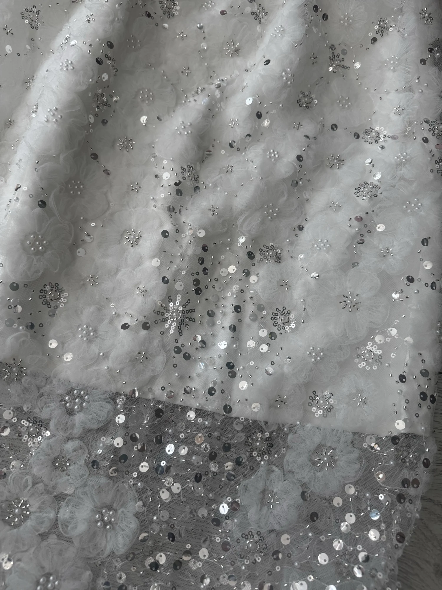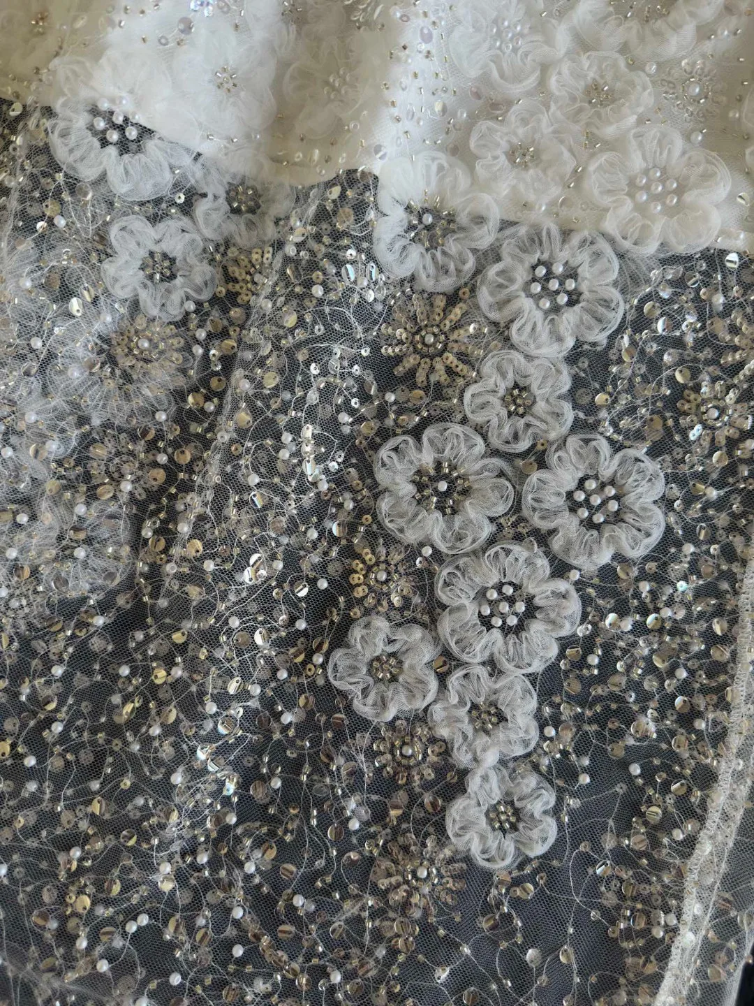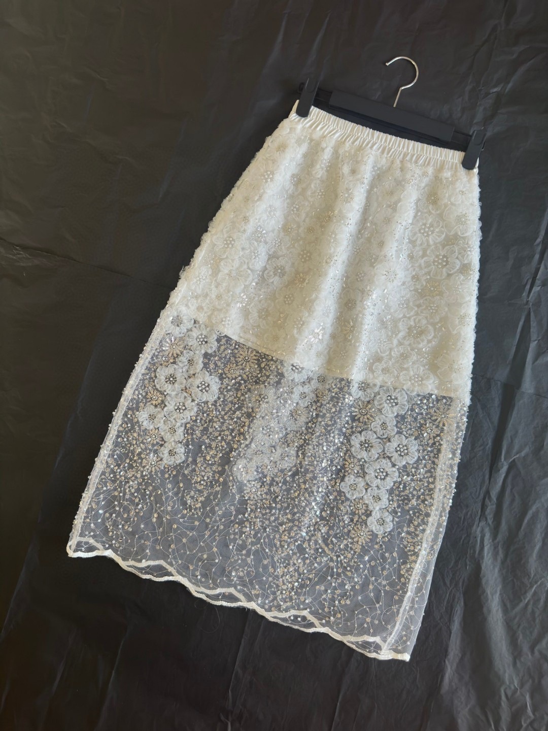 Unique White Lace Beaded Sequins High Waist Skirt Women's Trend