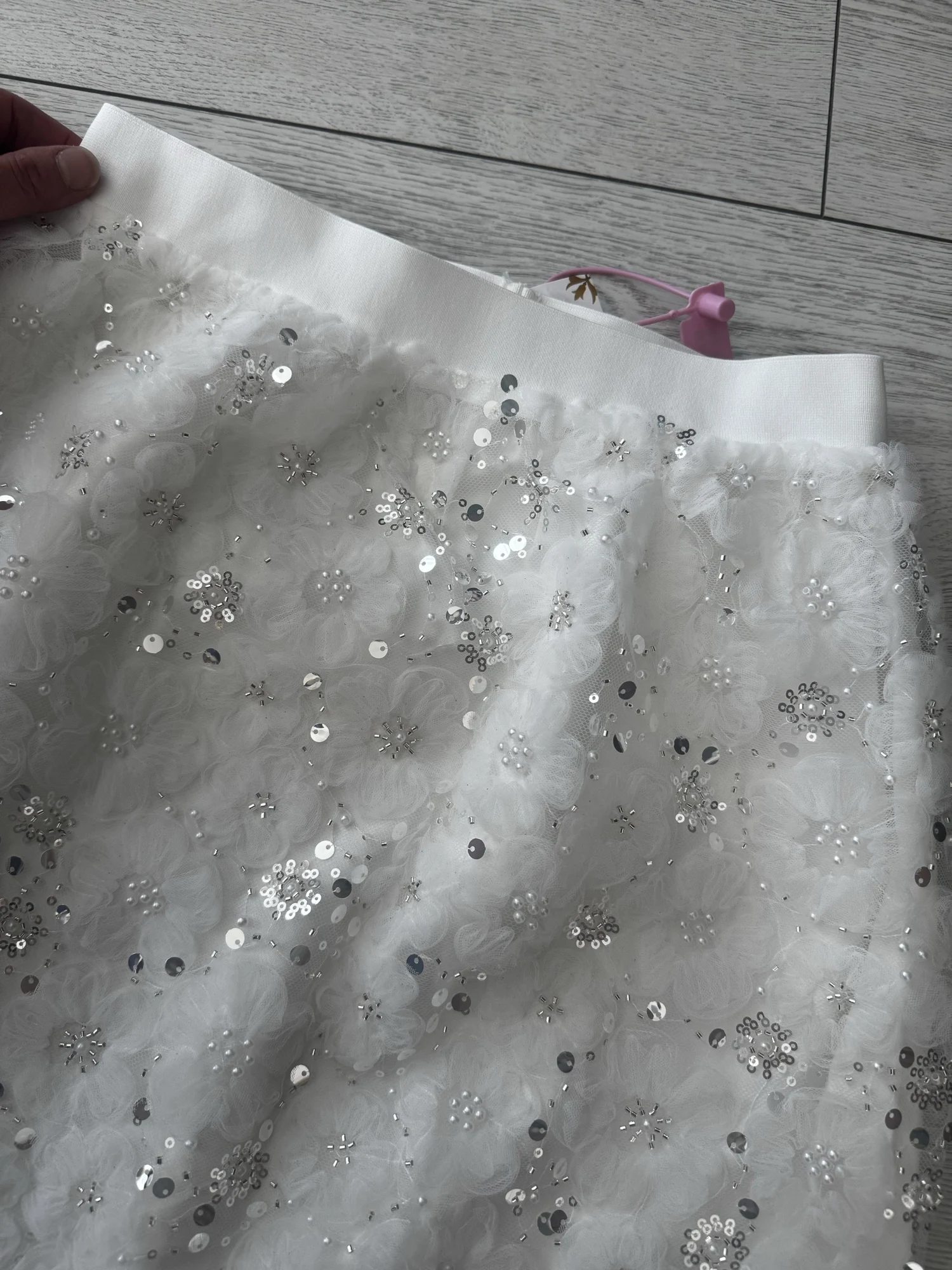 Это совершенно потрясающая и невероятно красивая юбка! Как все расшито и пришито чудесно, она вся блестит, переливается. На 44 р-р села идеально, она великолепна. Я бы подарила ей все 10 звезд, но вынуждена снять хотя бы одну за дырку, она конечно незаметна, но я абсолютно уверена, что такой она уже ко мне пришла, пакет был не поврежден при транспортировке, а я при открытии пакета не использовала НИЧЕГО, поэтому очень жаль, но я придумаю, как это спрятать.