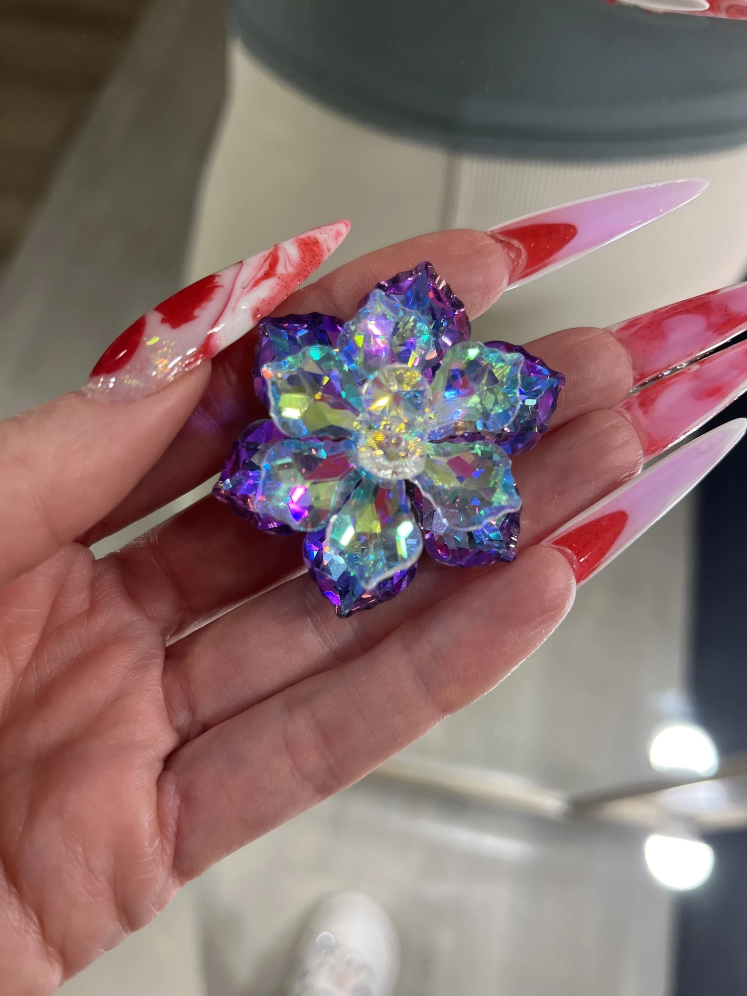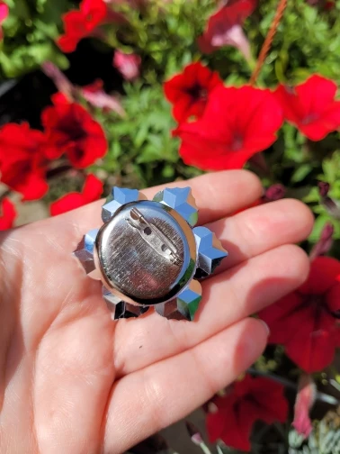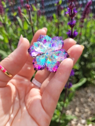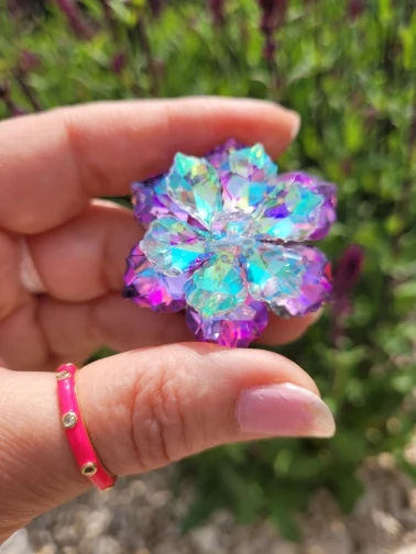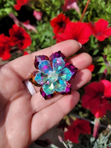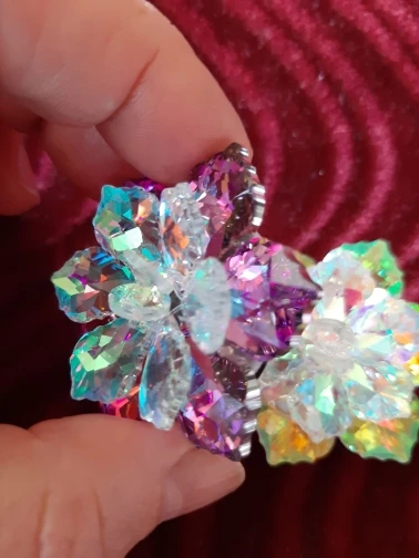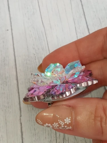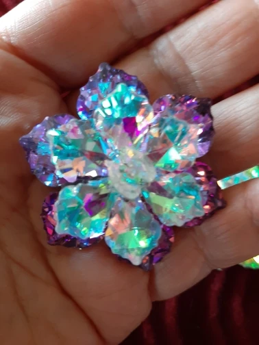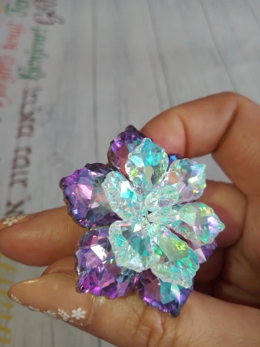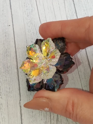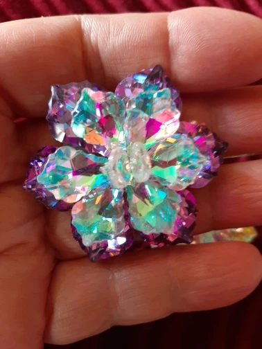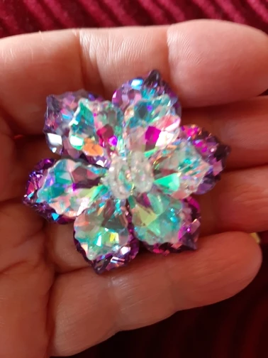Брошечка классная! Но пришла с браком... сколы на 2-х лепестках и на нижнем ярусе развернут лепесток неправильно и много клея. Осколков в пакете не было, значит уже отправили брошку с браком. ...Открыла спор ...жду. Заказывала 3 расцветки, 2 другие брошки отличные.
