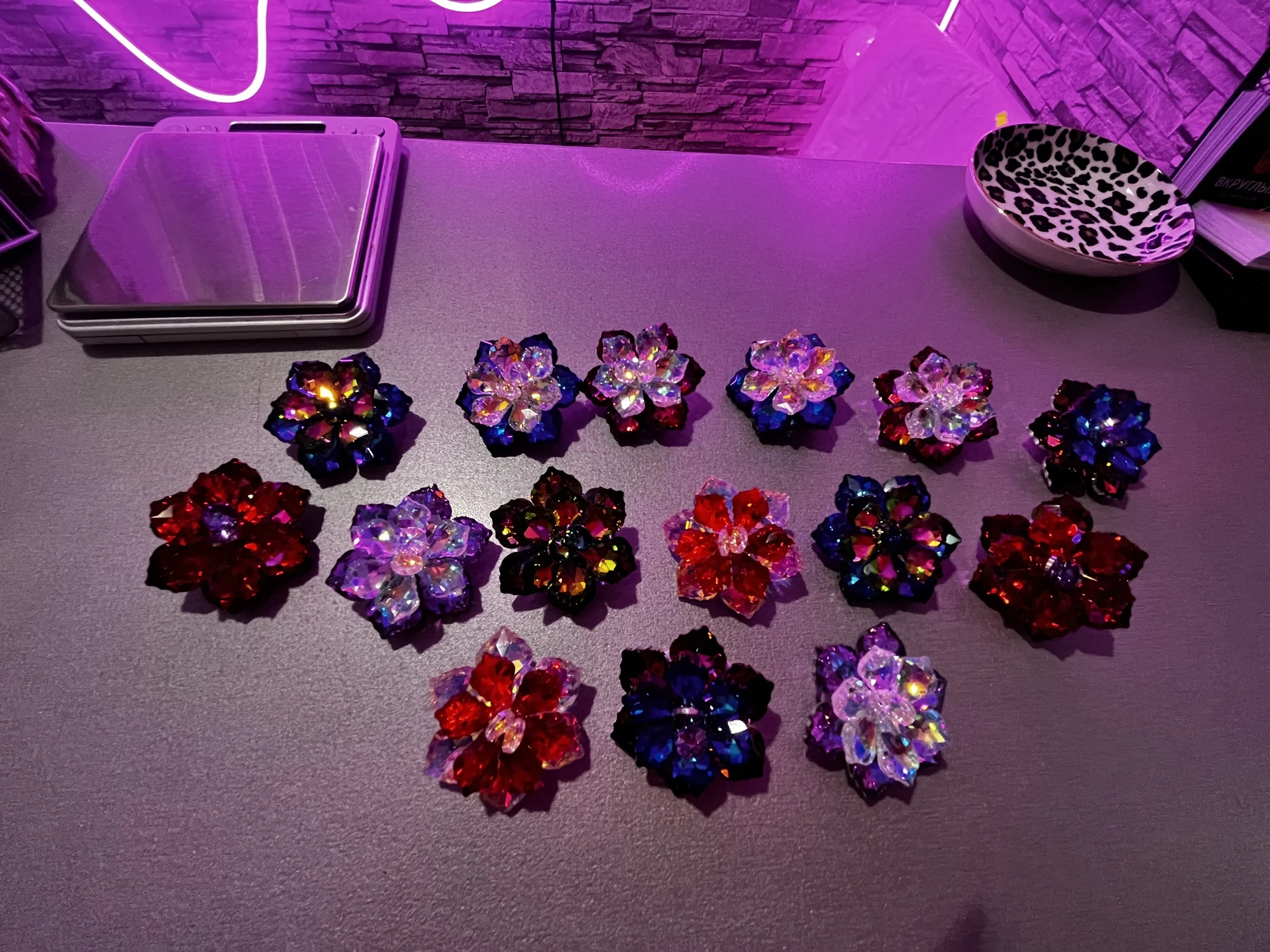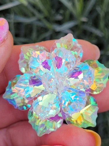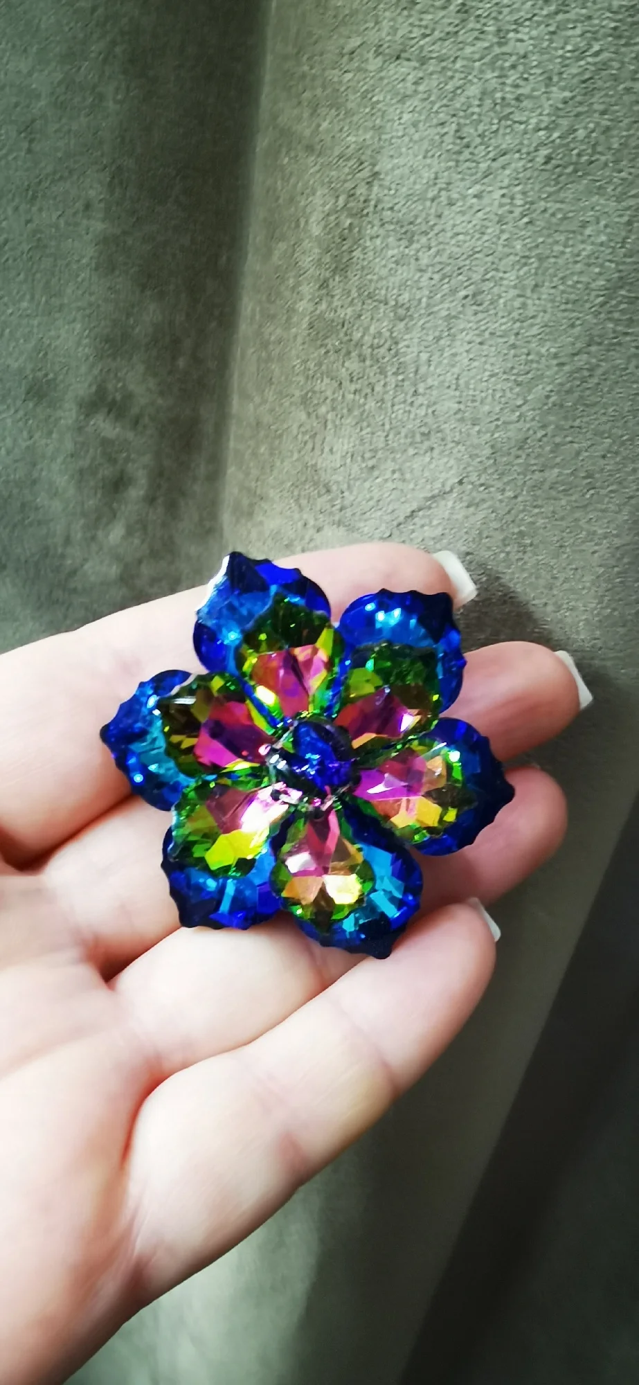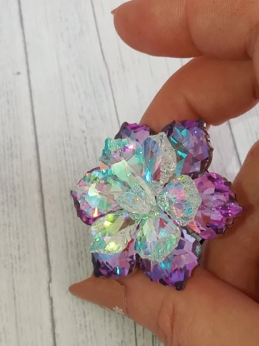 Трудно выбрать, какая из них прекрасней, - все три варианта цвета бесподобно смотрятся. Лепестки, похоже стекло. Огранка выше всяких похвал, - сияние бесподобное, завораживает своей красотой. По весу брошь тяжёленькая, только для объекмных вещей, либо для украшения сумочки. Много изделий приобрела в этом магазине, всегда всё безупречно, спасибо. Магазин, продавца и его товар рекомендую, всё надёжно.