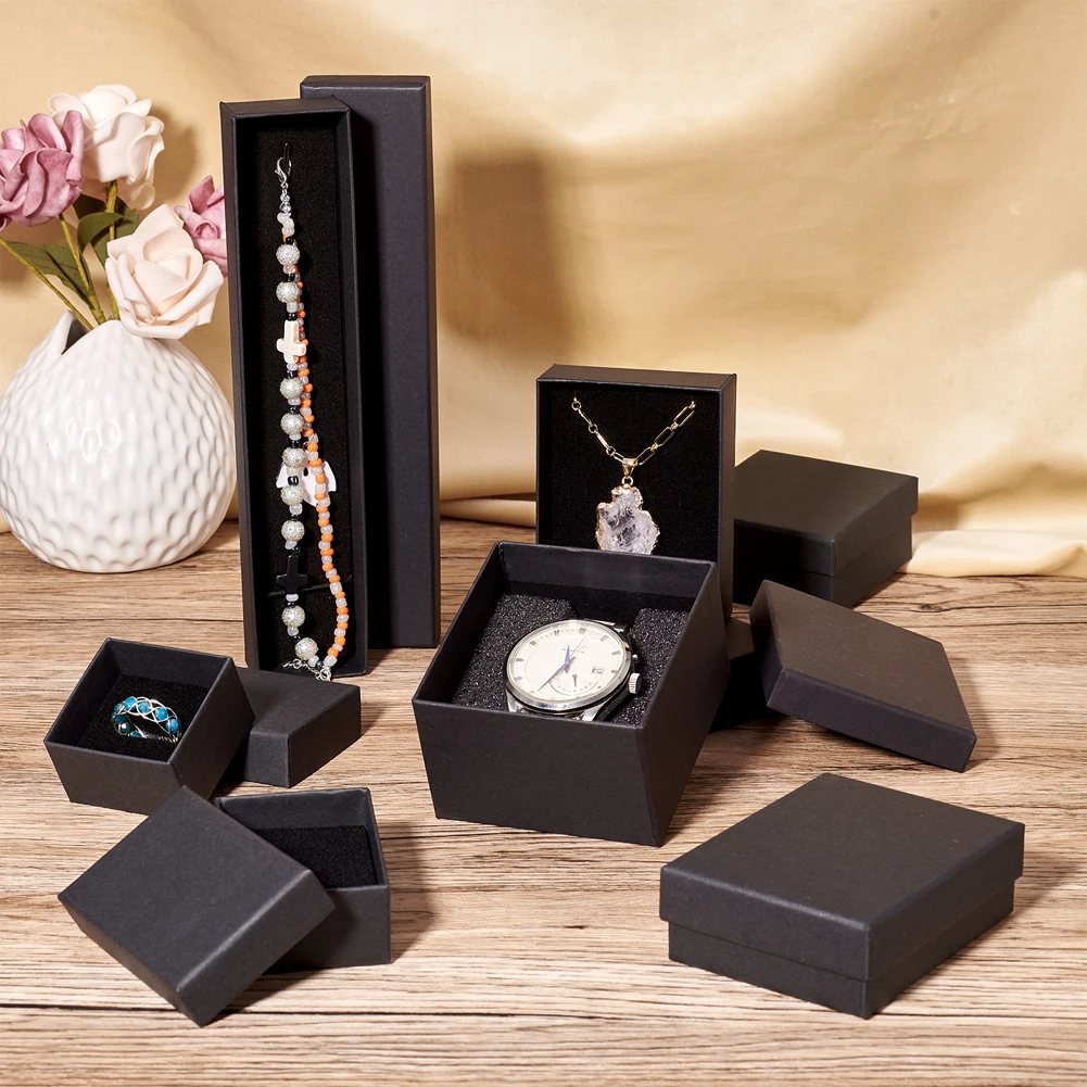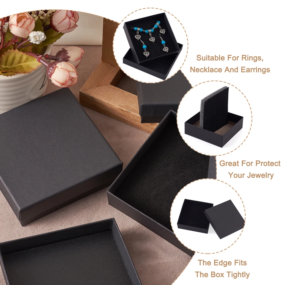 Pandahall Cardboard Jewelry Boxes Set Gifts Present Storage Display Boxes For Necklaces Bracelets Earrings Rings Square Black