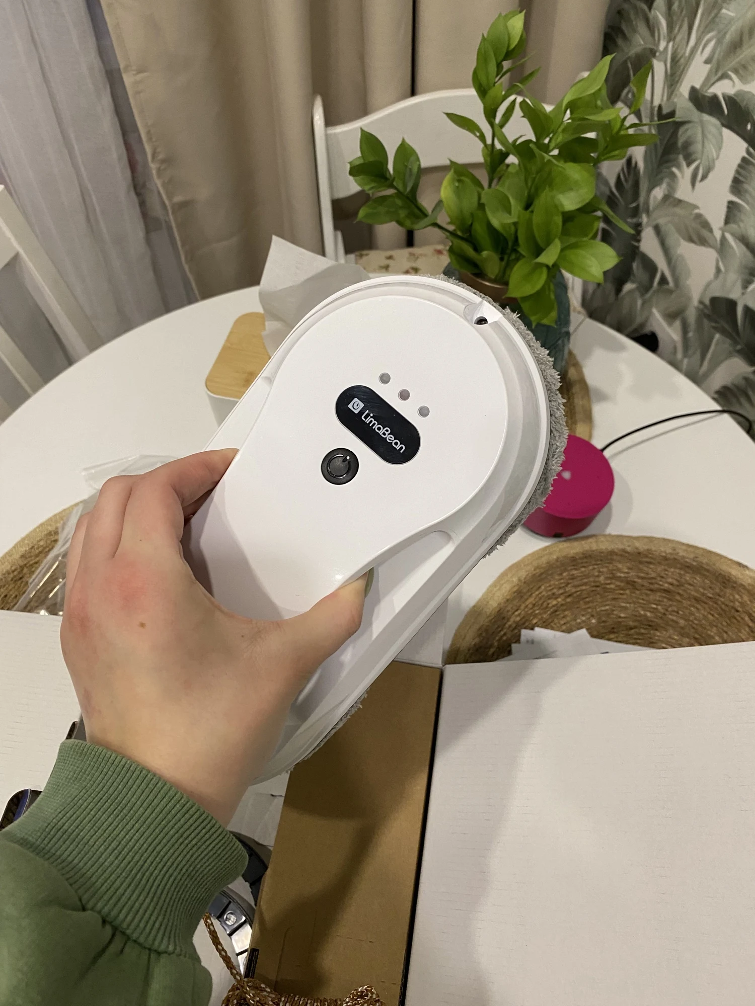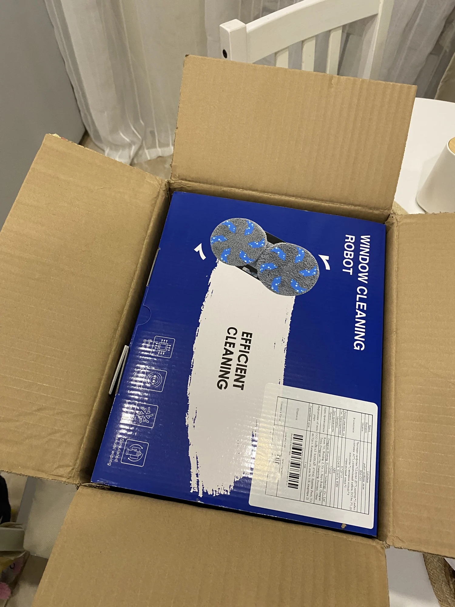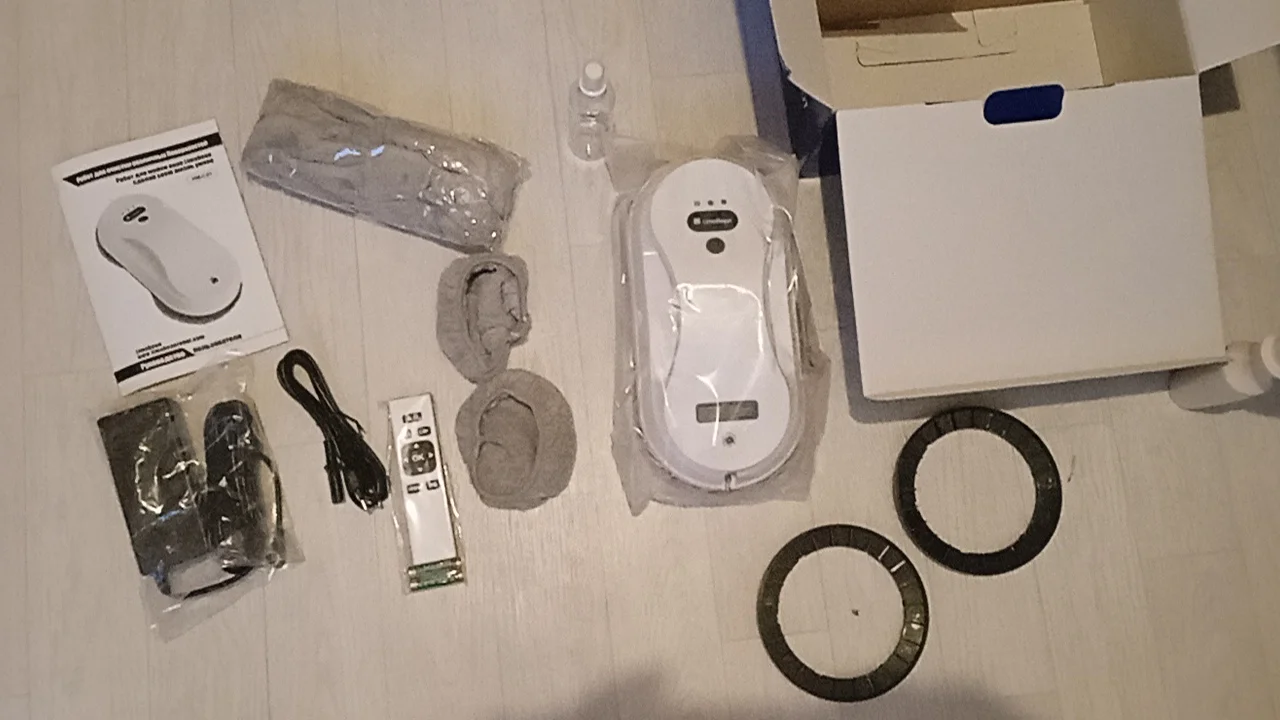Ну что тут сказать, приехала посылка быстро, на кассу пятёрочки. В комплекте робот, тряпки, запасные кольца. Что меня сразу подкупило это инструкция на русском языке, корявенькая но понятная. Хочу посоветовать покупателям, очень часто менять тряпки при использовании, я меняла чистую пару на одну створку окна с одной стороны, и все равно стекло исцарапалось. Не знаю в чем конкретно дело, робот мощный, стёкла супер грязные? Думаю качество самих стёкол не очень.однако факт, если вы живете на съемной квартире, хозяевам может такое не понравится. Или же сначала моем ручками, потом роботом. Хотя тогда в чем смысл покупки. Царапины на стёклах с обеих сторон, и со стороны квартиры тоже, так что списывать на загрязнение смысла нет.