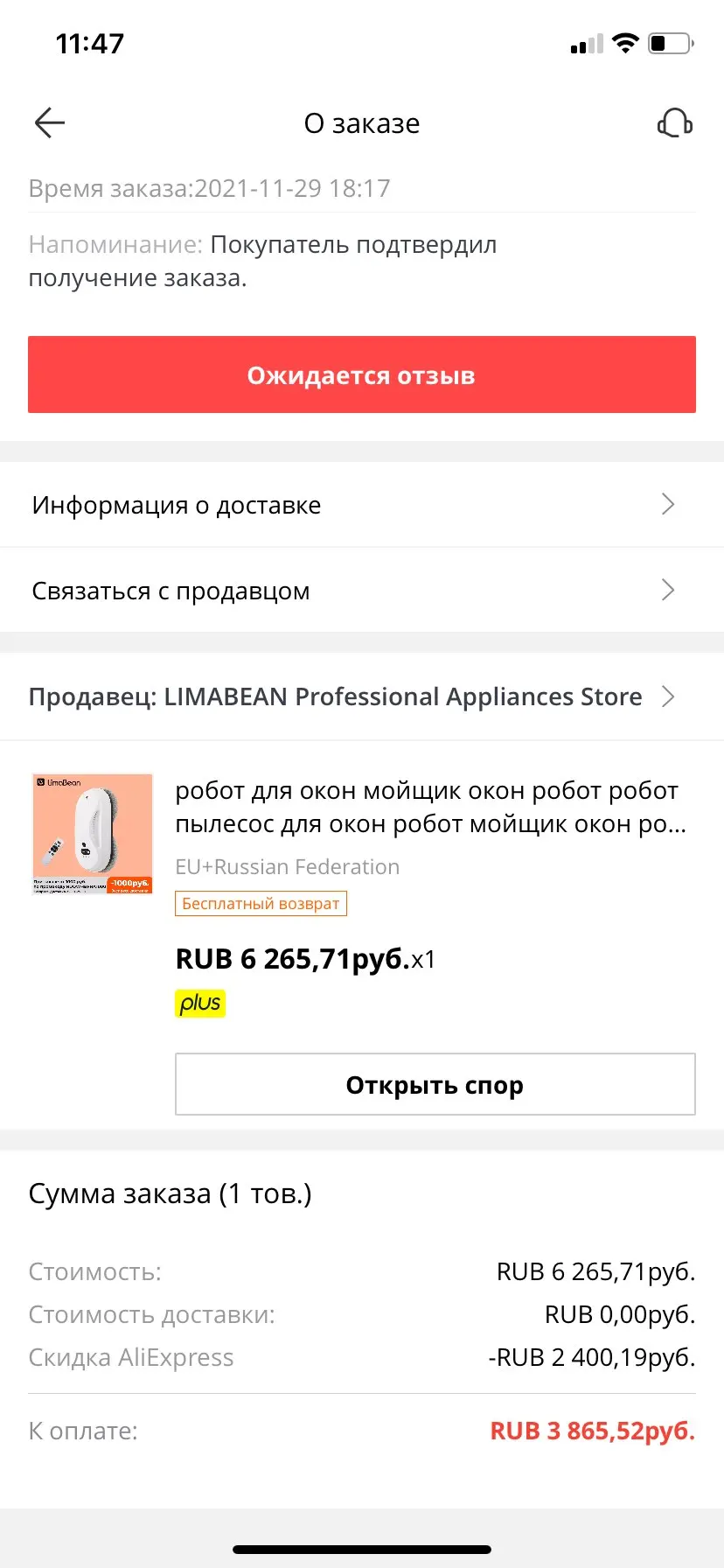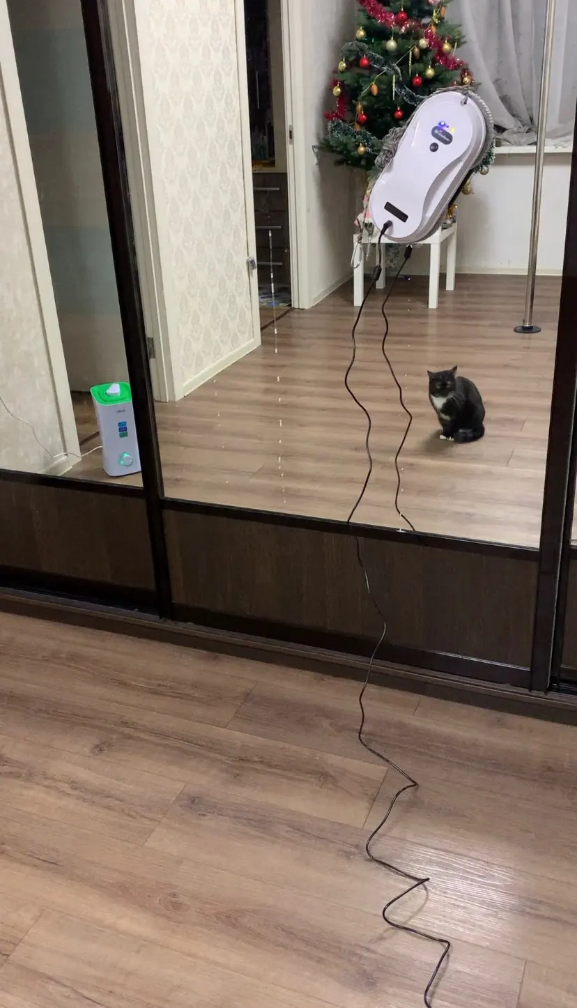 Робот дошёл очень быстро до моего города, гораздо быстрее других посылок. В общем-то игрушка интересная, присасывается хорошо к гладкой поверхности, но! Моет с разводами. Чтобы не было разводов надо запускать хотя бы 2 раза. Схема мойки: сверху слева постепенно спускается вниз. Края не промывает. Сейчас зима, поэтому проверила только на зеркалах. Стёкла мыть страшно, они в пыли за зиму будут, это по любому сначала буду мыть тряпкой и только потом запущу пылесос. Покупала не дорого, только поэтому 5 звёзд. За эту цену не жалко. Шумит адски, гораздо шумнее чем робот-пылесос. Кошка в шоке.8144 u. 26 декабря 2021
