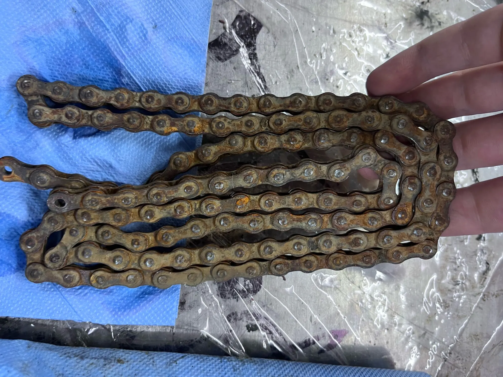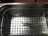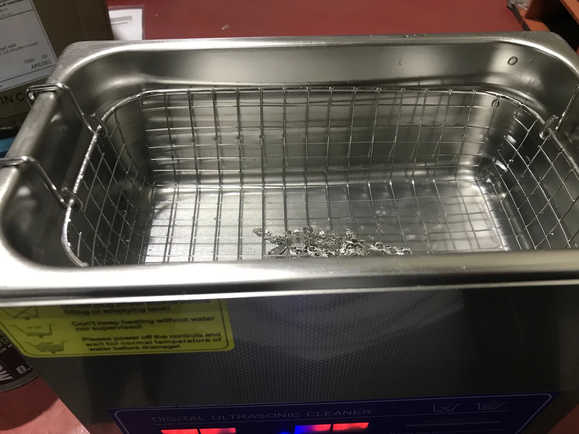 Начнём с времени доставки. Должна была прийти 12 декабря, пришла 21. Ну да ладно. Все в целости и сохранности,кроме провода питания. Вилка была кем-то засунута не в то отверстие. По работе. По моему долго греет воду, но в целом работает хороши и отмывает всё на глазах. Единственное из неудобного- чтобы слить грязную воду, надо отключать аппарат от питания и нести его к раковине, потому что как я понял, рабочая ёмкость не вытаскивается. Цепь закидывал на 5 минут при 50 градусах. Вода+раствор(50/50) на глаз.