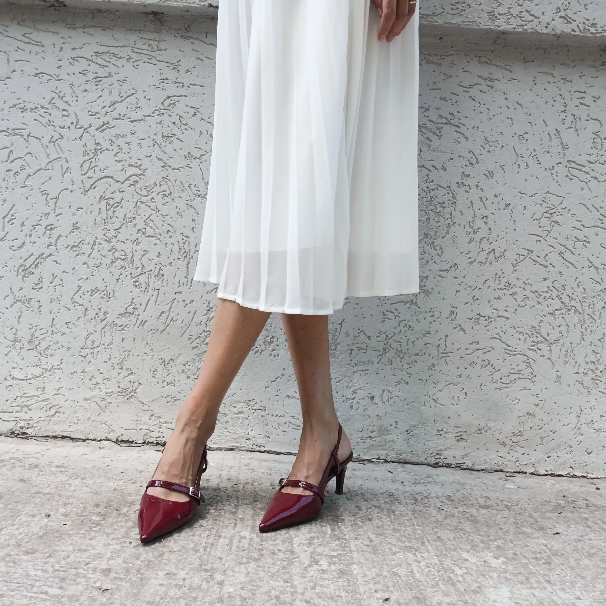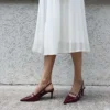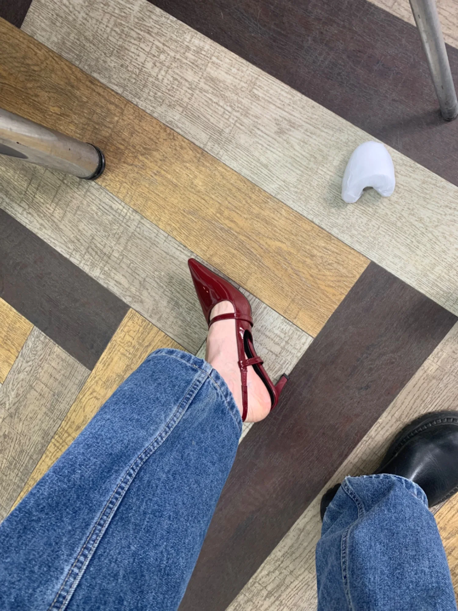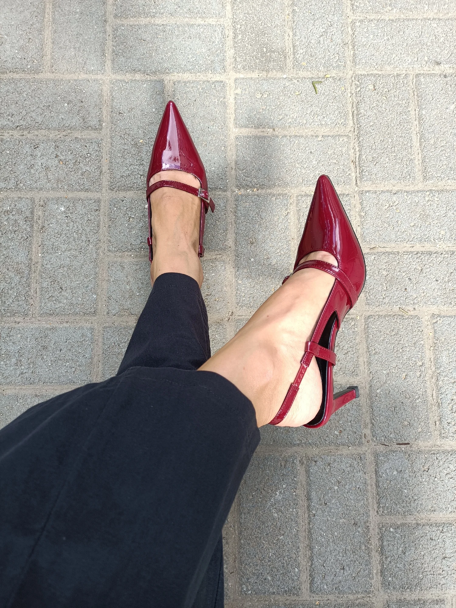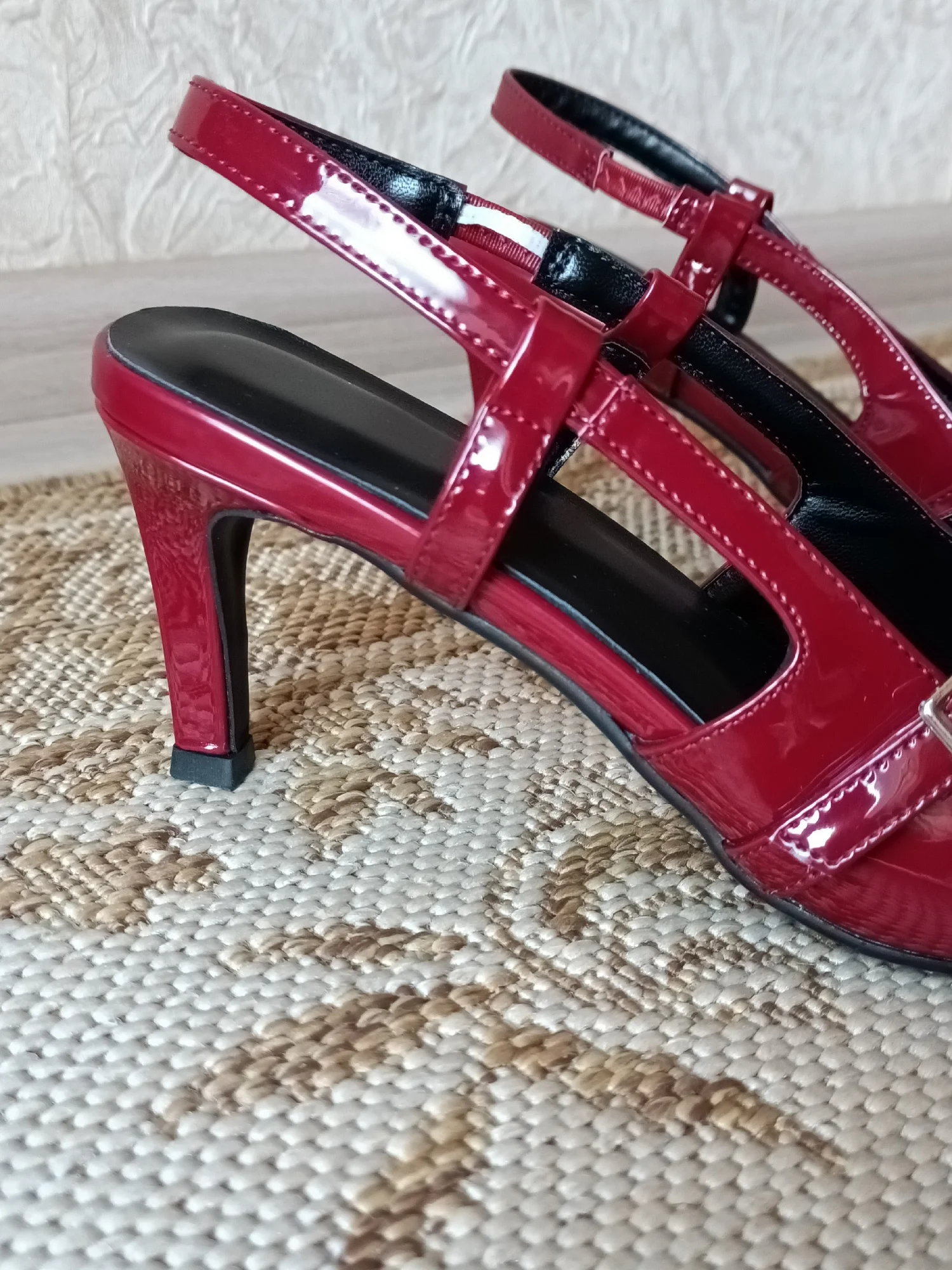Красивые винные туфли Очень понравились)) мягкие и удобные, каблук 7 см. На узкую стопу. Взяла 7 размер на длину стопы 23,5 см - подошёл идеально.
