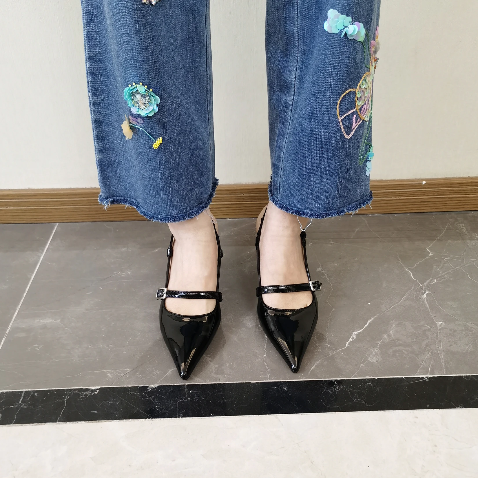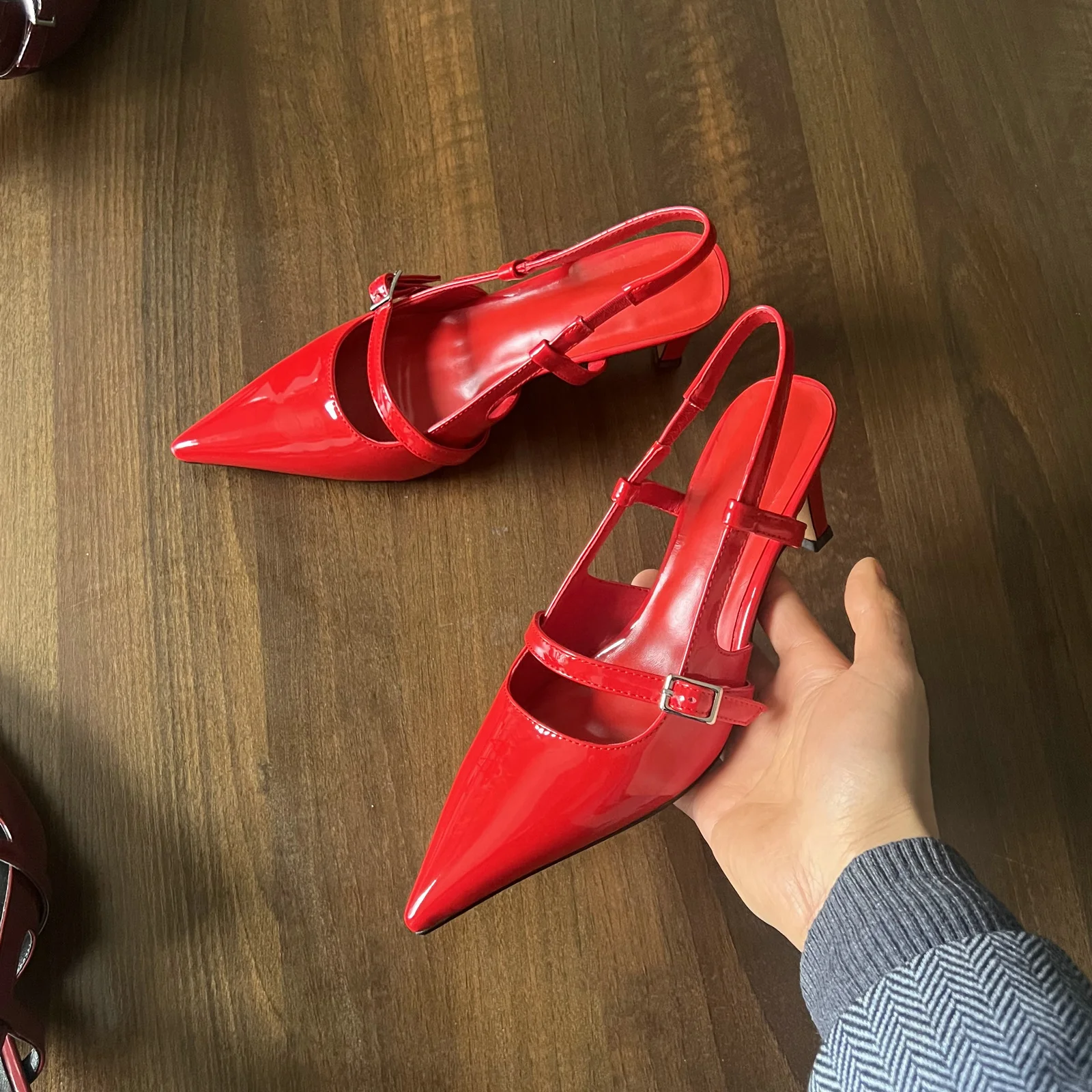 QUTAA 2024 Microfiber Sandals Sexy Pointed Toe Ankle Strap Party Shoes Thin...