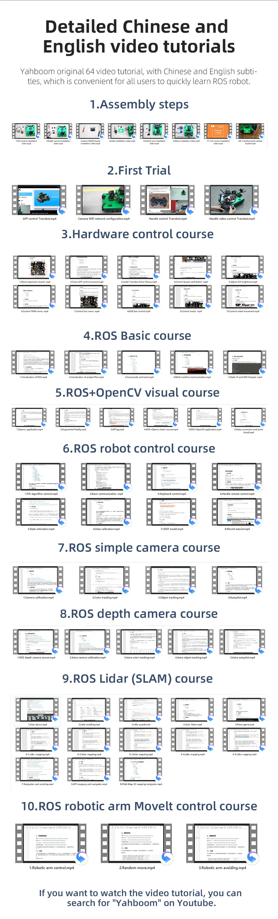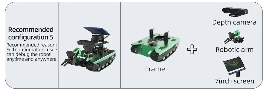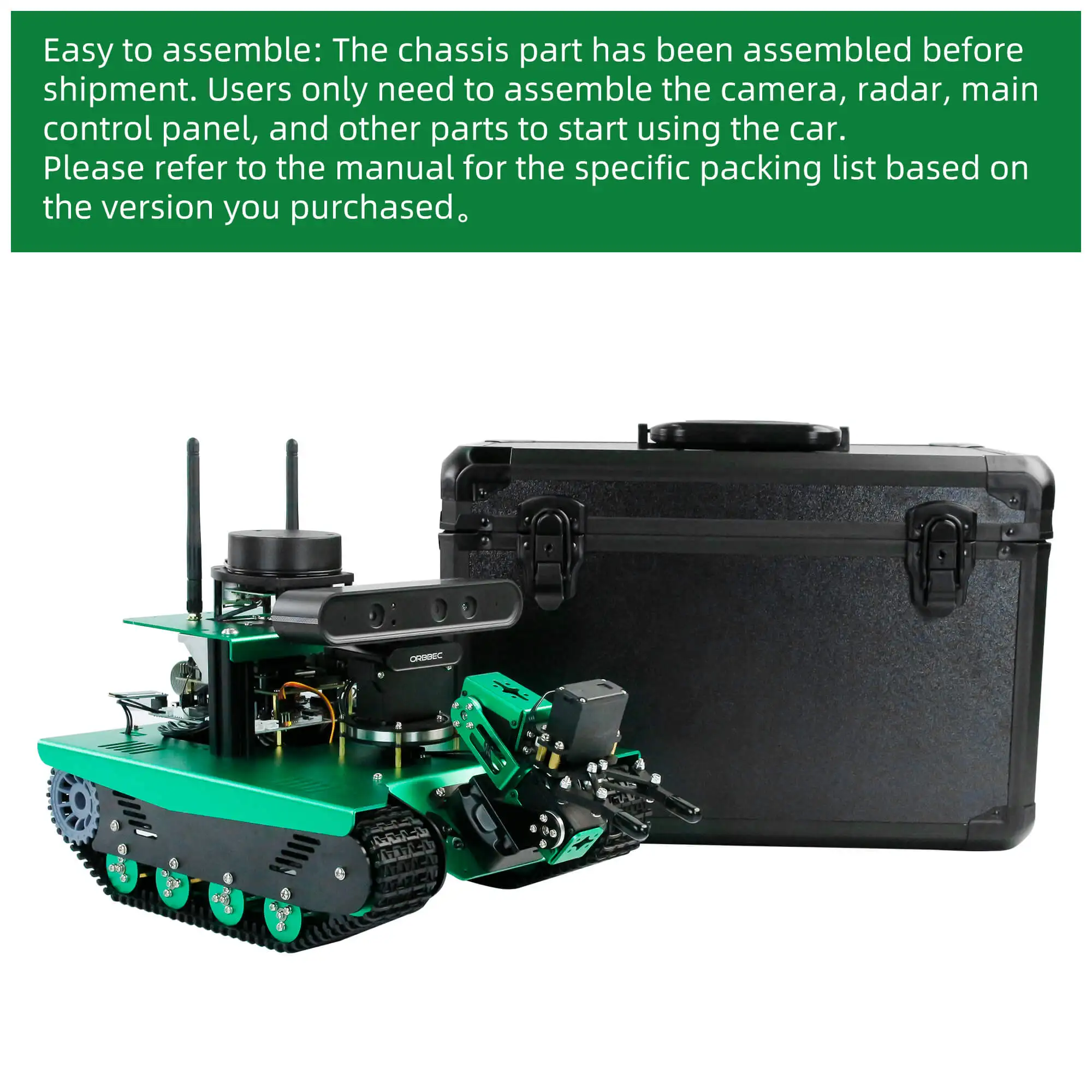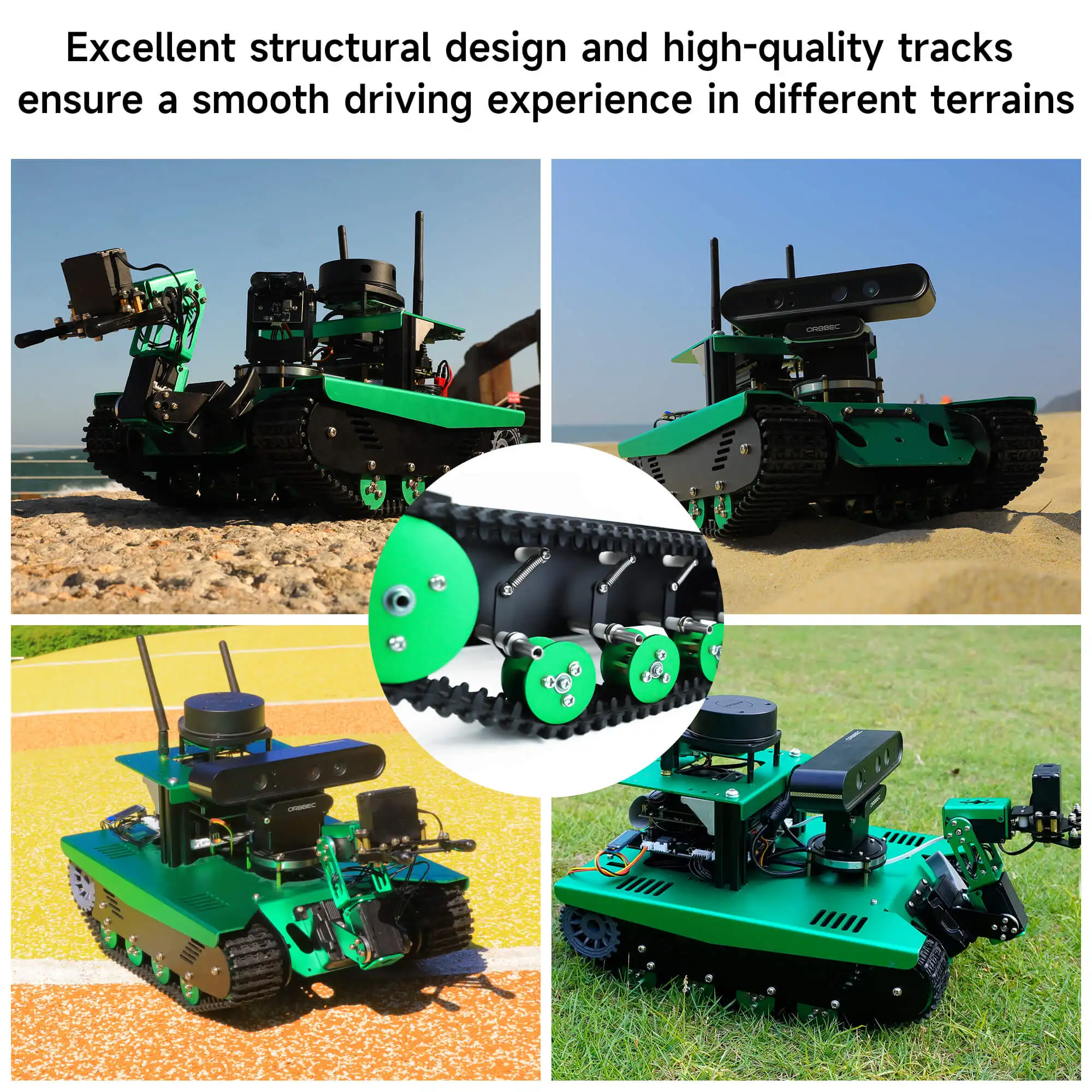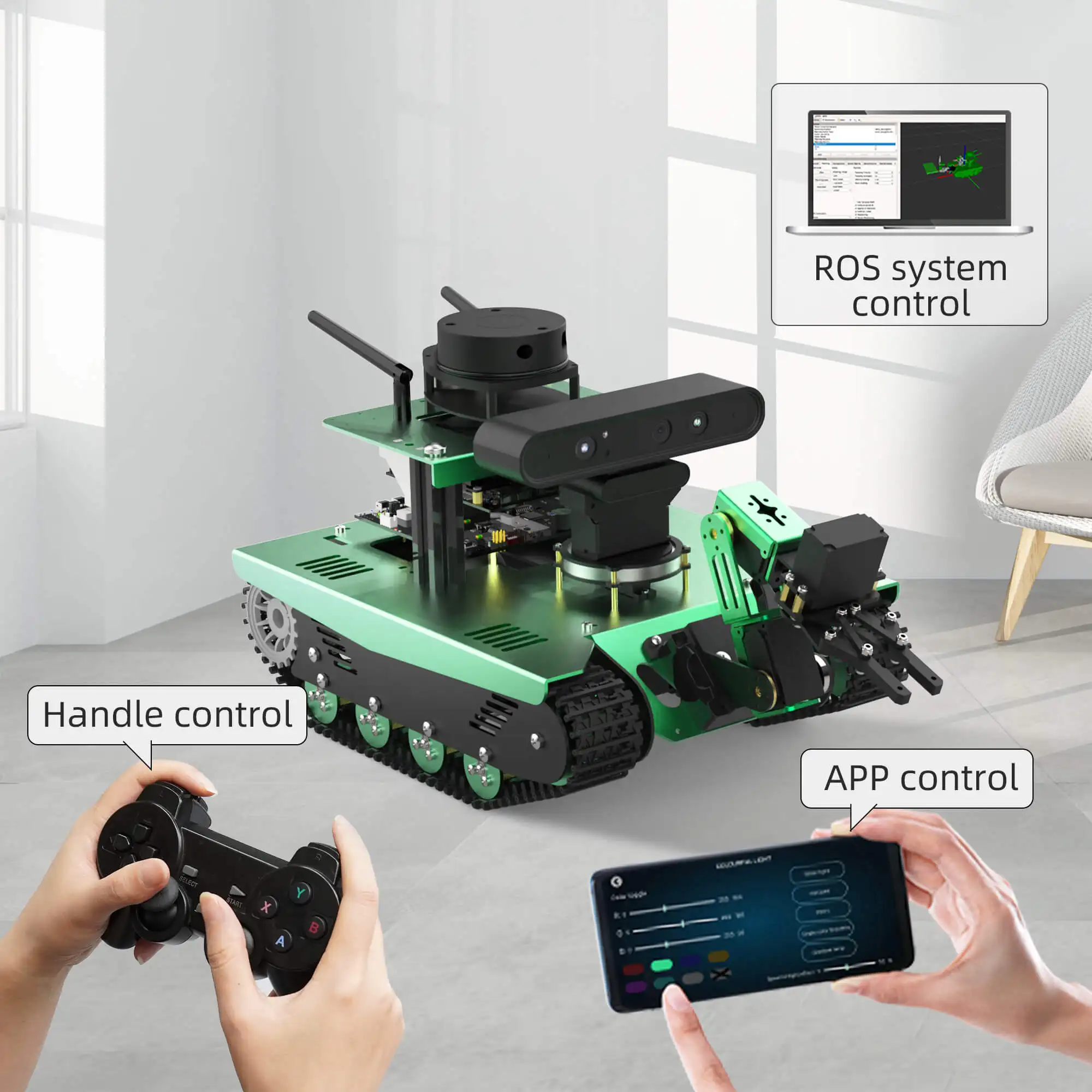 Transbot is a crawler off-road robot based on ROS(robot operating system), which is designed for ROS enthusiasts and robot players. It is equipped with high-performance hardware configurations such as Jetson NANO 4GB, Lidar, HD camera/depth camera, etc., which can realize applications such as robot motion control, remote communication, mapping navigation, following-avoiding, autopilot and robotic arm MoveIt simulation. A lot of teaching course documents and videos to help you get started with ROS easily.