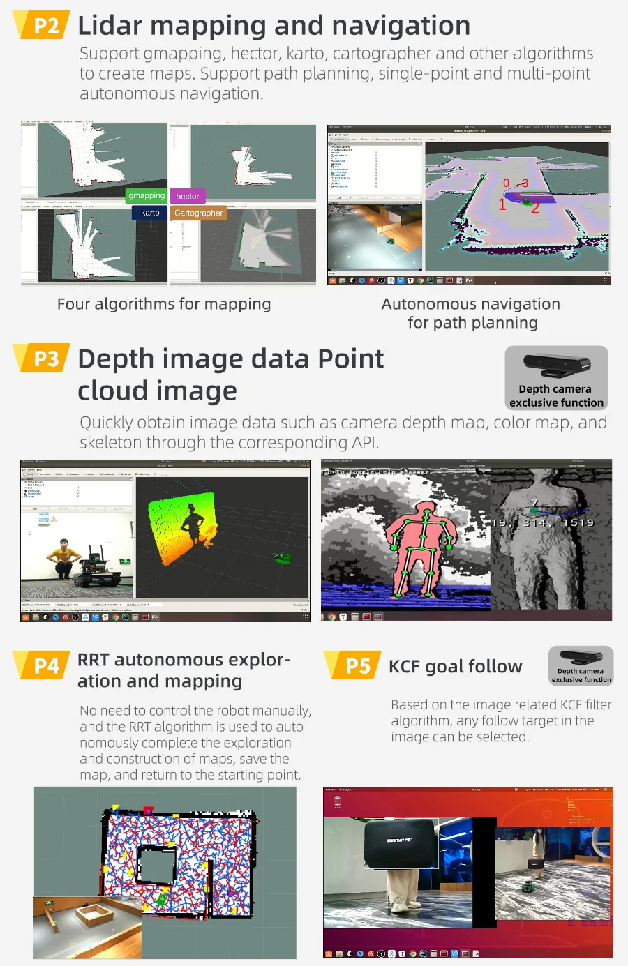 - Function:Lidar avoiding/3D mapping navigation/bone detection