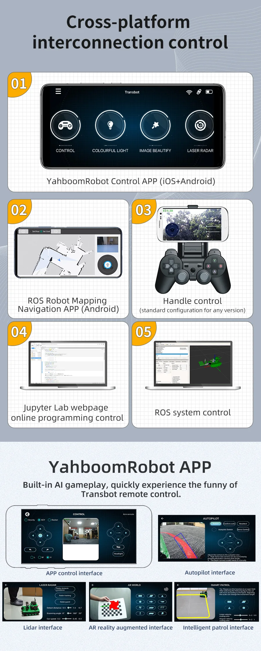 Yahboom Transbot ROS Educational Robot Kit Python Programming Lidar Depth Camera MoveIt 3D Mapping Navigation Jetson NANO 4GB