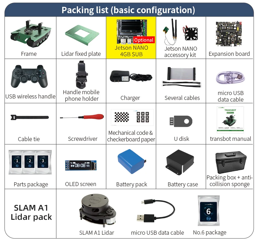 Note: This robot car will not work without a main control board, if you do not have a Jetson NANO board, please choose the version with Jetson NANO board.