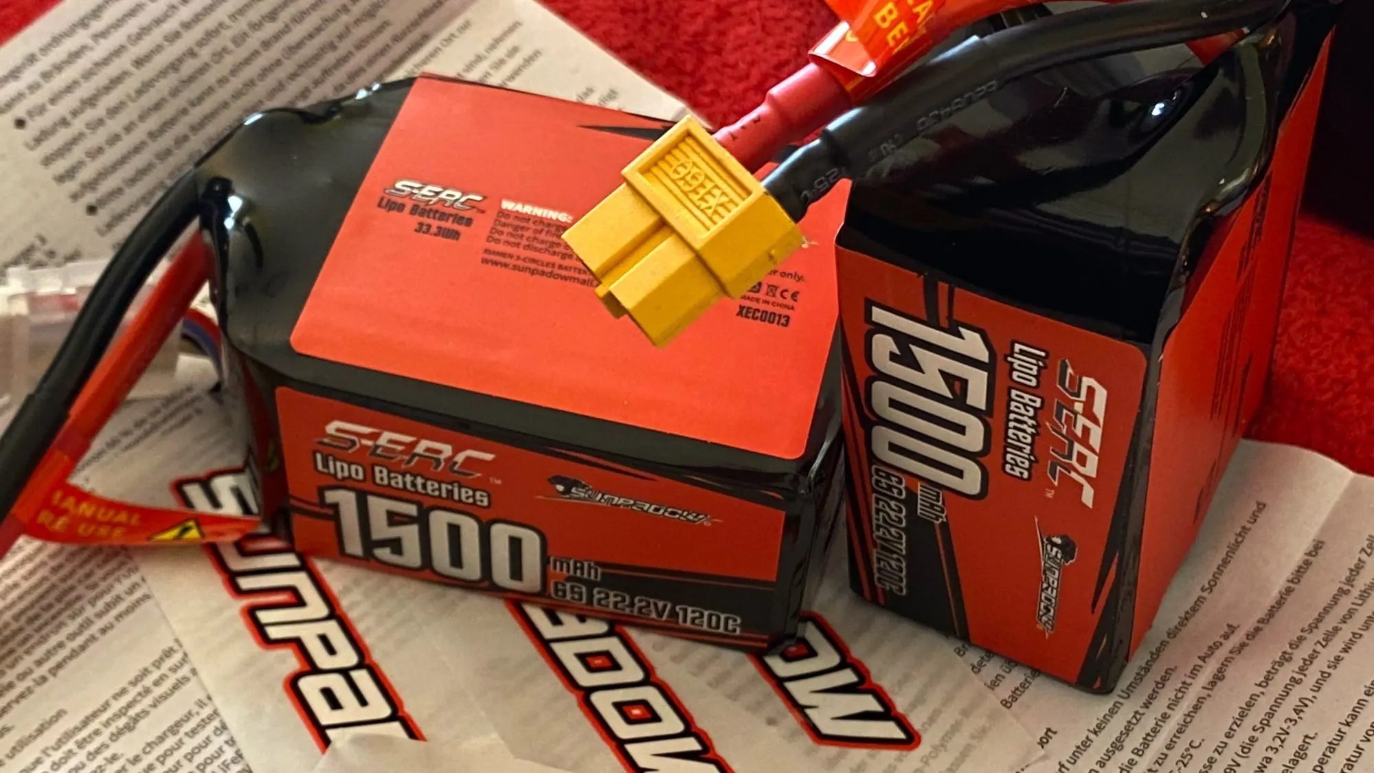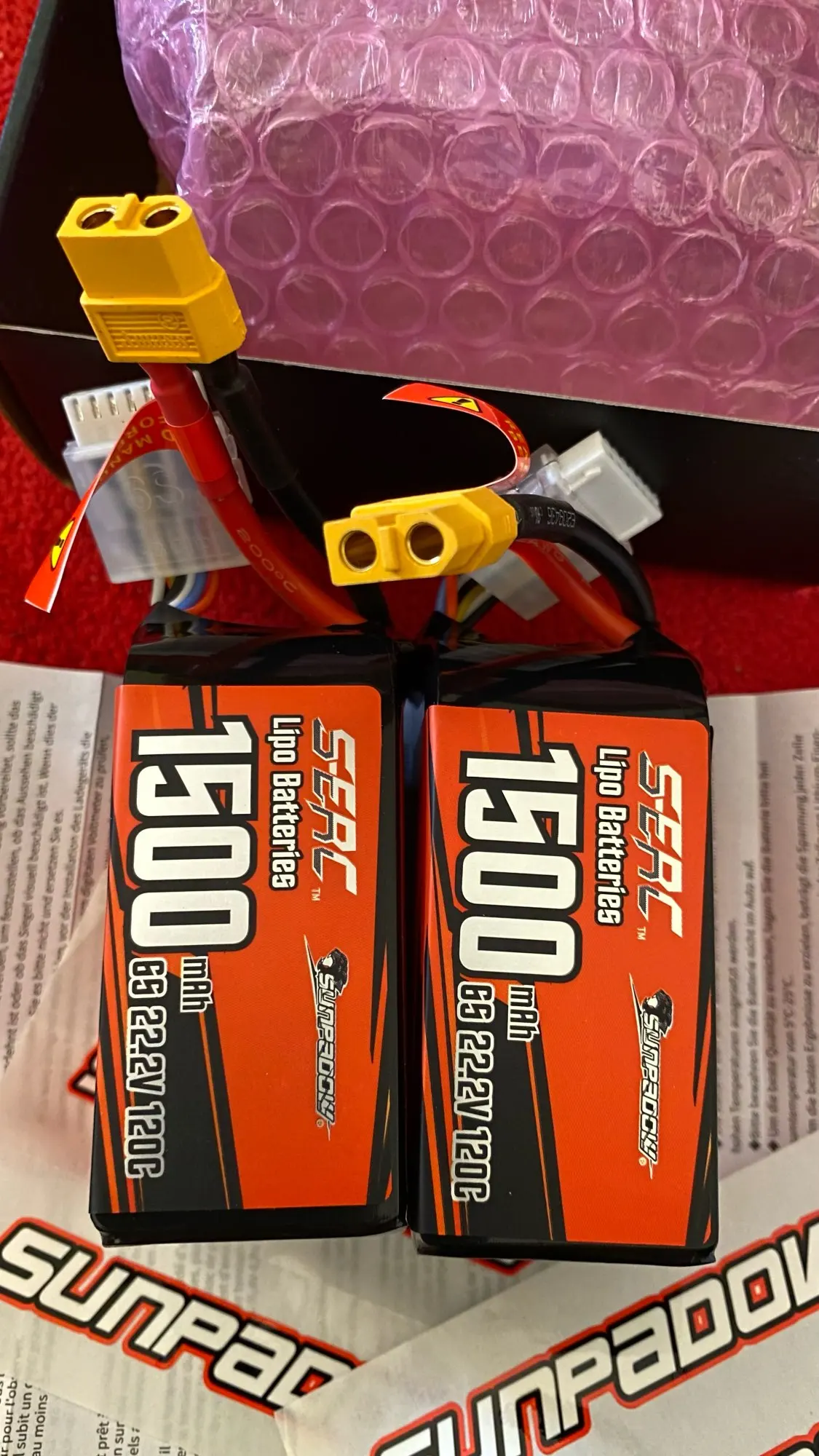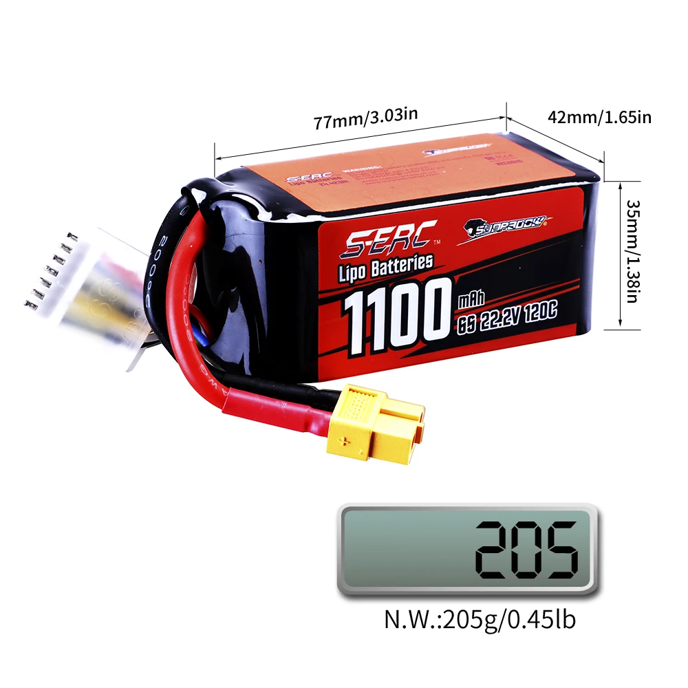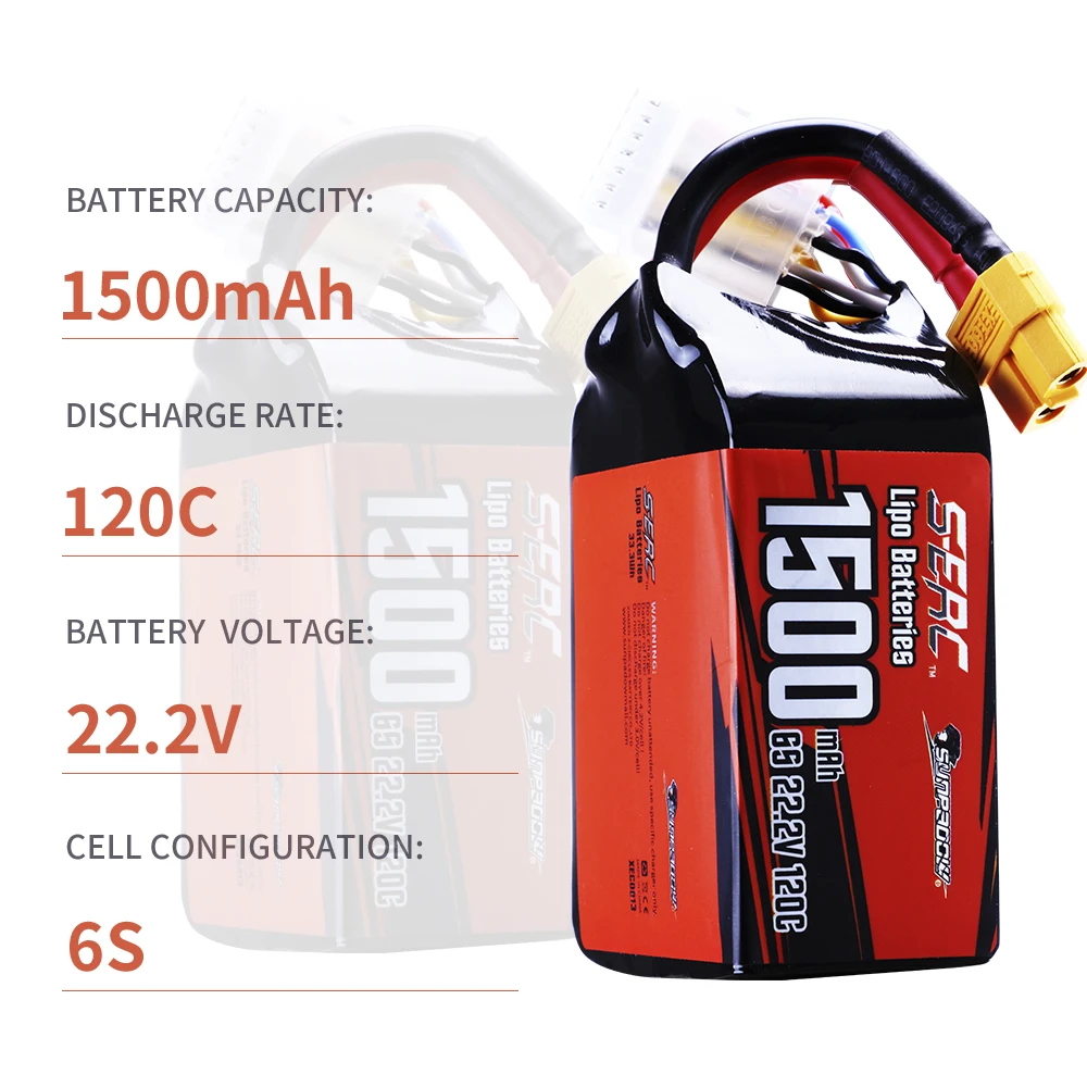 2 упаковки Sunpadow 22,2 V 6S Lipo Battery1100mAh 1200mAh 1300mAh 1500mAh 120C Мягкая упаковка с разъемом XT60 для RC FPV Drone Racing Hobby