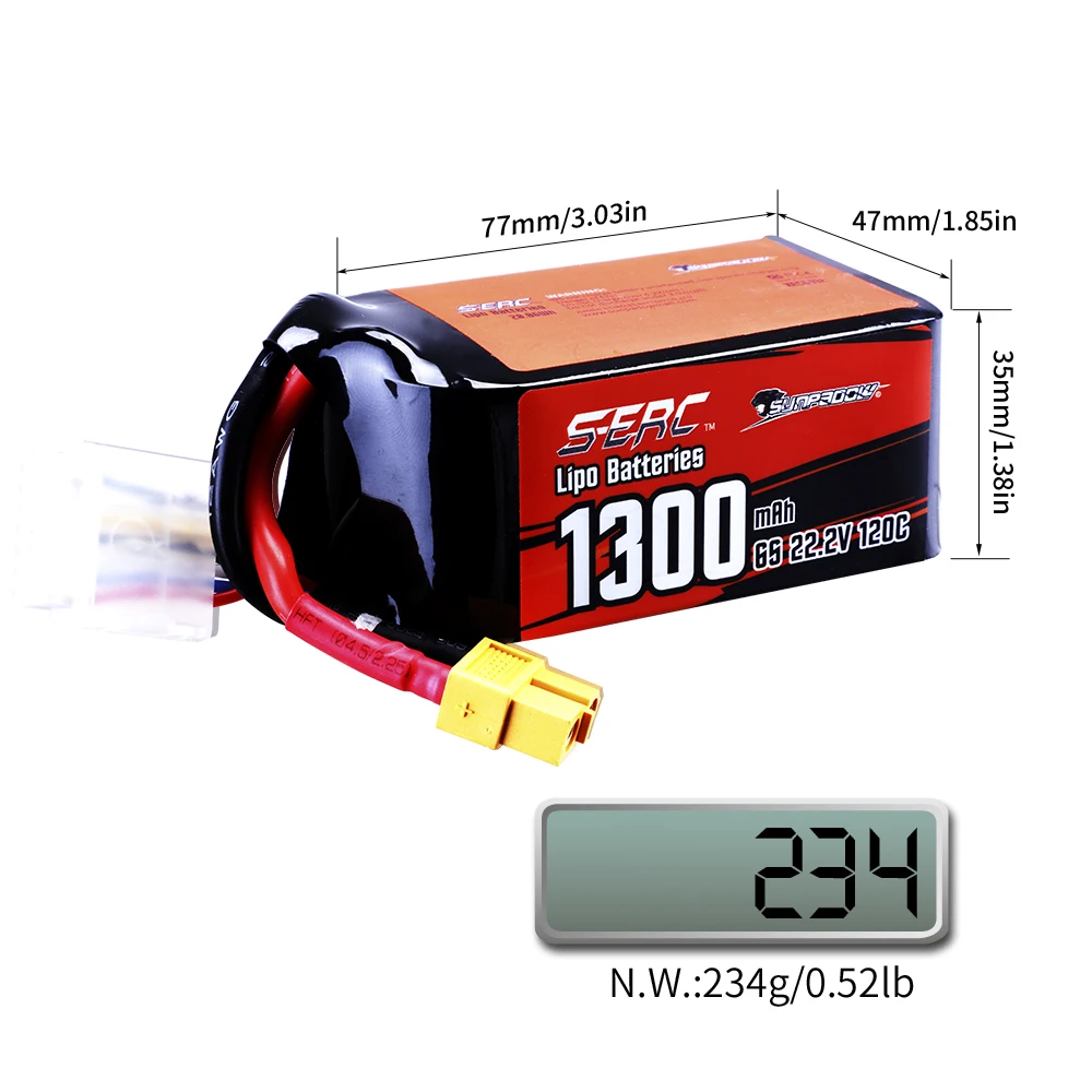 Литий-полимерный аккумулятор SUNPADOW 22,2 в 6S 1200 мАч 1300 мАч 1500 мАч 120C...