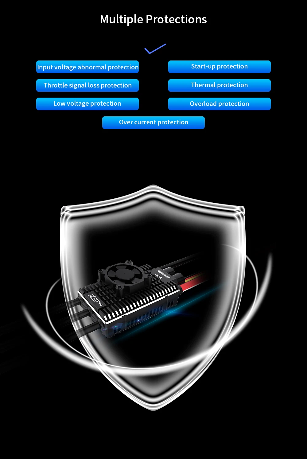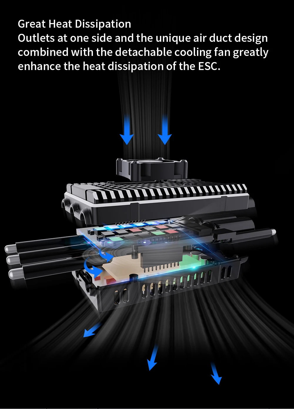 4. Специальный дизайн ESC чехол и уникальная конструкция защиты вентилятора значительно повышают характеристики рассеивания тепла ESC.
