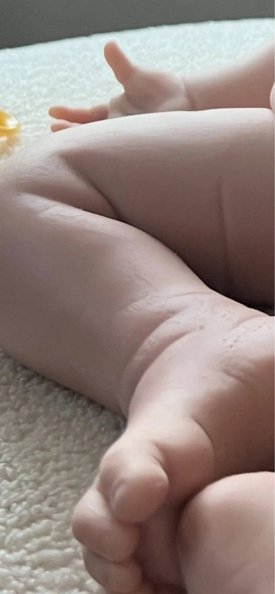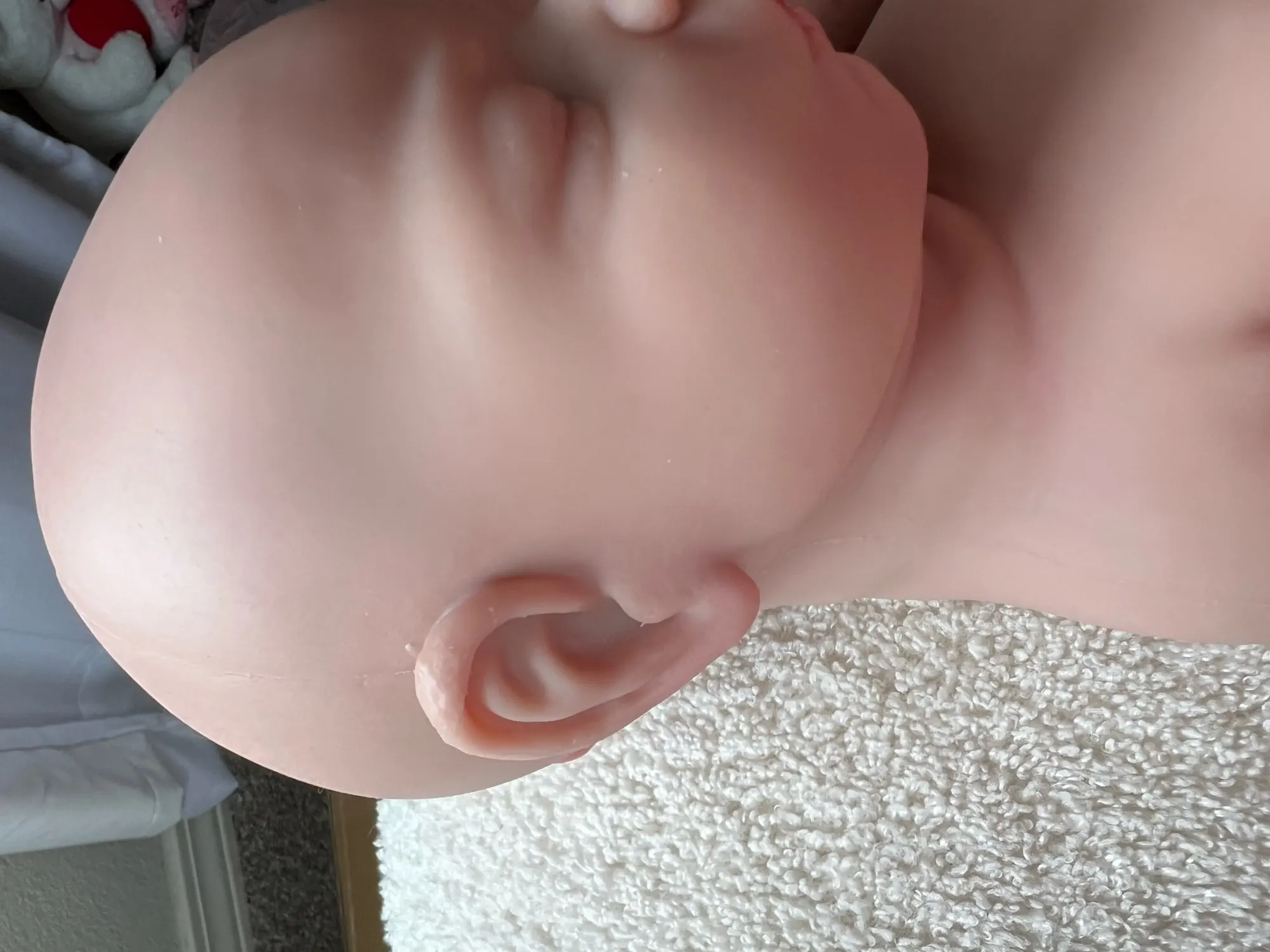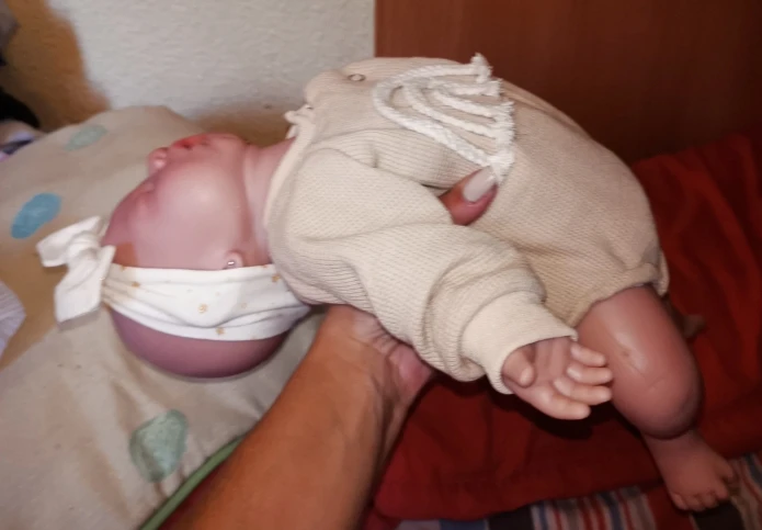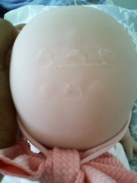 При изготовлении пупса осталось заметным отверстие для заполнения куклы силиконом на голове, также заметны линии на теле куклы. Это не является дефектом качества.