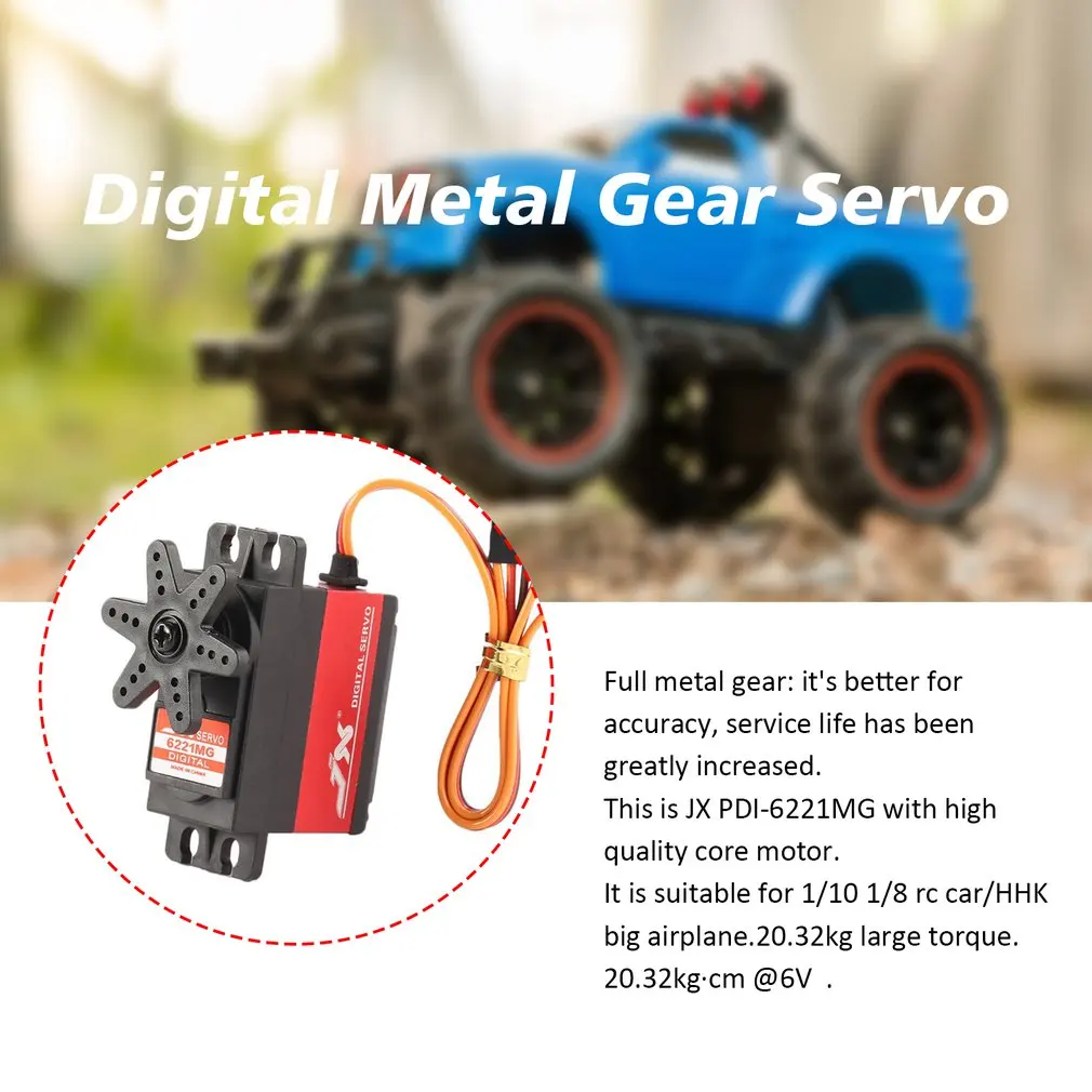 JX PDI-6221MG 20 кг 180 ° 360 ° непрерывное вращение Высокая точность металла шестерни цифровой стандартный сервопривод для 1/8 1/10 RC автомобиля робота