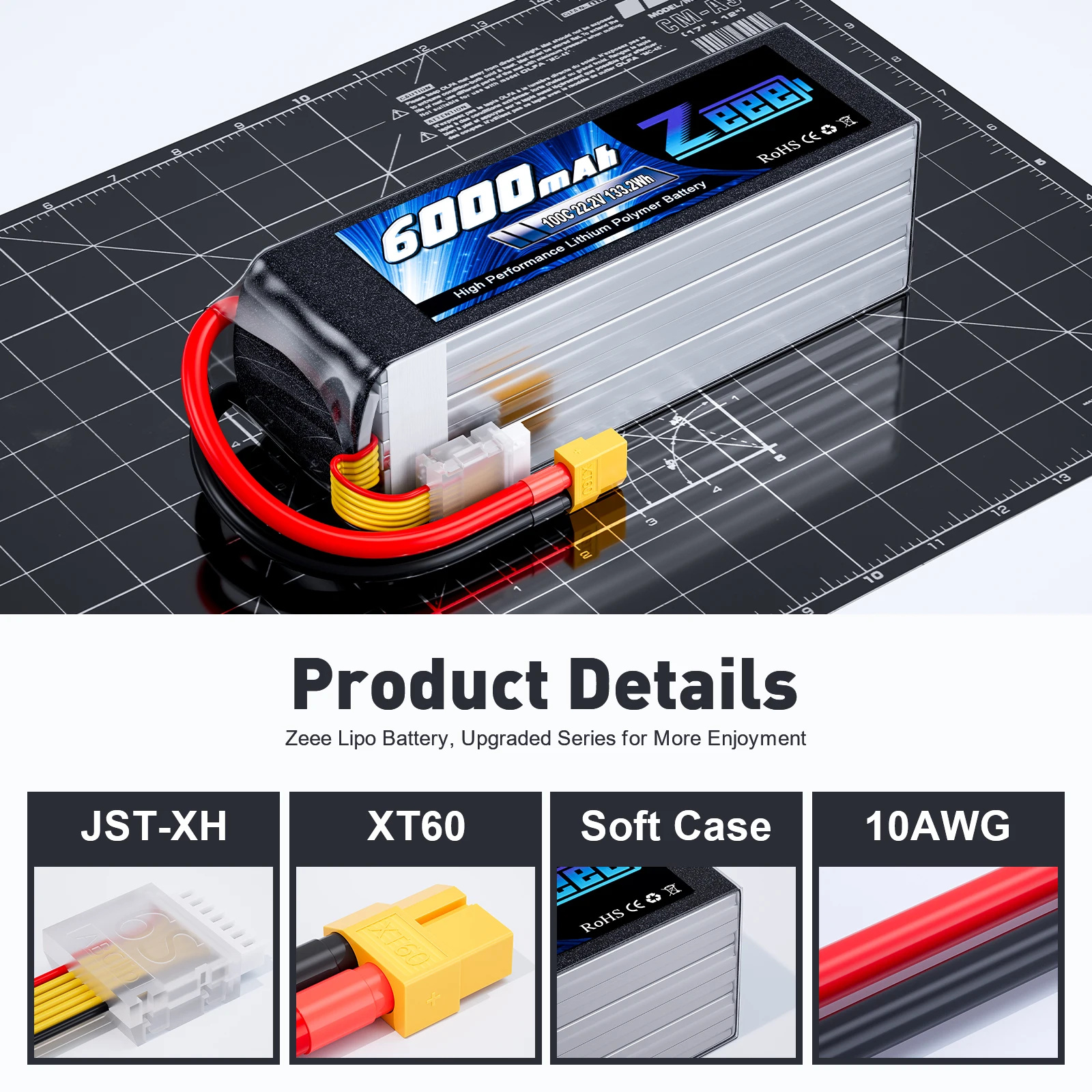 Zeee 6S Lipo Battery 22.2V 50C 100C 6000mAh FPV Drone Battery with XT60...