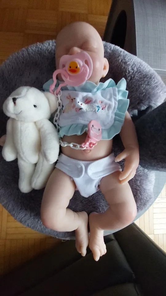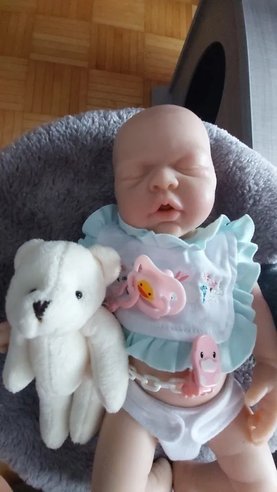 Этот малыш очень милый силикон мягкий, хотя у него есть некоторые недостатки на руке, я понимаю, что это типично для работы с этими силиконами, но имейте в виду, я думаю, что это не важно, У него много деталей, я купил его для своих внучек по одной на каждую, счастлив