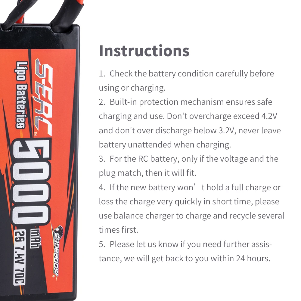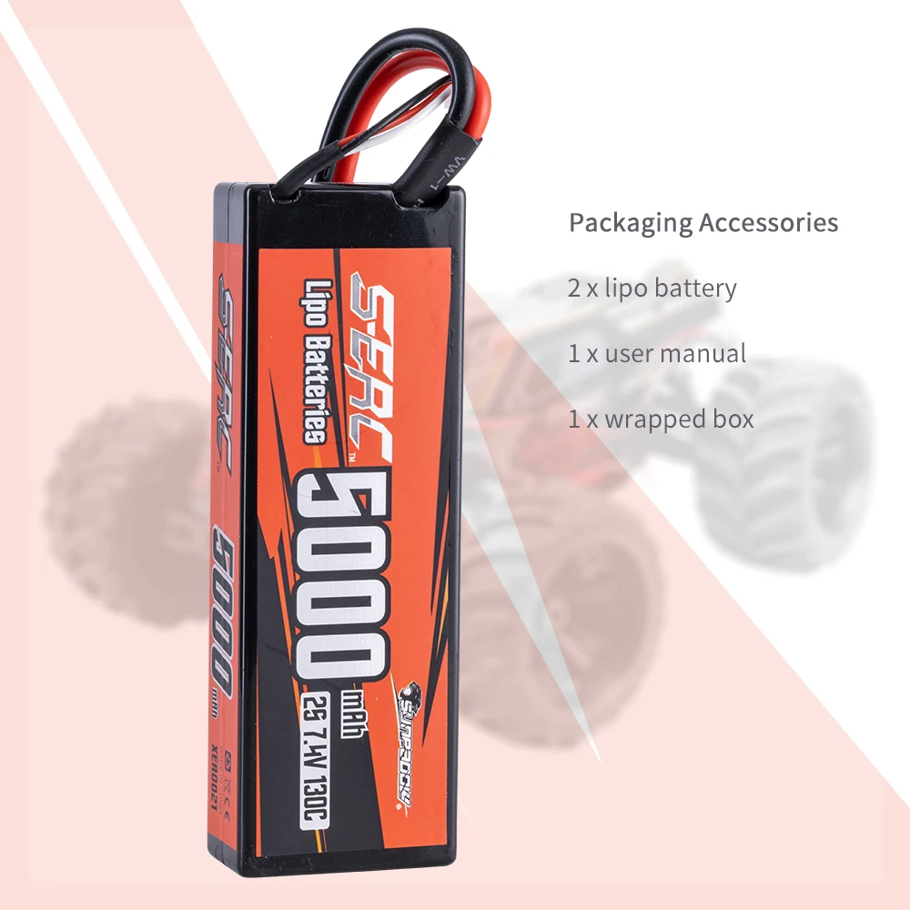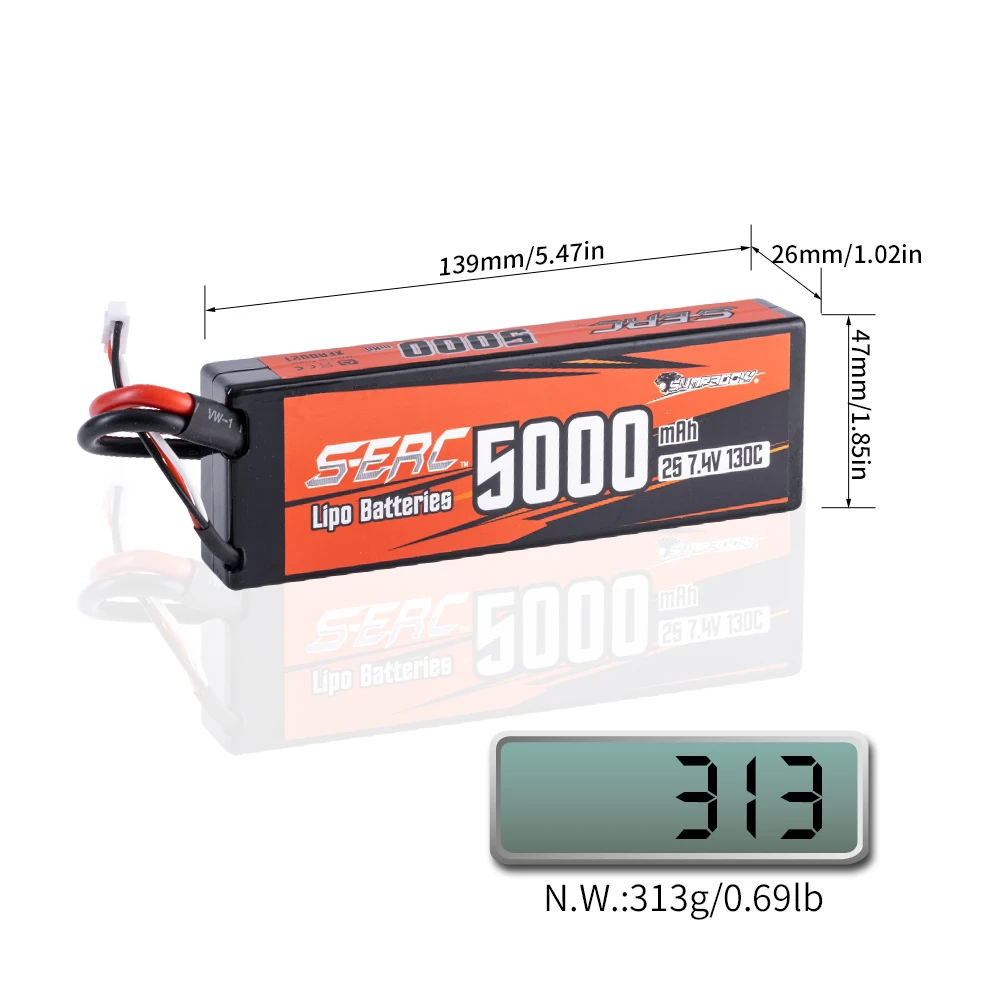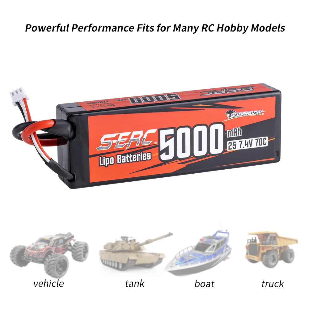 Sunpadow 2S Lipo Battery for 5000mAh 7.4V 70C 130C Hard Case with Deans T Plug...
