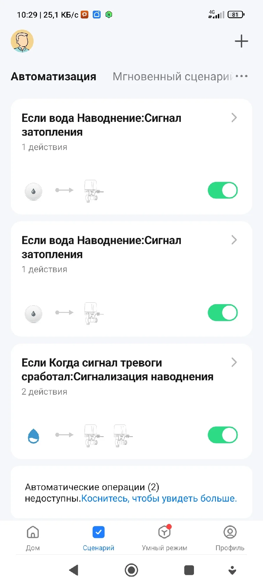 Товар СУПЕР приехал быстро все работает. Подключаем через смарт лайф и двигатель и датчик. В этом же приложении создаём сценарий. Выбираем датчик протечки и в Нем пишим сценарий на закрытие или открытие крана. Все ок. Датчик срабатывает в течении 5 секунд проверено. В приложении смарт лайф приходит сообщение и один раз даже в телефоне Сирена заорала как то). Если появилась вода датчик даёт сигнал на закрытие, как только вода пропала датчик даёт сигнал на открытие крана. Все работает В Алисе моторчик определяется , можно голосом закрыть открыть и состояние узнать. Датчик протечки Алиса не видит но это и не нужно. Если создать сценарий в котором Алиса в случае протечки должна голосом что нибудь сказать, не получится. Алиса моторчик определяет или как переключатель или свет. В сценарии как оборудование она его не видит. Открыть кран или закрыть то пожалуйста. А в сценарии его не получиться впихнуть. Итог товар РЕКОМЕНДУЮ. Буду ещё два таких моторчика заказывать на второй кран и на газовый. Спасибо)))