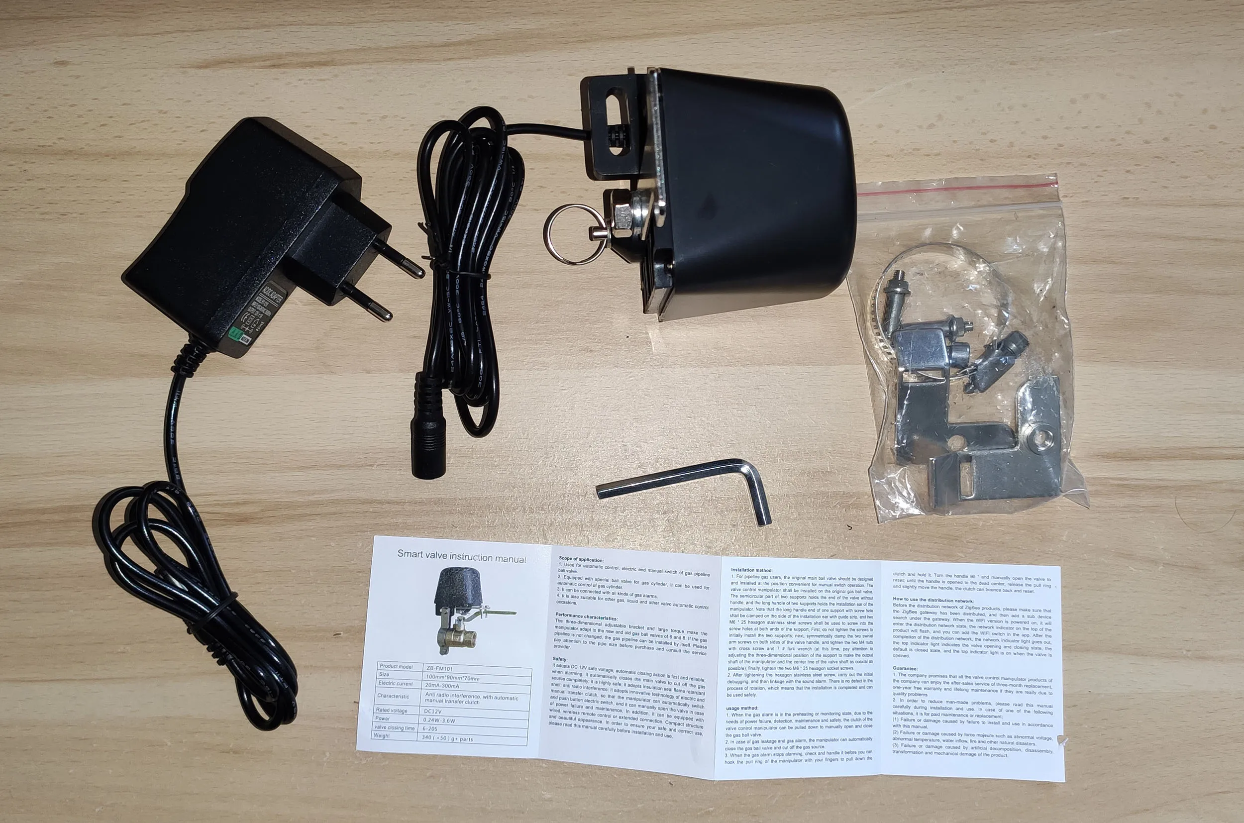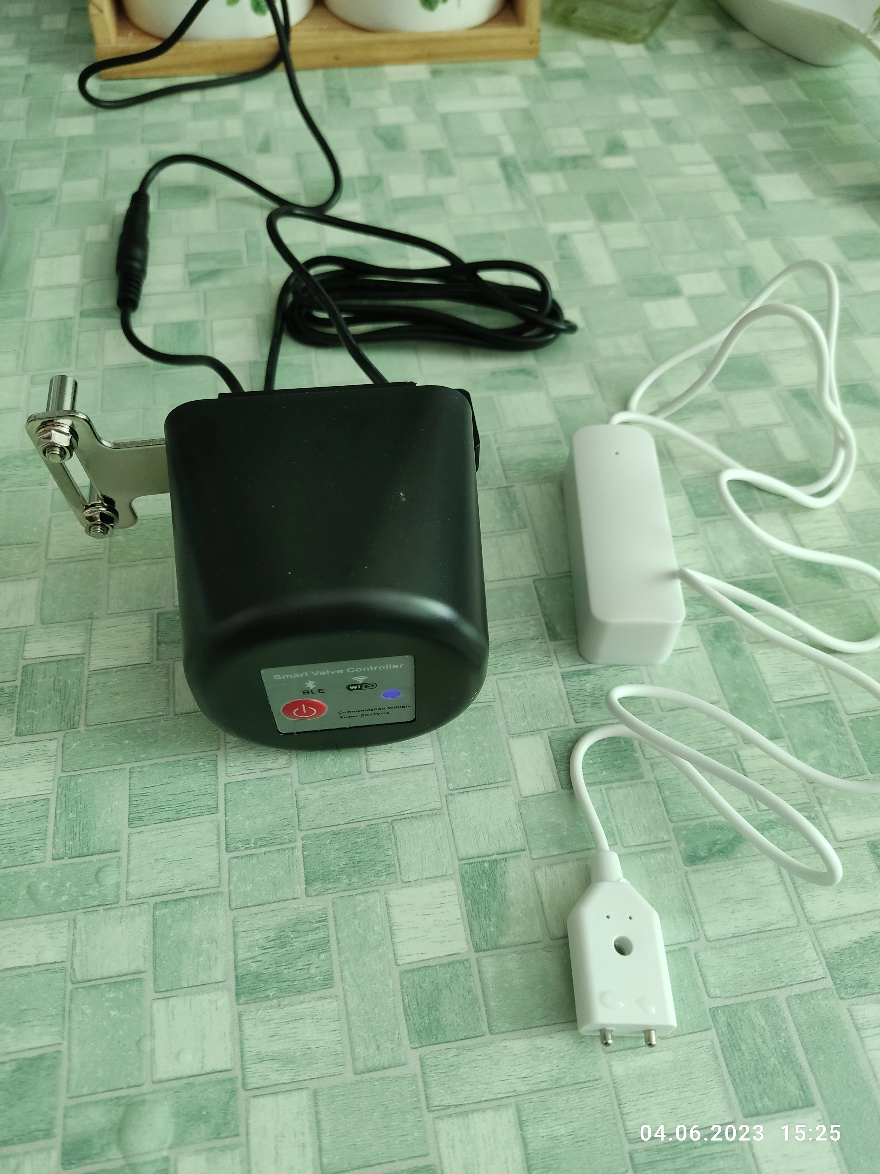 Подключение очень лёгкое. Работает отлично. с помощью штырей-держателей можно отрегулировать положение к рычагу вентиля, чтобы срабатывали концевики. В комплекте с блоком питания на 12V 1А. Разъём питания стандартный для систем видеонаблюдения, поэтому легко подключил к резервному ИБП. Брал сразу 2, оба работают отлично. Доставка супер быстрая, пришло раньше указанного срока на неделю.