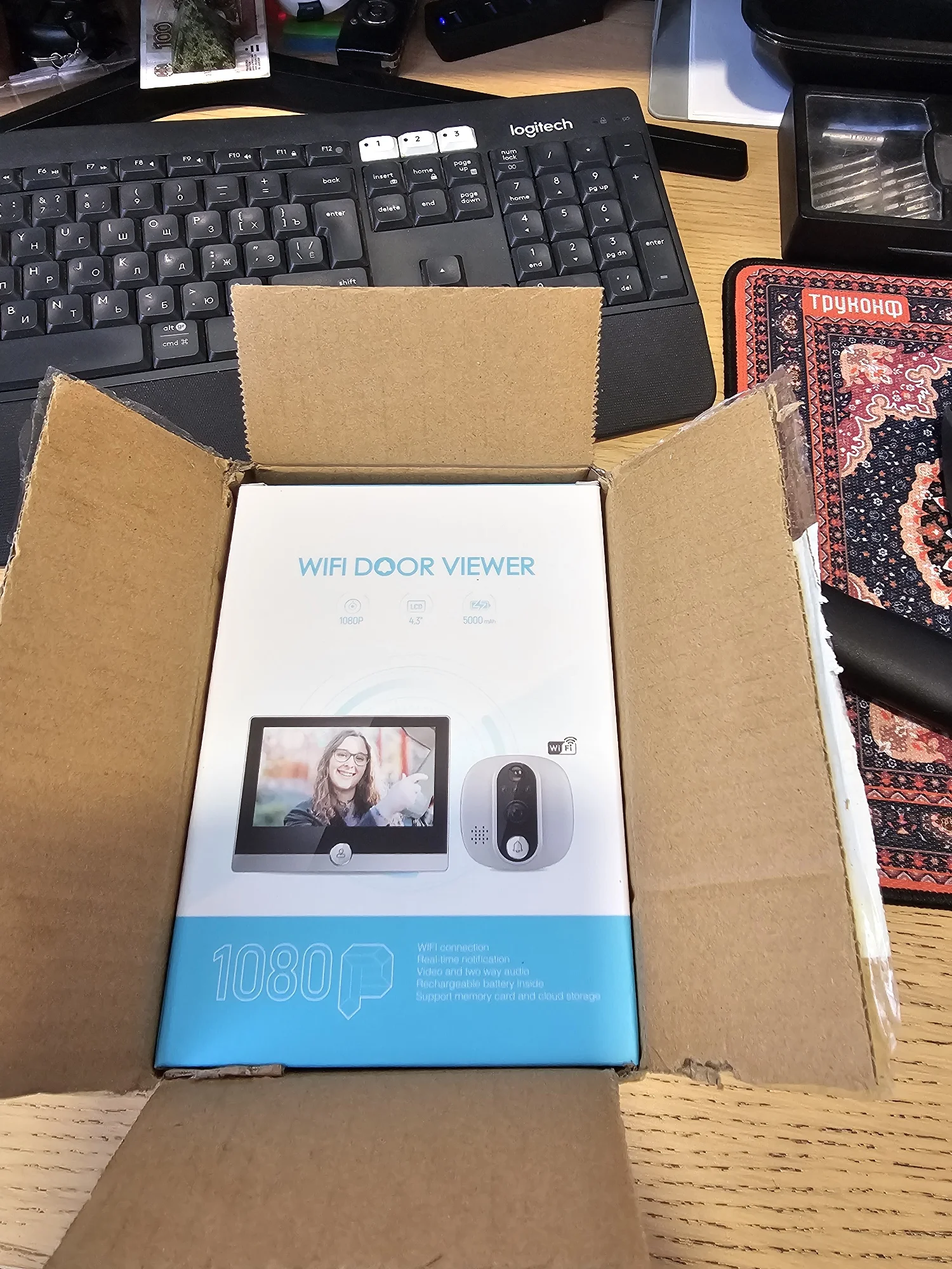 сам глазок приехал с царапинами, зато хоть рабочий! камера не плохая 1080р типо есть но это знаете как 8 мегапикселей на телефоне за полторы тысячи) связь работает хорошо динамик громкий, задержки маленькие!