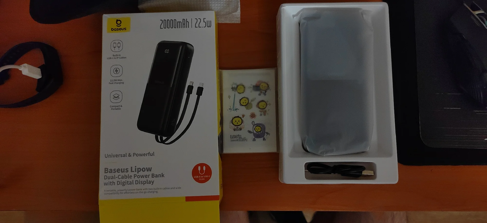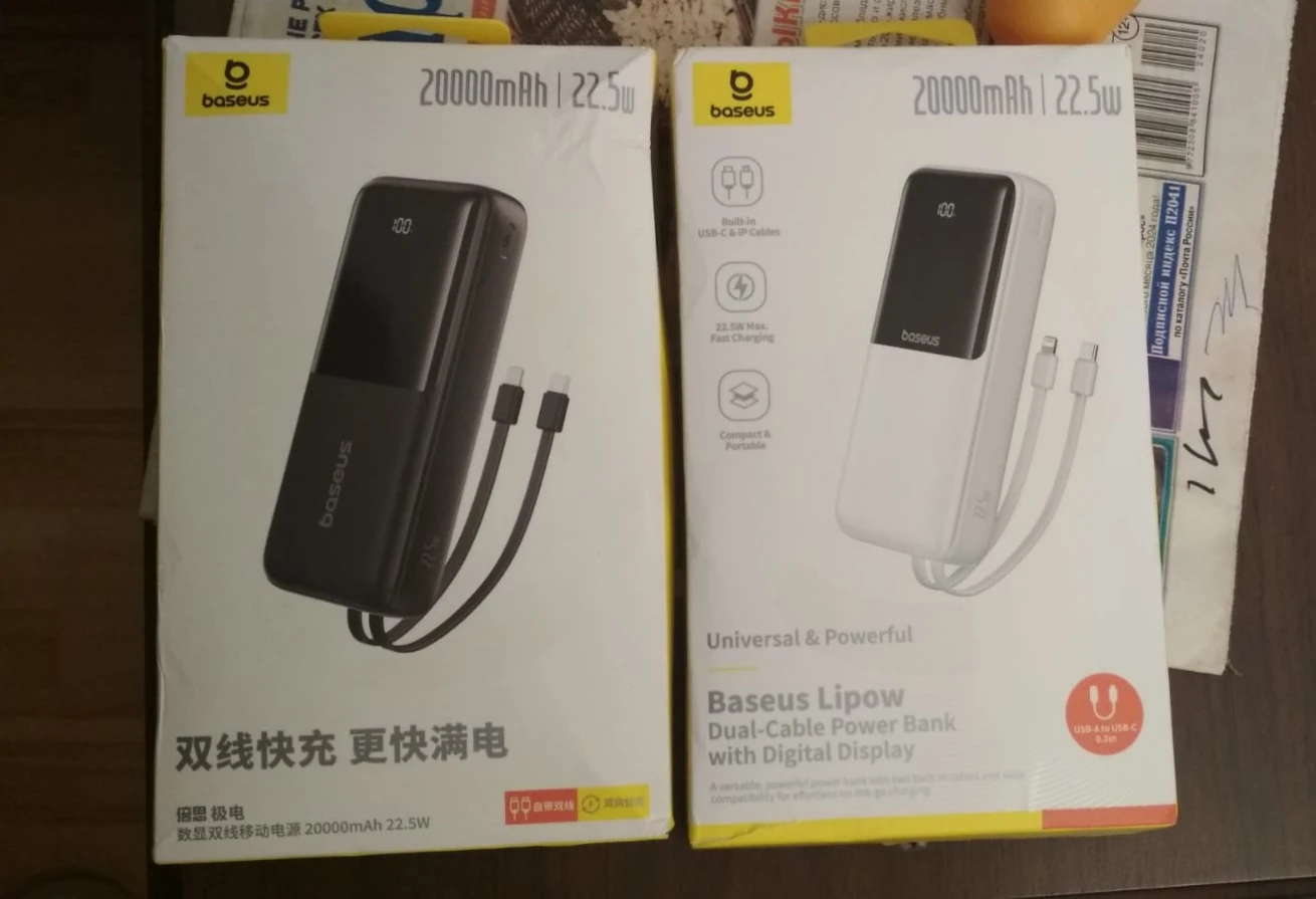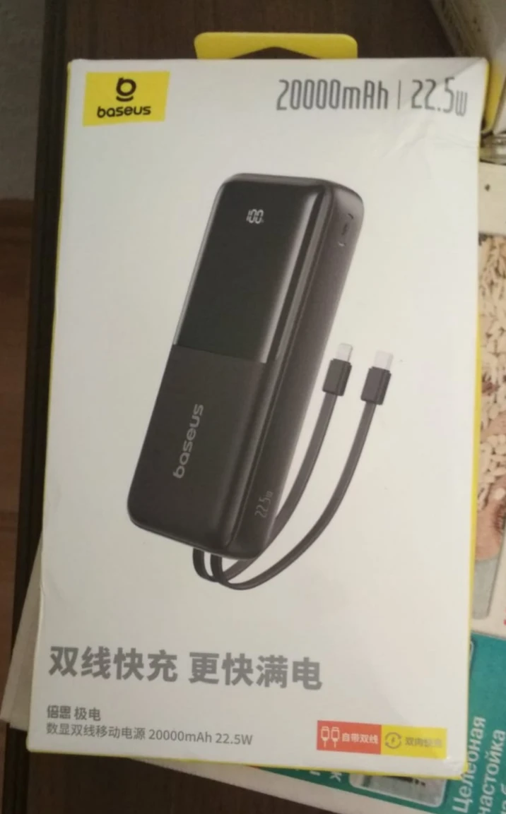 Заказал сначала себе, в белом корпусе. Очень понравился! А пауэрбенков у меня было много разных (ZMI, Xiaomi, Hoco, Baseus, Romoss, Rocoren, KUULAA, USAMS и тд), так что есть с чем сравнивать! Пару месяцев до покупки этого пауэрбенка пользовался тоже Baseus, тоже на 20000mAh. Этот понравился настолько, что тот отдал коллеге. И заказал ещё 3 белых и 3 чёрных на подарки родным и другу, благо по скидке вышло по 951₽ на середину мая 2025г. После трёх полных циклов разряда-заряда средний показатель отдачи 14200mAh, а вбирают пауэрбенки в себя в среднем 19500mAh. Корпус приятный на ощупь, кнопка включения сенсорная. В комплекте короткий шнурок USB - Type-C. И заряжает, и данные передаёт! К тому же поддерживает на моём Realme 10 SuperVooc 33W от штатного ЗУ! Кто в курсе, поймёт ценность шнурка! Для моего Realme 10 максимум удалось выжать кратковременно 16W через Type-C: 5V×3,2A. А так стабильно даёт 15W через тот же Type-C. Заряжать от него малым током у меня не получилось - существенный минус, в отличии от ZMI и Xiaomi! Но на этот случай я давно приобрёл корпус пауэрбенка для одного аккума 18650. Вставил аккум на 2600mAh и теперь заряжаю им слаботочные гаджеты. Большой же плюс этого Baseus то, что здесь два встроенных шнура. В дороге это особенно удобно! В общем, вполне достойный пауэрбенк на сегодняшний день!