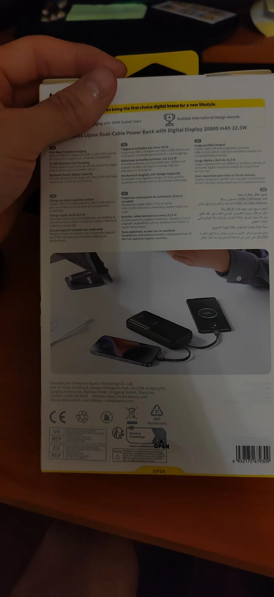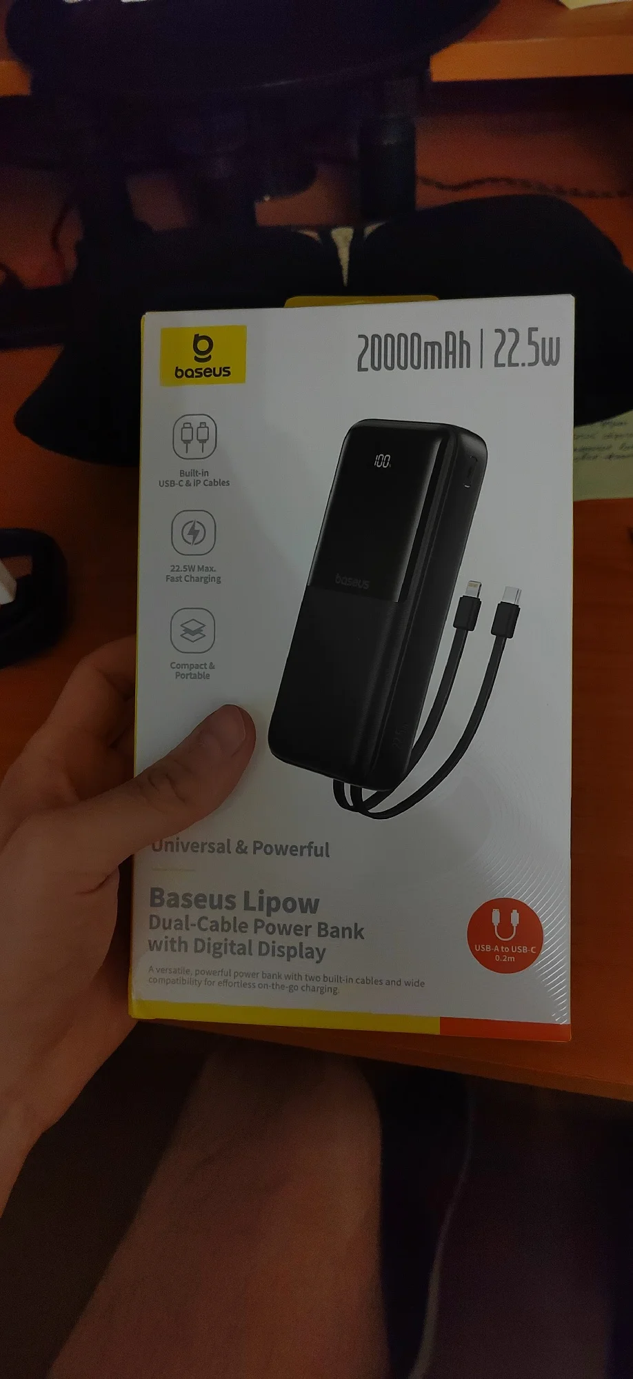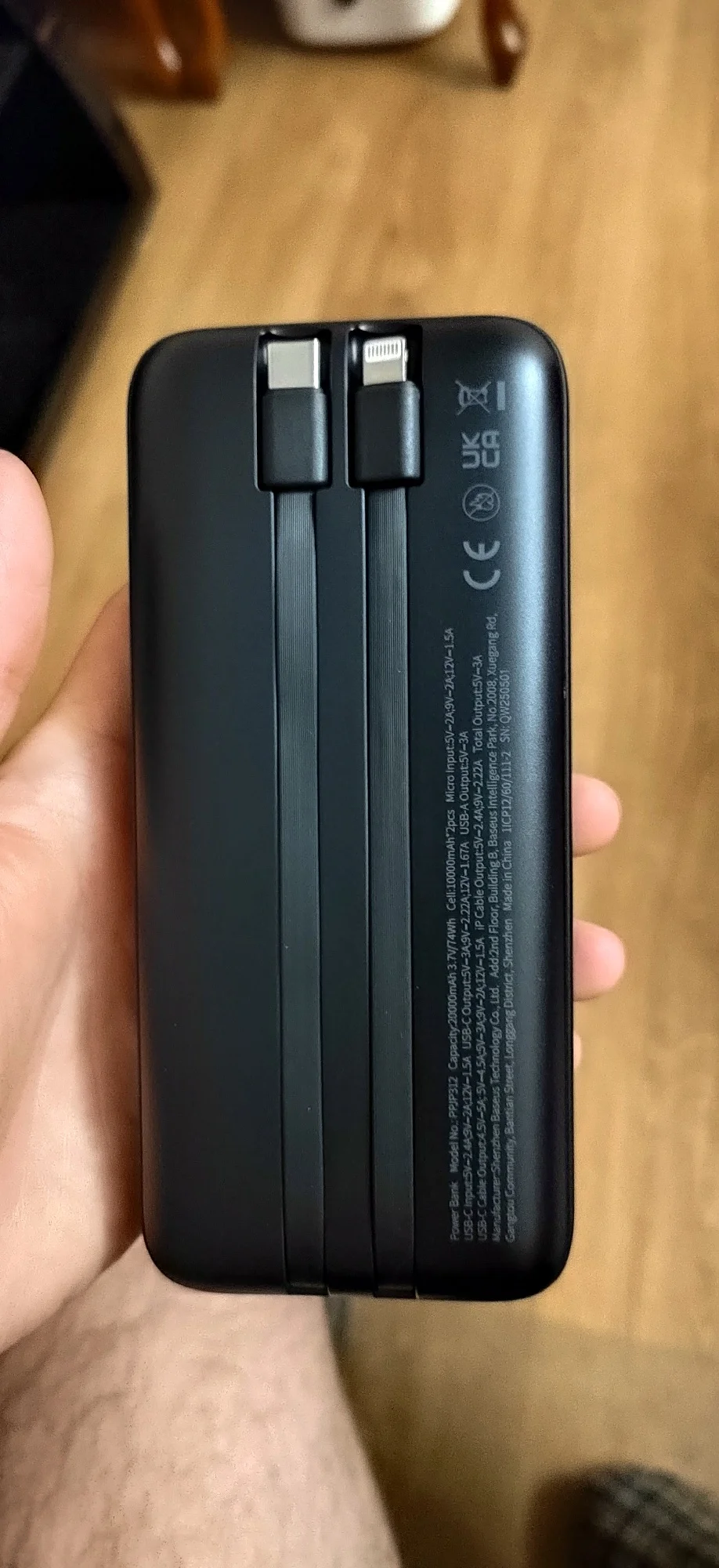 Заказал сначала себе, в белом корпусе. Очень понравился! А пауэрбенков у меня было много разных (ZMI, Xiaomi, Hoco, Baseus, Romoss, Rocoren, KUULAA, USAMS и тд), так что есть с чем сравнивать! Пару месяцев до покупки этого пауэрбенка пользовался тоже Baseus, тоже на 20000mAh. Этот понравился настолько, что тот отдал коллеге. И заказал ещё 3 белых и 3 чёрных на подарки родным и другу, благо по скидке вышло по 951₽ на середину мая 2025г. После трёх полных циклов разряда-заряда средний показатель отдачи 14200mAh, а вбирают пауэрбенки в себя в среднем 19500mAh. Корпус приятный на ощупь, кнопка включения сенсорная. В комплекте короткий шнурок USB - Type-C. И заряжает, и данные передаёт! К тому же поддерживает на моём Realme 10 SuperVooc 33W от штатного ЗУ! Кто в курсе, поймёт ценность шнурка! Для моего Realme 10 максимум удалось выжать кратковременно 16W через Type-C: 5V×3,2A. А так стабильно даёт 15W через тот же Type-C. Заряжать от него малым током у меня не получилось - существенный минус, в отличии от ZMI и Xiaomi! Но на этот случай я давно приобрёл корпус пауэрбенка для одного аккума 18650. Вставил аккум на 2600mAh и теперь заряжаю им слаботочные гаджеты. Большой же плюс этого Baseus то, что здесь два встроенных шнура. В дороге это особенно удобно! В общем, вполне достойный пауэрбенк на сегодняшний день!