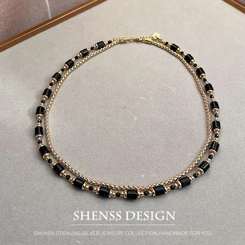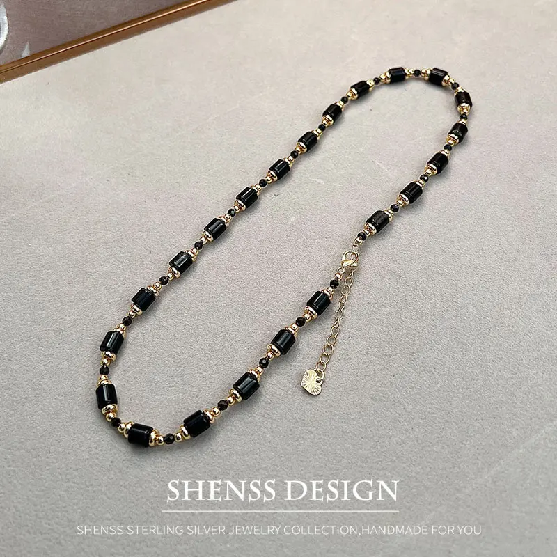 Персонализированное ожерелье из натурального обсидиана с черным цирконом и медным покрытием, аксессуары из 14-каратного золота