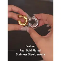 Yhpup Stainless Steel C Shape Round Chunky Unusual Earrings Jewelry Waterproof...
