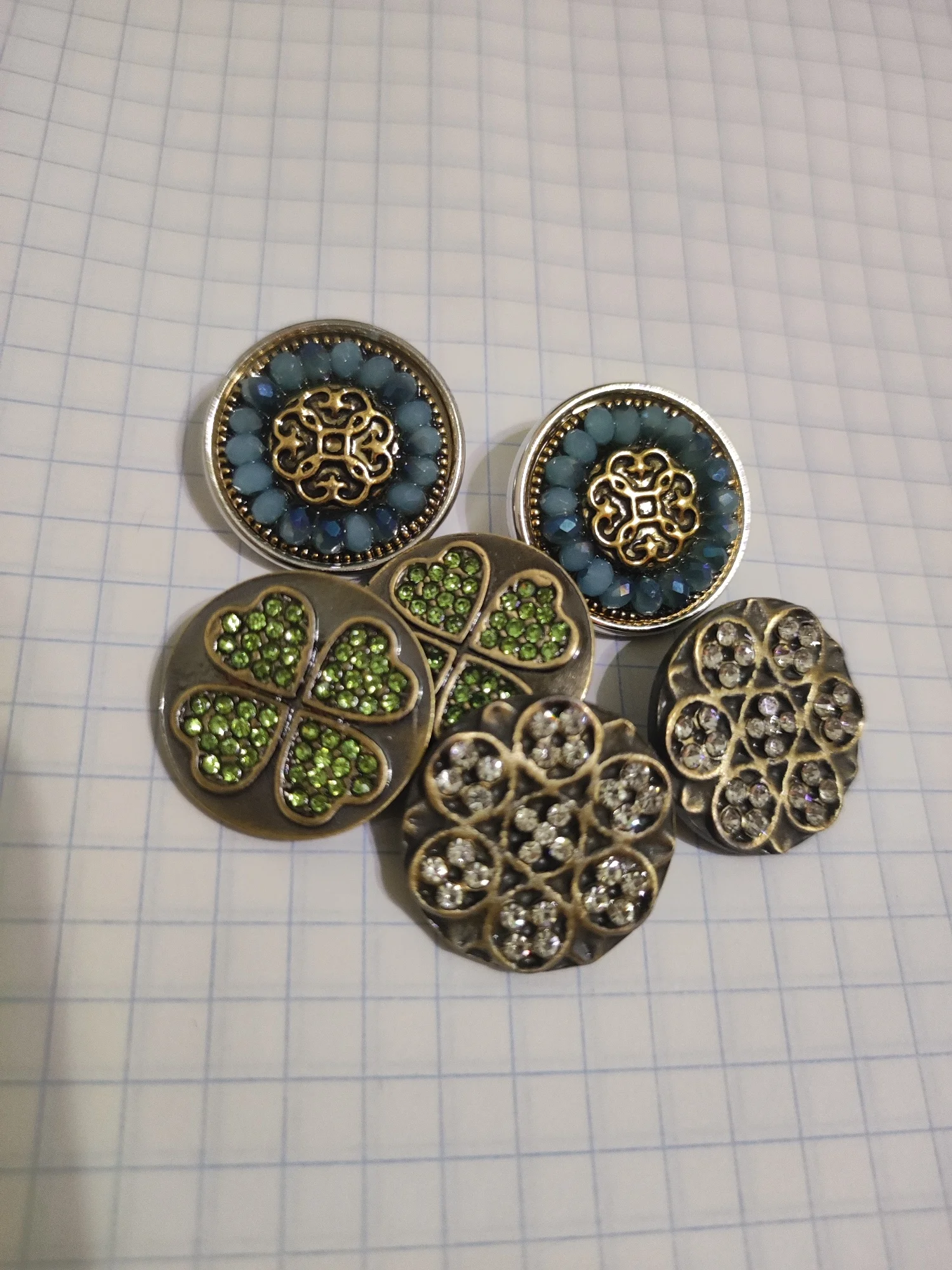 Синие кнопки в реальности выглядят намного скромнее , чем на фото и даже можно сказать, что блекло. К качеству претензий нет, сделаны аккуратно. примерить их пока нет возможности, подвеска и браслет для них ещё только едут ко мне.