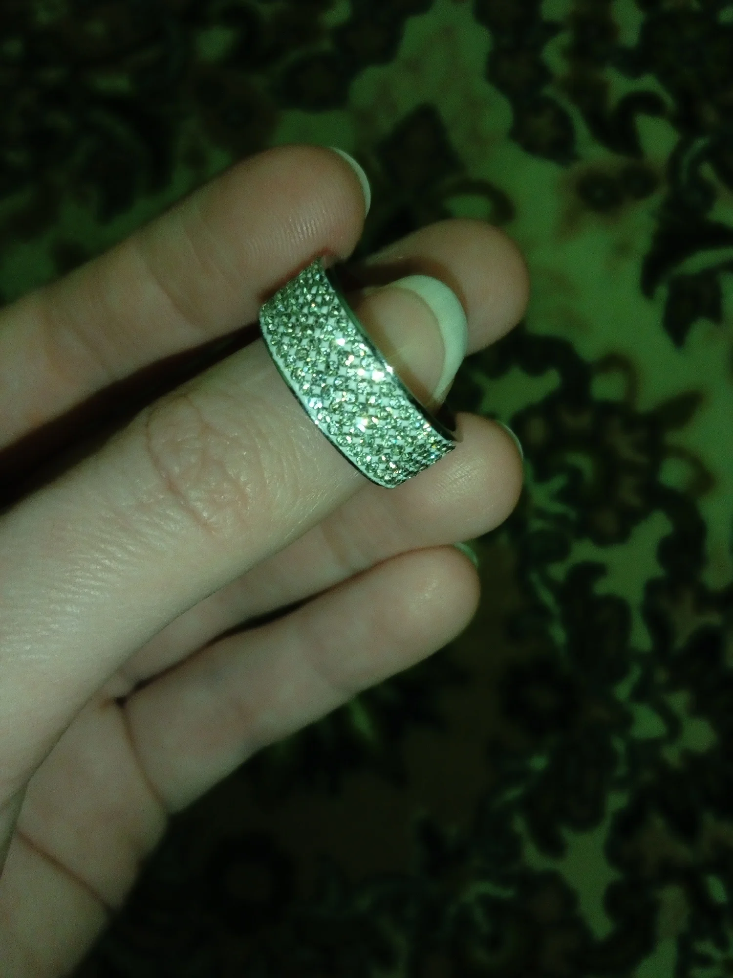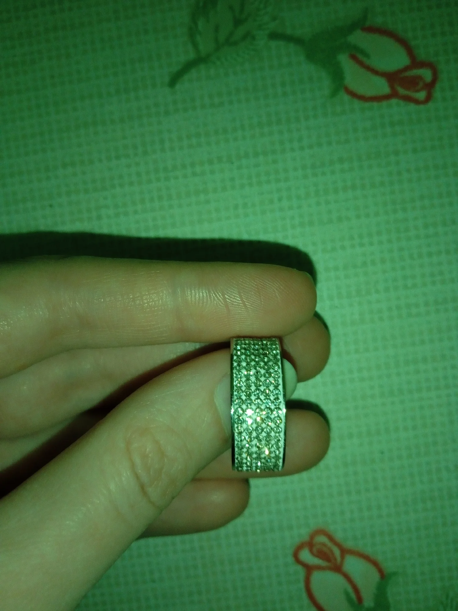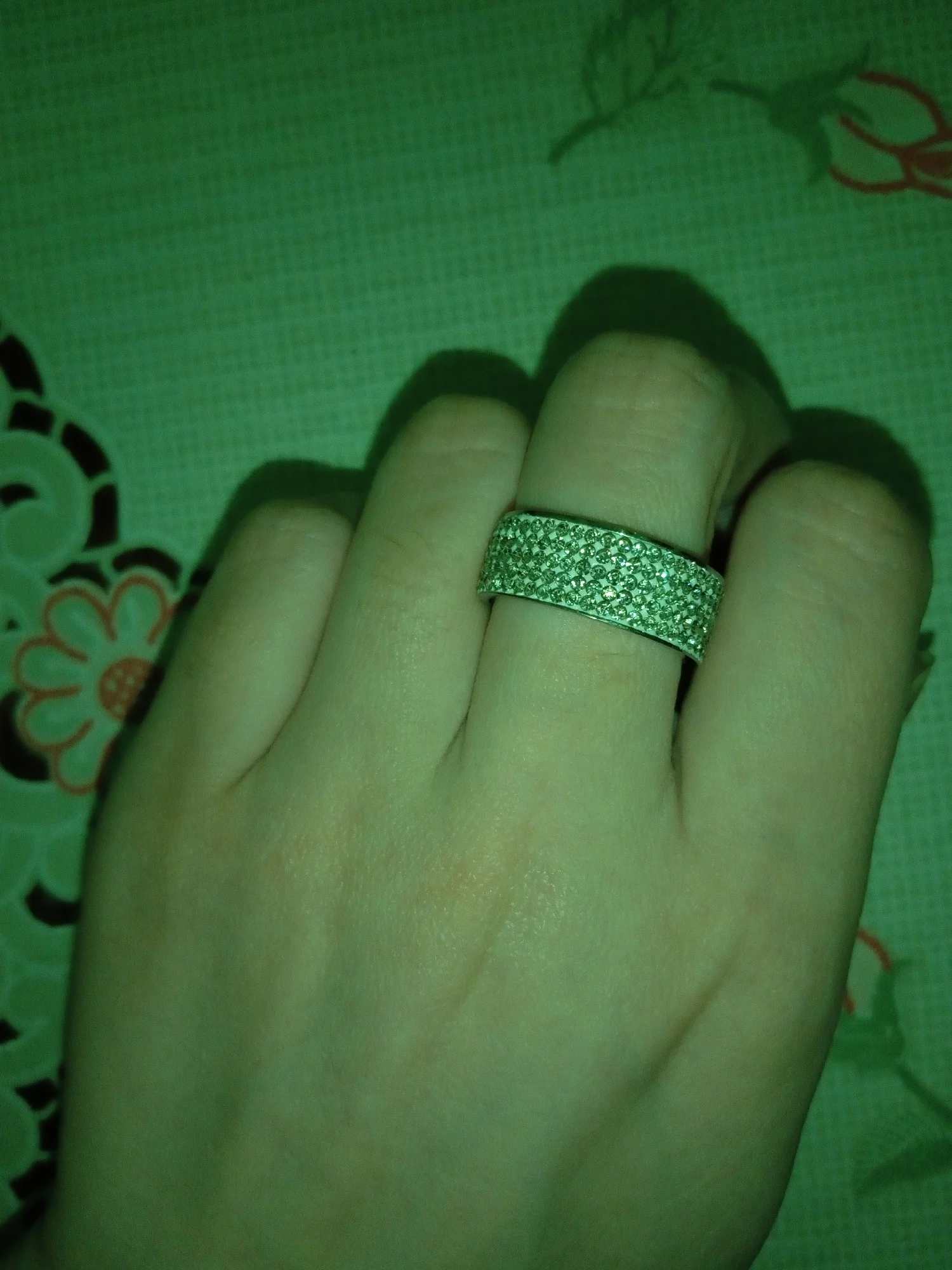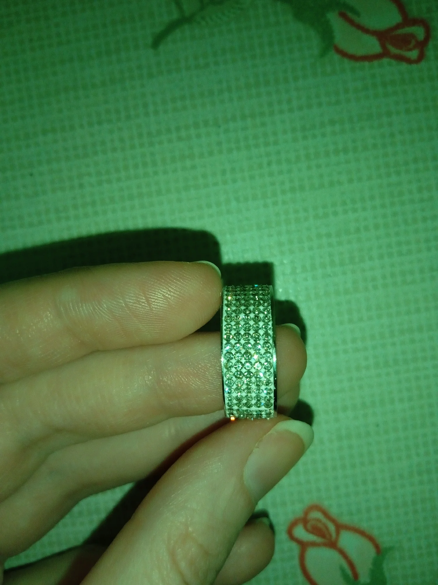 красивущее кольцо за небольшие деньги. есть недочеты. Во-первых Ви нескольких местах неровно приклеены кристаллы. Во-вторых из-за толщены кольца нужно брать чуть больше размер. но вместо мелочи, по сравнению с блеском колечка😄