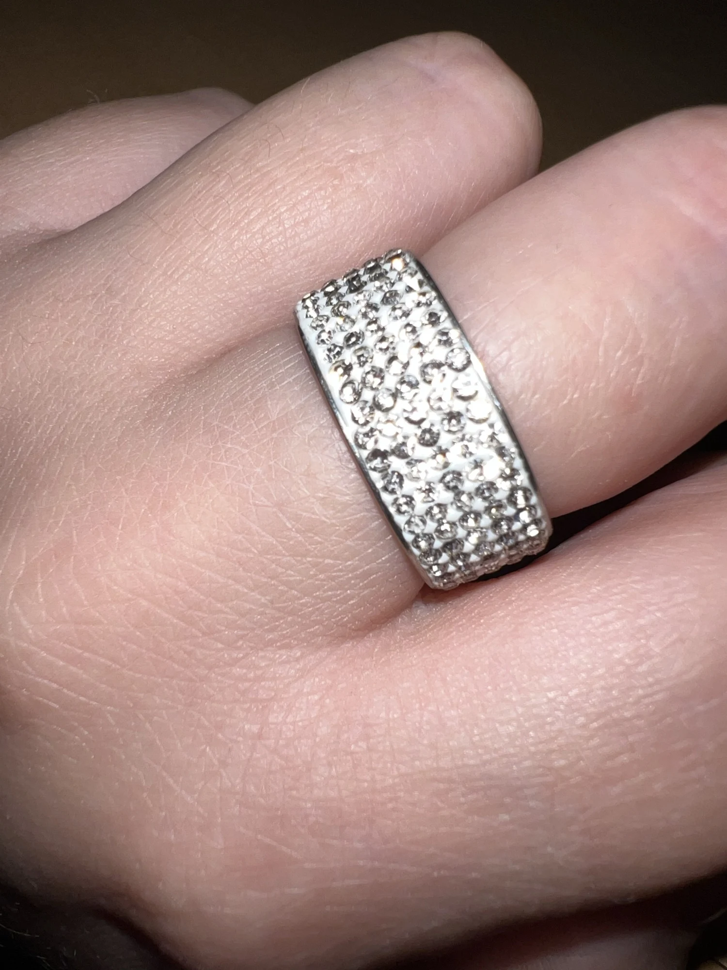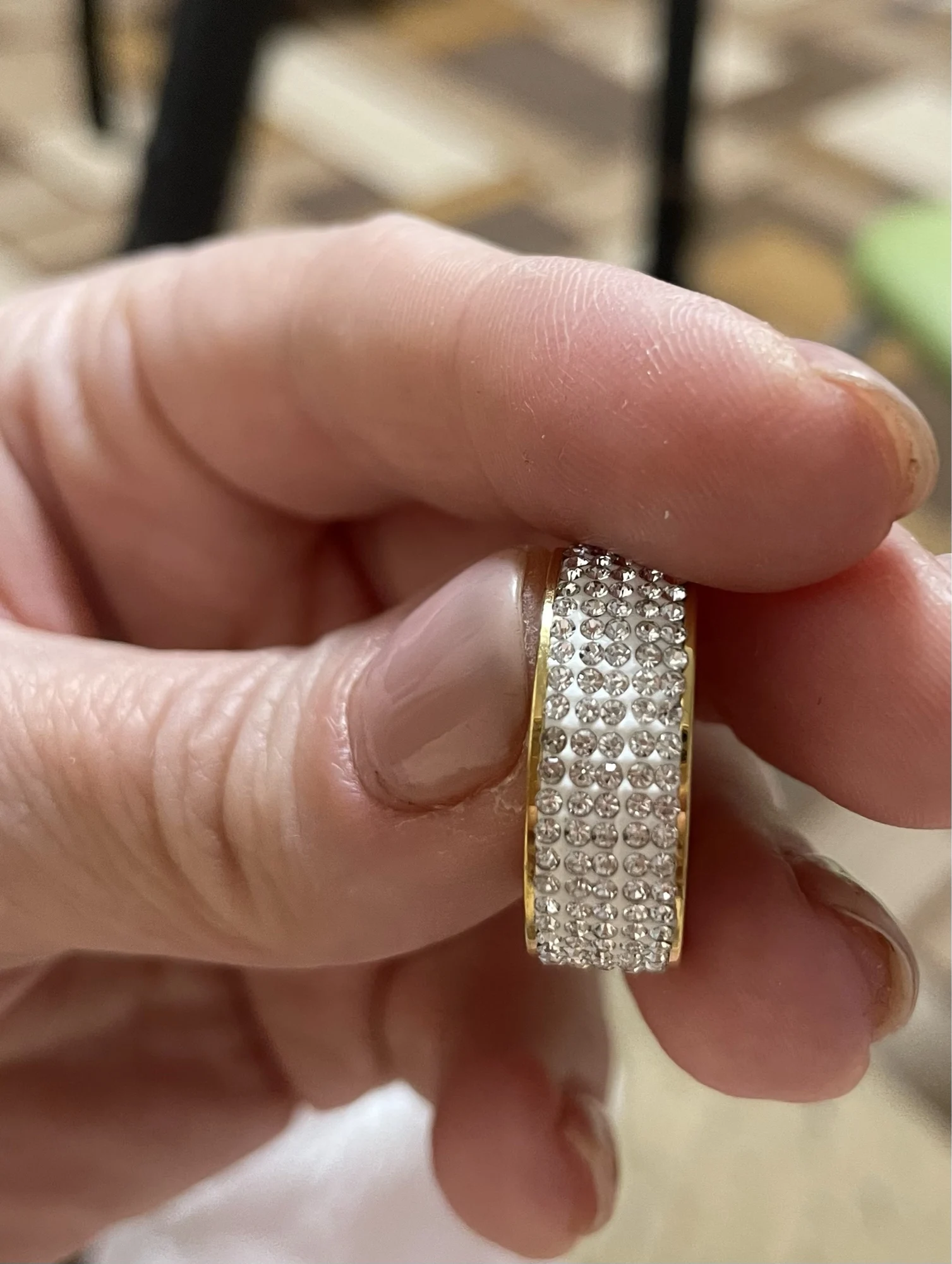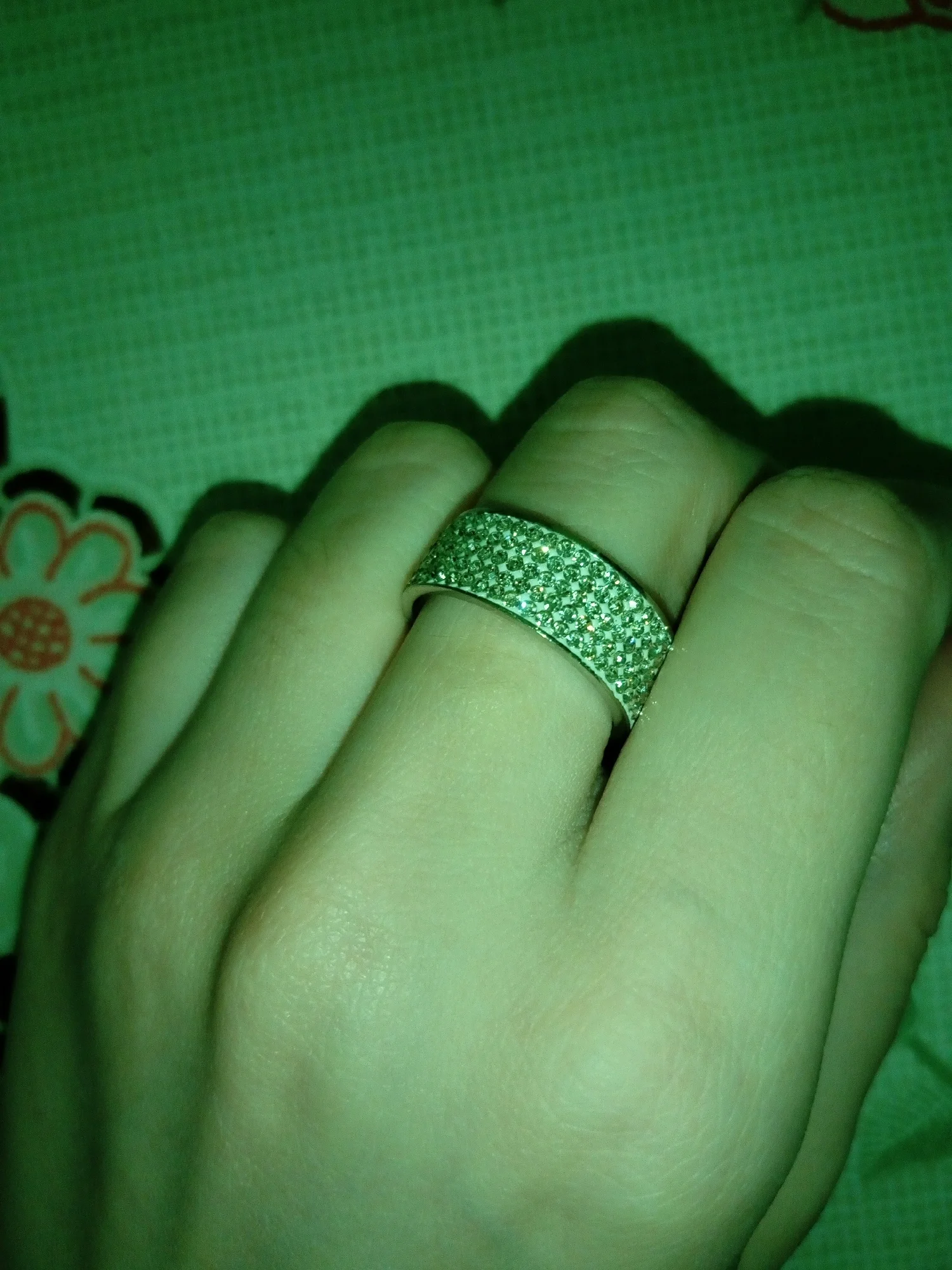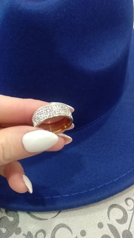 красивущее кольцо за небольшие деньги. есть недочеты. Во-первых Ви нескольких местах неровно приклеены кристаллы. Во-вторых из-за толщены кольца нужно брать чуть больше размер. но вместо мелочи, по сравнению с блеском колечка😄