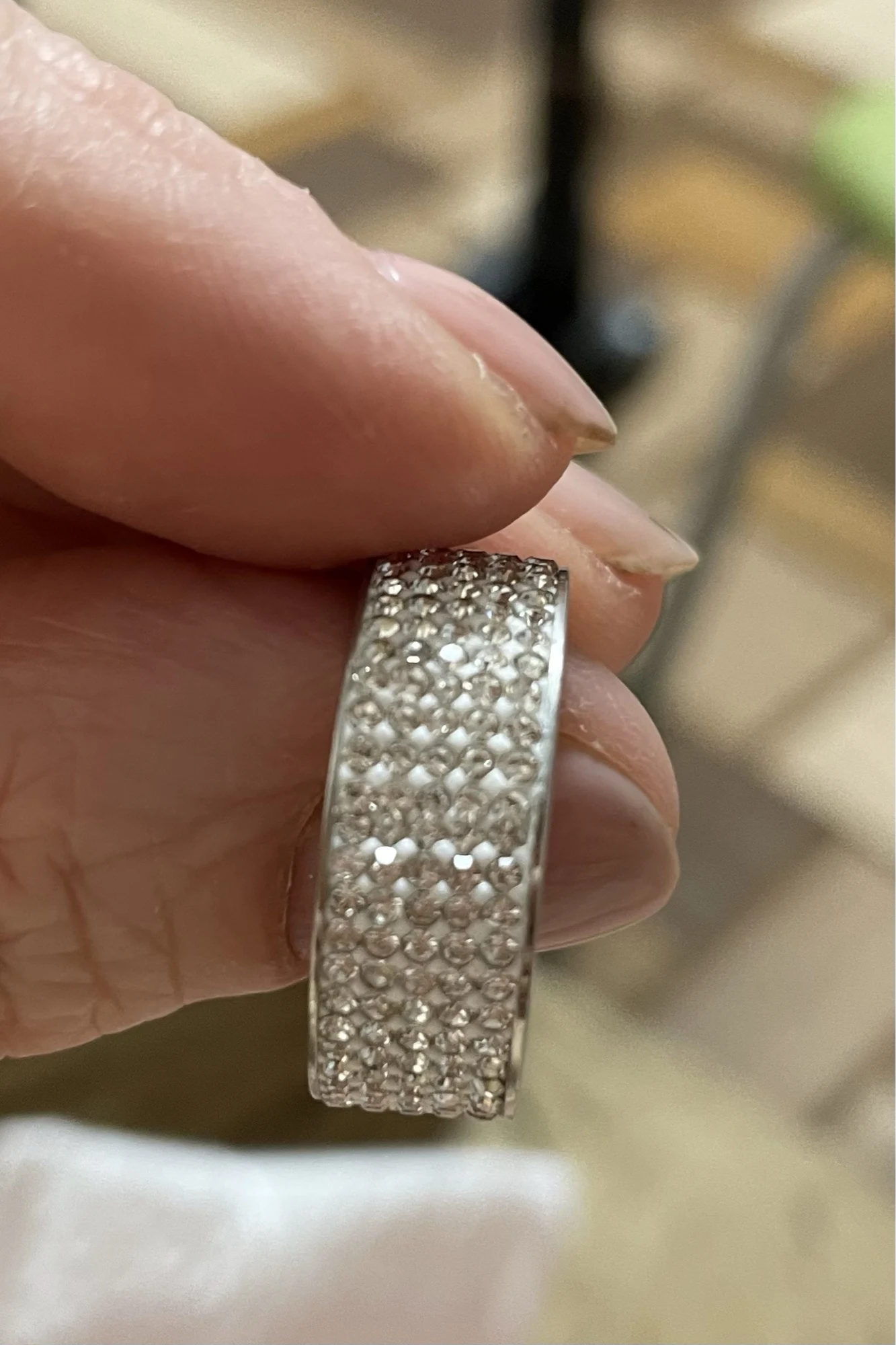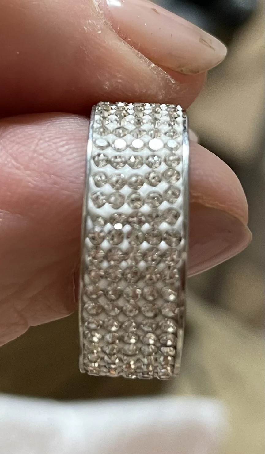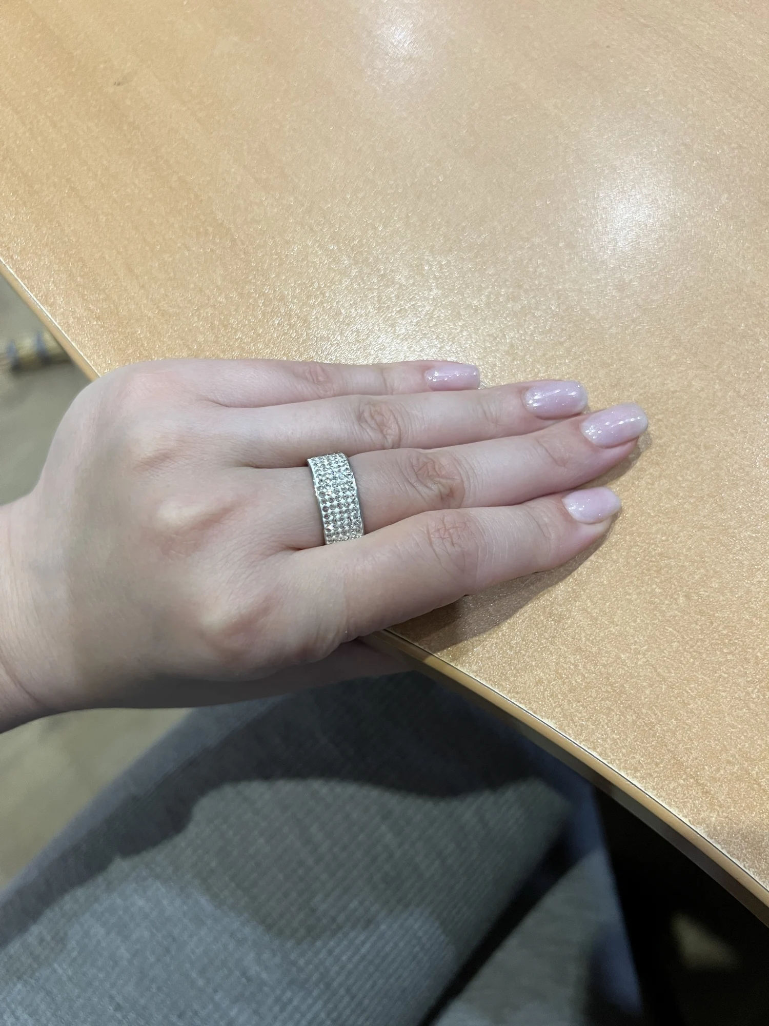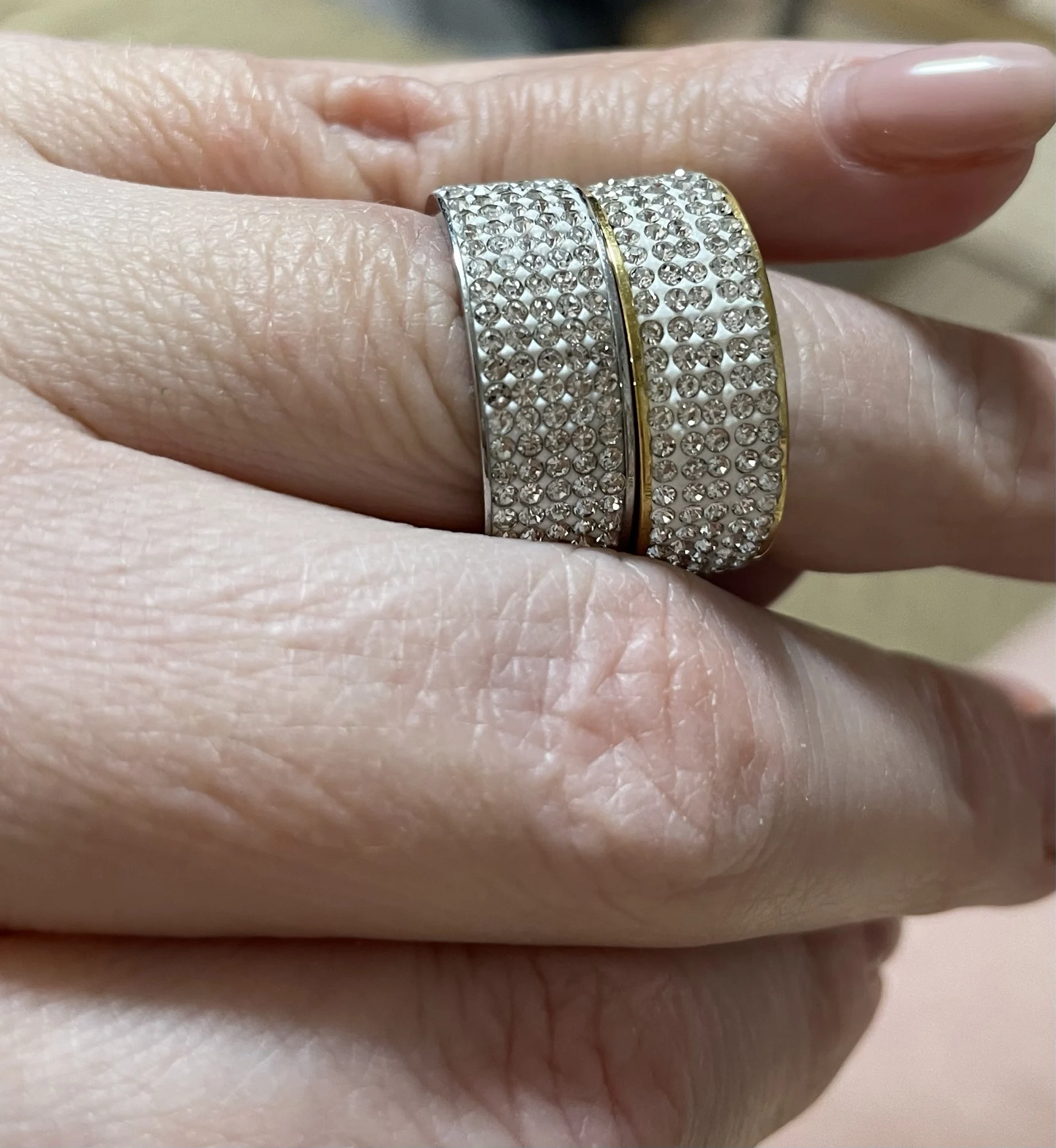 красивущее кольцо за небольшие деньги. есть недочеты. Во-первых Ви нескольких местах неровно приклеены кристаллы. Во-вторых из-за толщены кольца нужно брать чуть больше размер. но вместо мелочи, по сравнению с блеском колечка😄