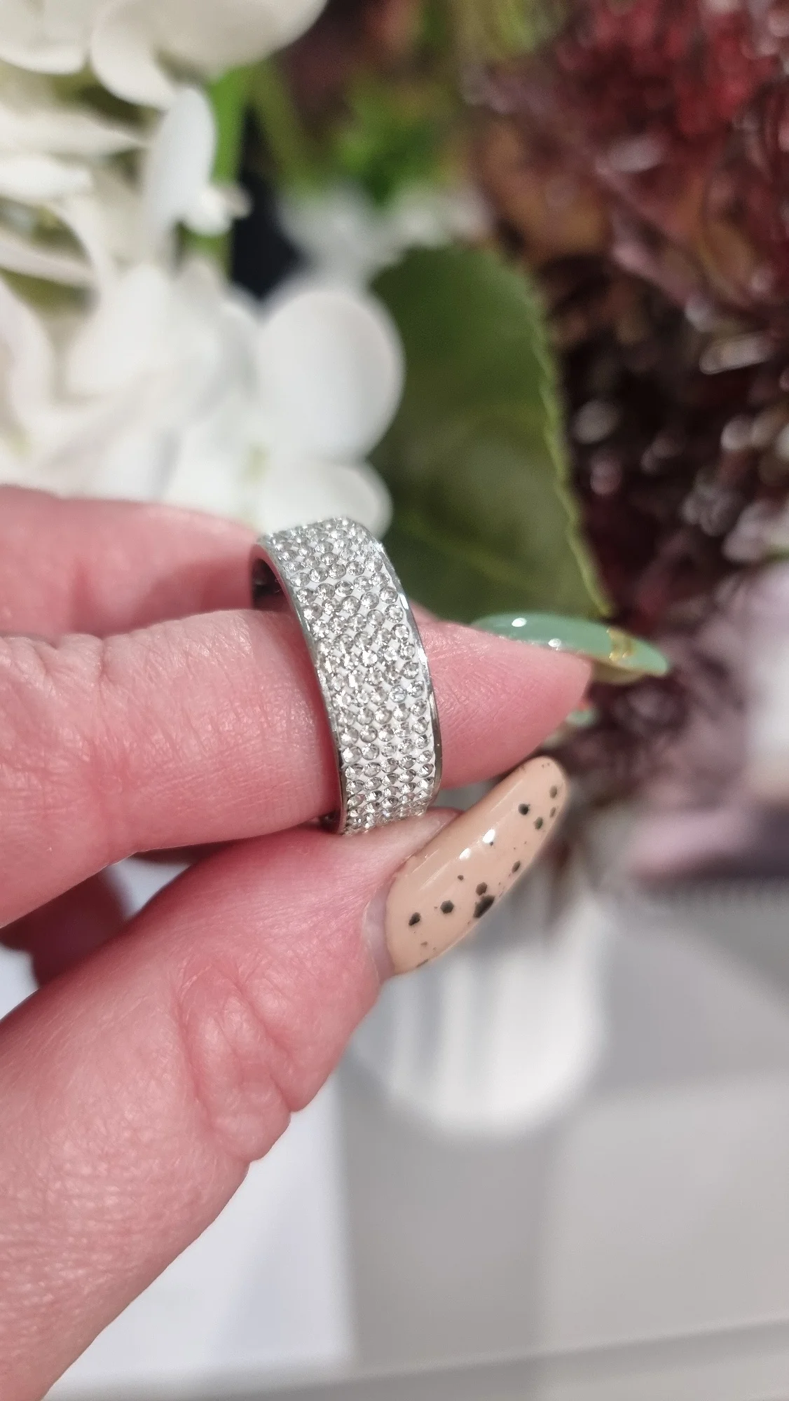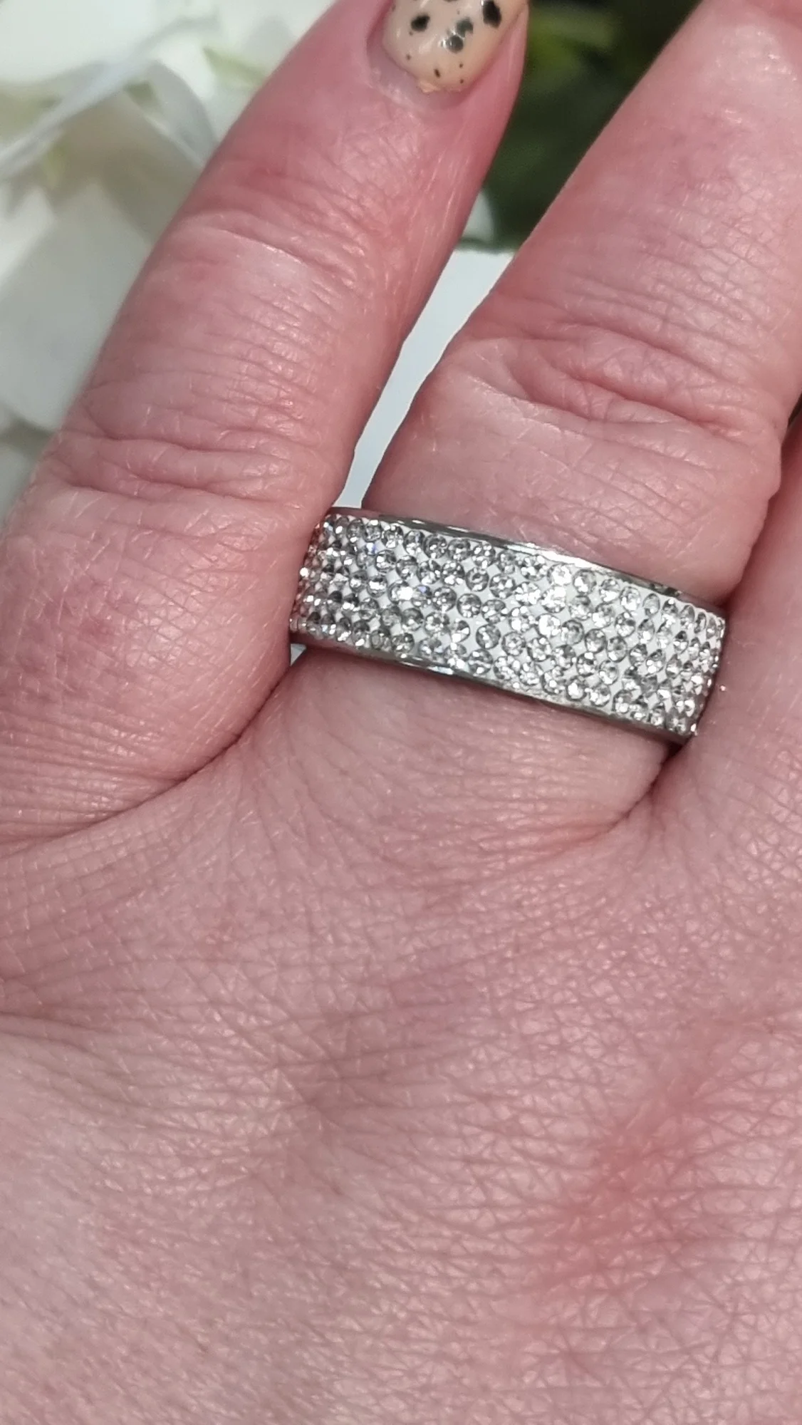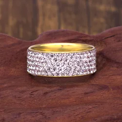 Stainless Steel 5 Rows Crystal Rings for Women 8mm Wedding bands Fashion Jewelry