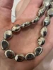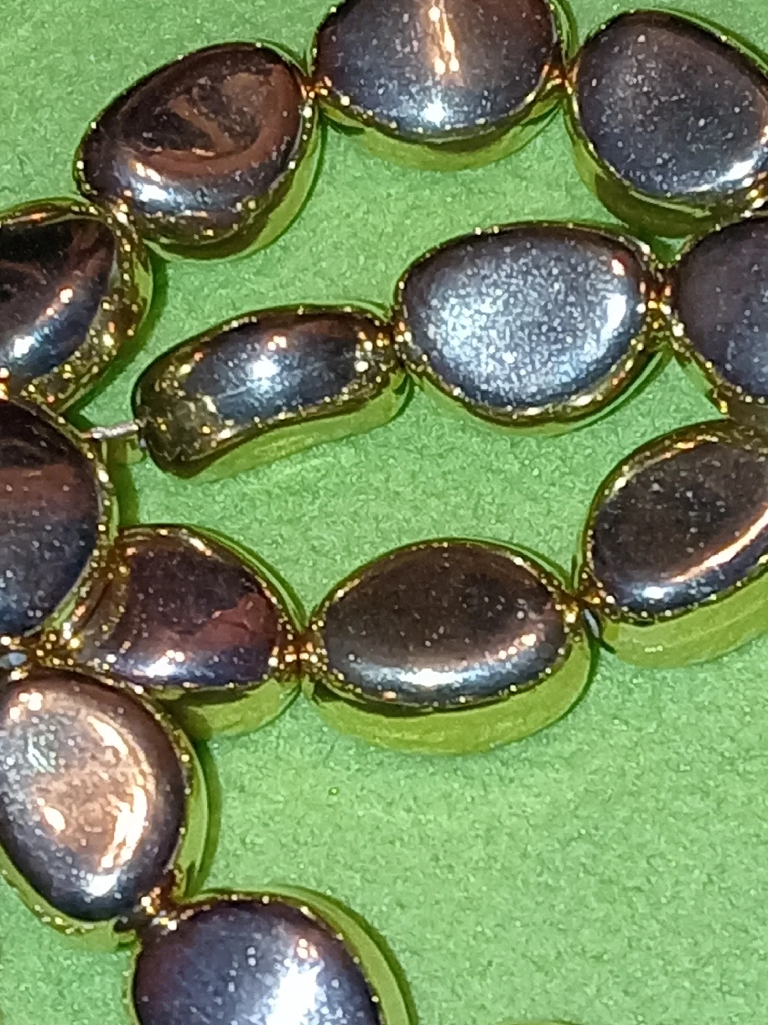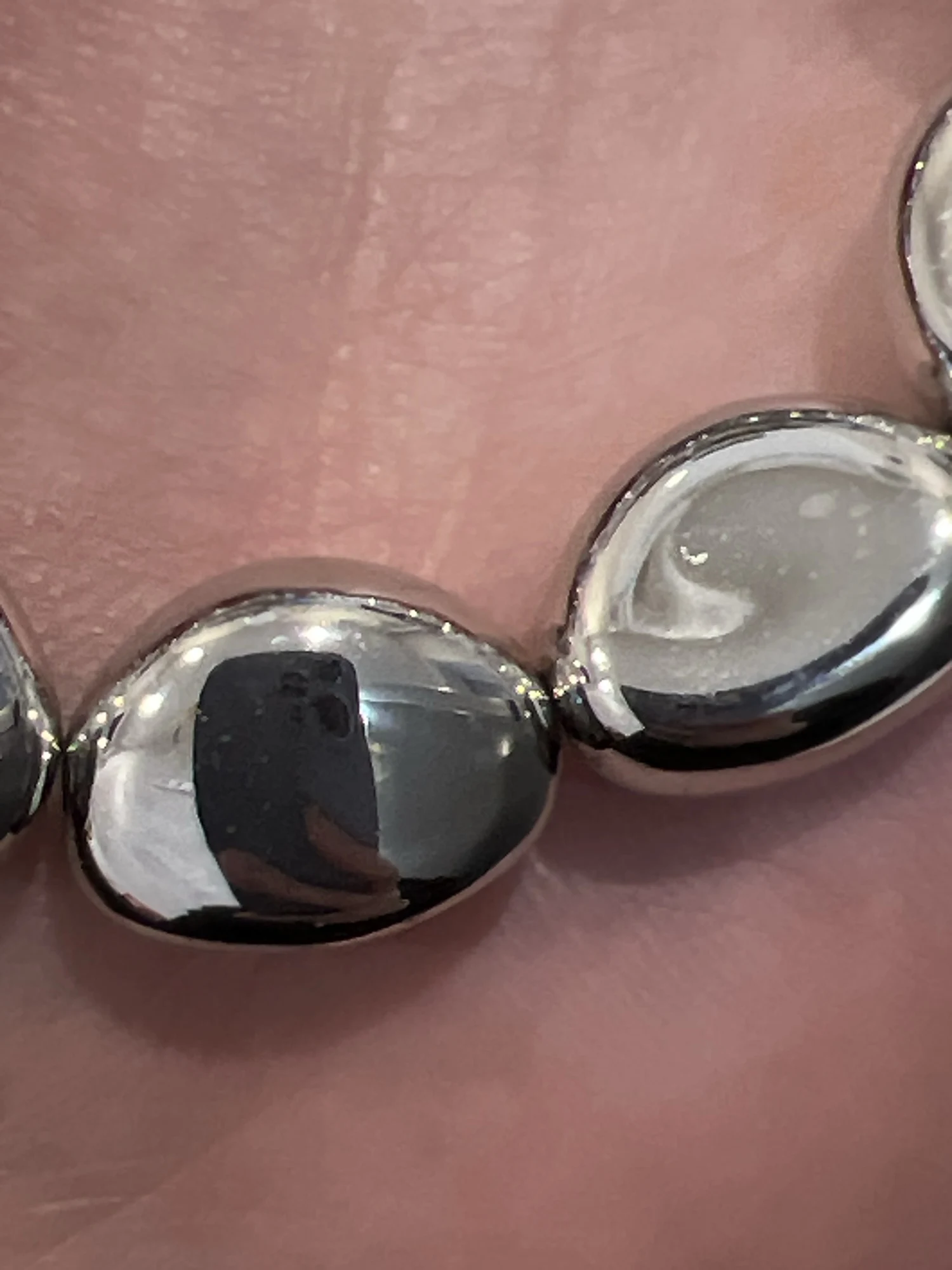 Очень люблю эти бусы, на фото можно увидеть что они немного поцарапаны, но это потому что поздно пишу отзыв и успела их заносить. Материал — крашеный пластик, легкий, но как по мне это сложно назвать минусом. Они не выглядят дешево, звук издают прикольный. Короче советую, просто большого веса от них не ждите.