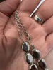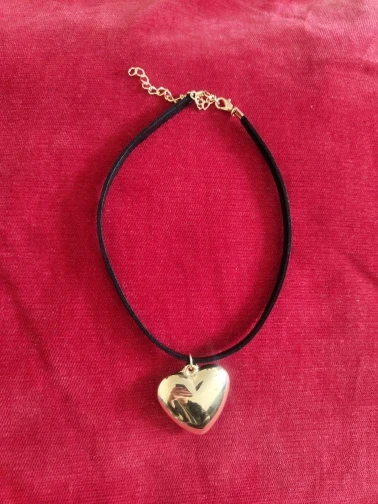 А з цим чокером маленьке непорозуміння. Сам чокер довжиною 28 см (чорна частина, шнурок) з ланцюжком - 37 см. Чорний шнурок бархатний, а до шиї як гума, або екошкіра. Але він, як на мене, тоненький для такої великої підвіски. Виконання добре, але є але...