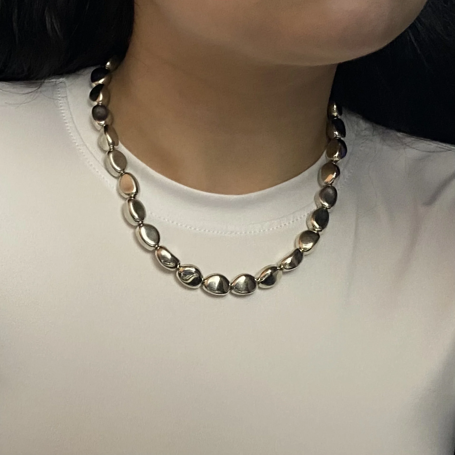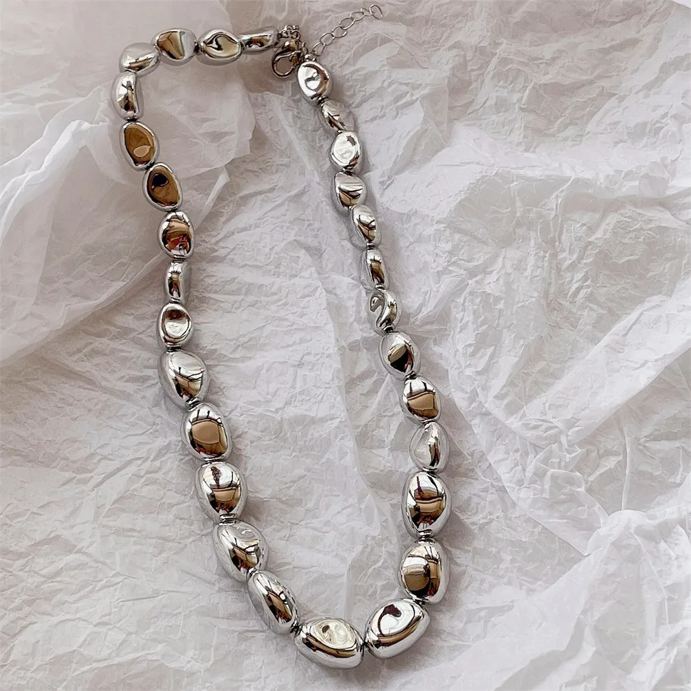 Vintage Silver Color Geometric Exaggerated Artificial Pearl Chain Necklace For...