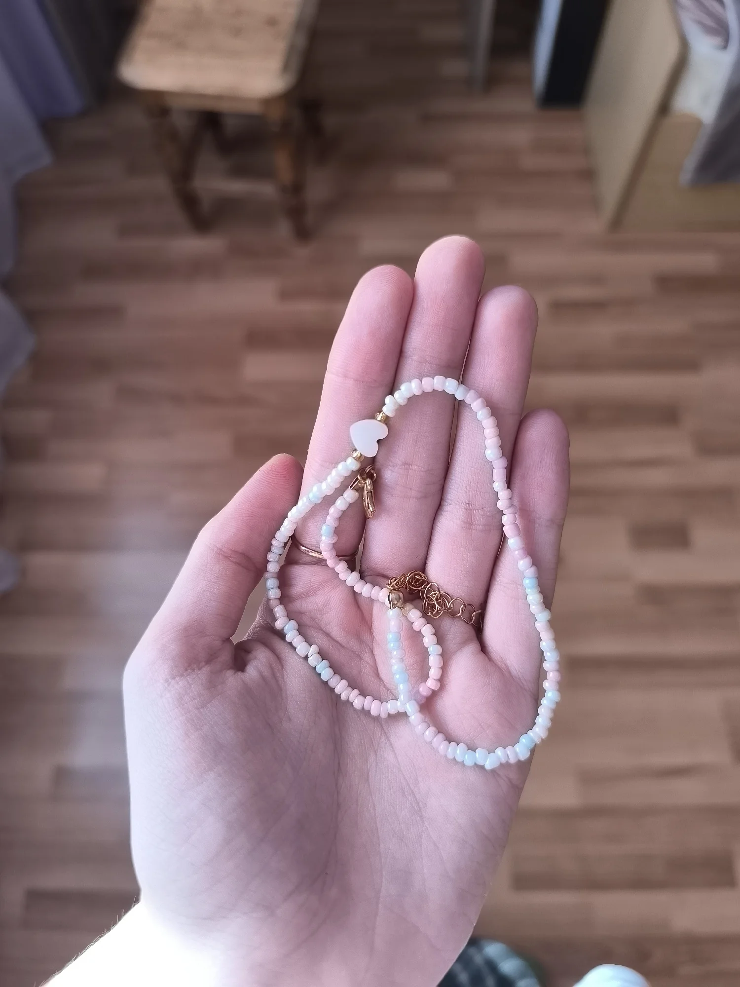 всем доброго времени суток! крайне рекомендую этот прекрасный товар. я хотела заказать чисто белый вариант, но в итоге перепутала и купила с цветными бусинками. но ожерелье всё равно выглядит божественно! моё любимое, ношу каждый раз, когда появляется случай🩷 сердечко переворачивается, будьте к этому готовы! но всё равно очень его люблю, оно такое нежное🤍0547 u. 5 ноября 2024