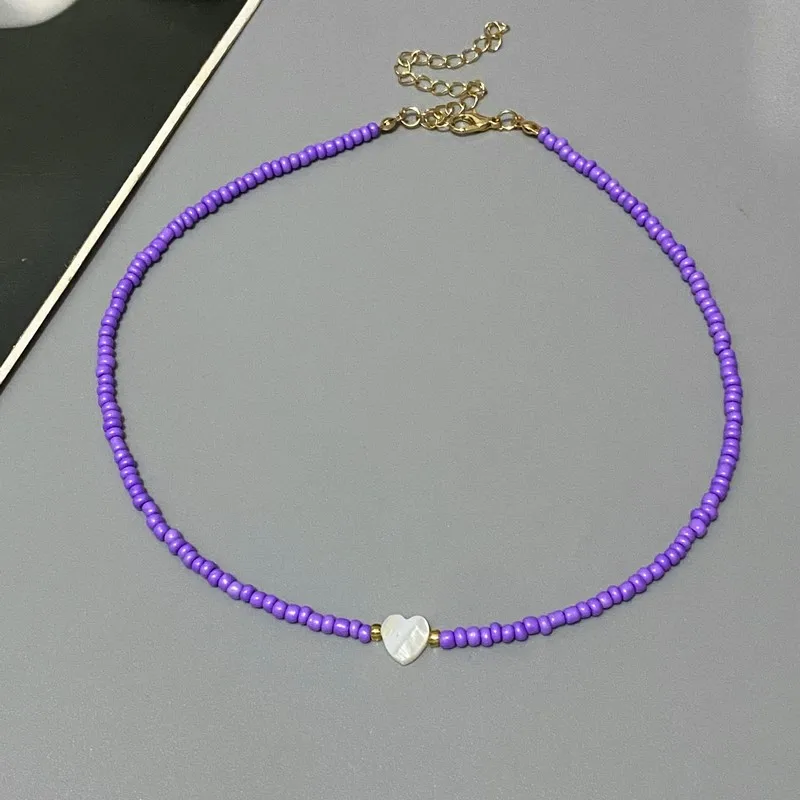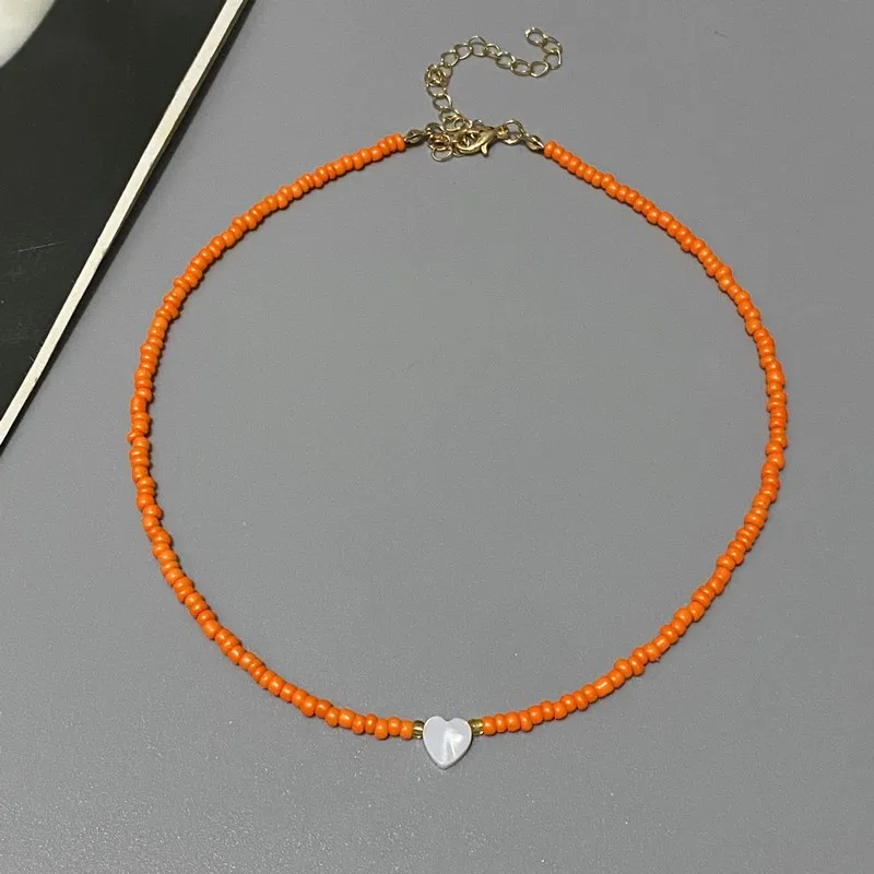 Colorful Seed Beads Choker Nekklace for Girl Spring Summer New Love Heart...