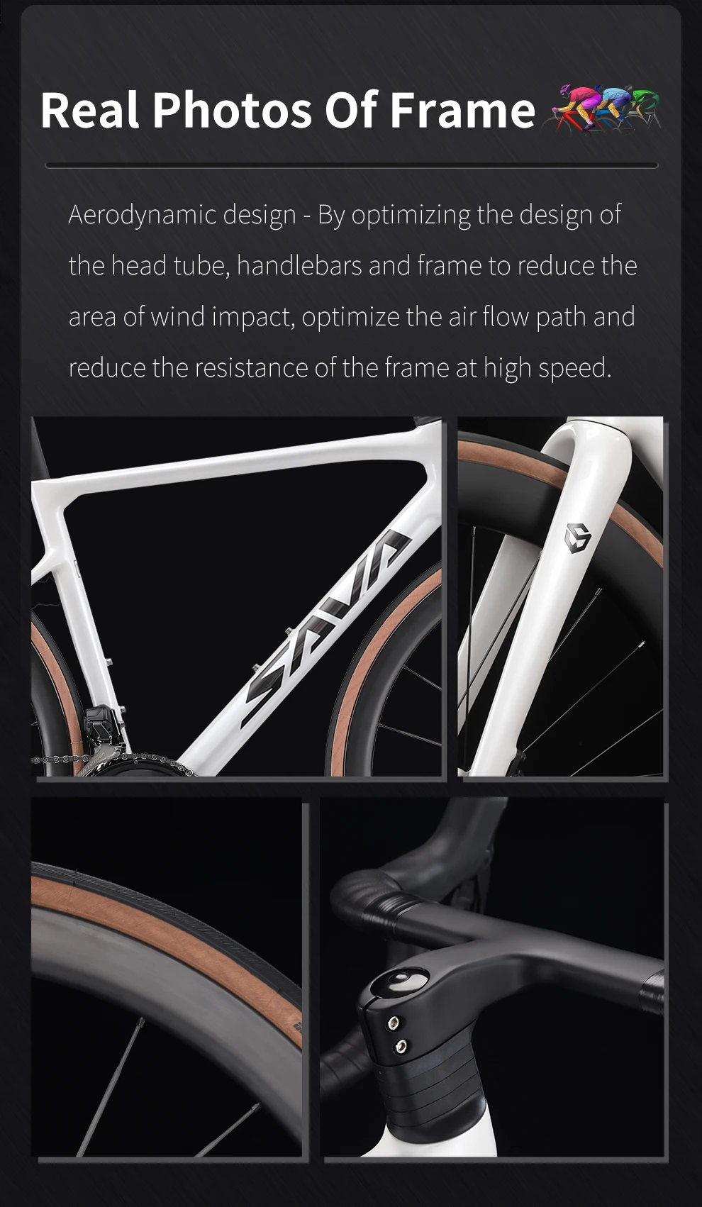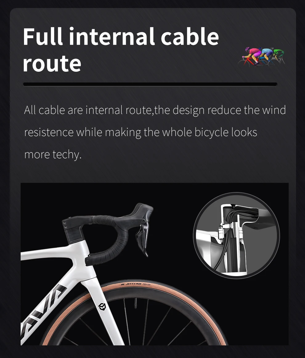 Проехал первые 200км, теперь могу поделиться впечатлениями Доставка: С момента оплаты до момента получения в Москве прошло 28 дней. Таможенную пошлину платить не пришлось, но нужно доплатить за доставку внутри города до двери СДЭК (у меня всего 2000 вышло). Коробка хорошо упакована. Обернута пленкой, поверх нее каркас из дерева, сверху еще слой пленки. Риск повреждения минимальный. Сборка: Самое сложное - снять деревянный каркас с коробки) Дальше нужно только поставить переднее колесо, руль, седло и педали, это можно легко сделать самому. На Youtube есть видео-инструкция для похожей модели Sava. Единственное, у меня руль очень туго надевался на шток вилки, но и с этим разобрался. Трансмиссия настроена, можно ехать. Тормоза тоже стояли правильно (левый - перед, правый - зад) Сам велосипед: Минуса только два и те очень незначительные 1. Во время доставки на заднем переключателе стерлась краска в месте трения об коробку 2. Отверстие для фиксации подседела вырезано в раме кривовато В остальном великолепный велосипед, особенно за такие деньги (у меня вышел 232 тысячи рублей). Аналоги именитых брендов с подобными харакетеристиками часто стоят раза в 2 дороже. До этого опыта с шоссейниками не было, катался на неплохом кросс-кантри хардейле. По сравнению с ним небо и земля. Он невероятно легкий, что позволяет поднимать его по лестницам одной рукой. В то же время достаточно жесткий и аэродинамичный. Стало в разы проще разгоняться, держать среднюю скорость 30 км/ч, забираться в сложные подъемы. По асфальту не едет, а летит. Даже после длительного отсутствия тренировок езжу заметно быстрее и дальше, устаю меньше. Все компоненты радуют, даже улучшать ничего не хочется. Круто, что сразу наклеена защита пера от цепи и установлены облегченные TPU камеры в колеса. На рост 182см брал раму 56 размера (L). Bikefit еще не делал, но вроде подходит, пока привыкаю к шоссейной посадке. Заявлено, что используется карбон Т1000, не знаю как проверить, но велосипед действительно жесткий, энергию кручения передает отлично, но в замен почти не гасит вибрации. Вся проводка внутренняя, тросы нигде не мешают. Седло неизвестного производителя, достаточно узкое и короткое, может не подойти тем, у кого широкий таз, мне наоборот понравилось. Есть прорезь для вентиляции, подложка из карбона, сверху тонкое мягкое покрытие. Электронная трансмиссия работает отлично, переключает быстро и точно, нажать кнопку все-же проще, чем тянуть рычаг. Можно быстро перекинуть хоть по 6 передач вверх или вниз. Настраивать и подтягивать думаю больше никогда не придется) Заряжать надо редко, делается это через задний переключатель специальным проводом, его лучше не терять. Есть приложение E-Tube для настройки, но функции там не очень полезные. В общем пока очень доволен велосипедом, отличная покупка за эти деньги. Да и за большие деньги разница будет заметна только профессионалам