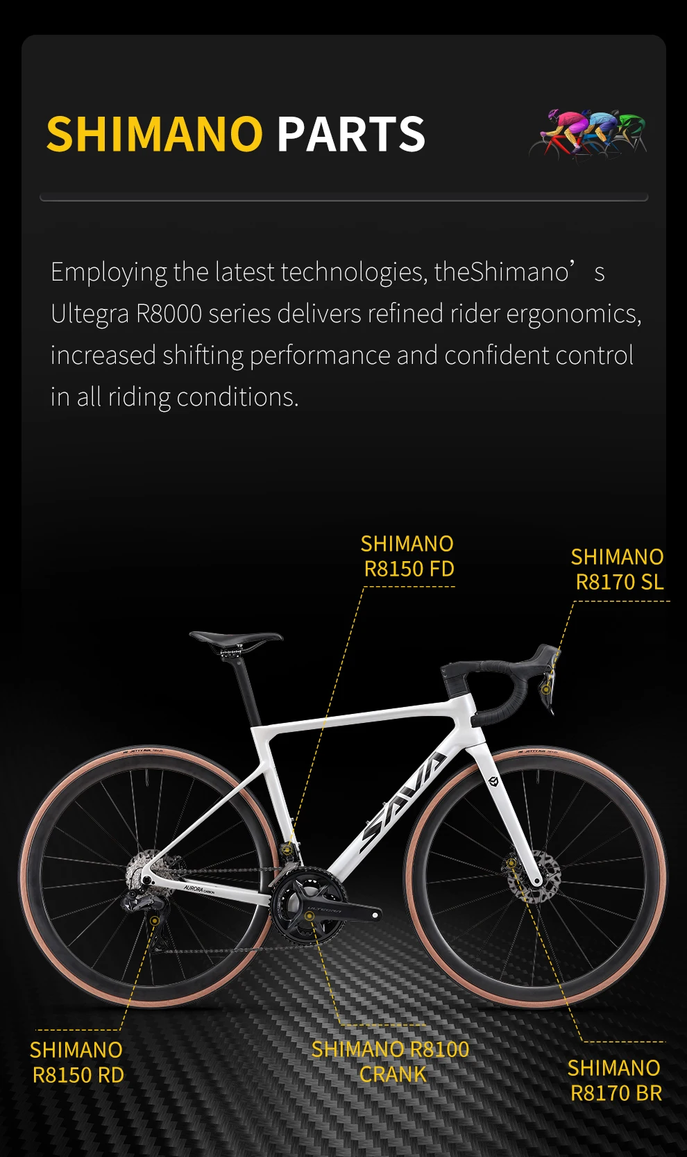 Ultegra Di2 Carbon Bike SAVA Carbon Fibre Road Bike Complete Racing Bicycle 24...