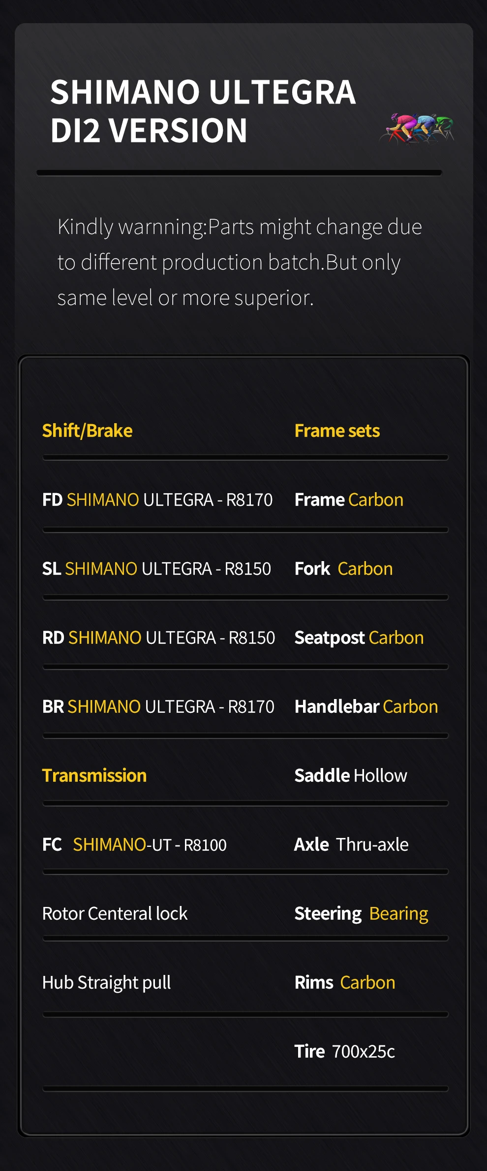Из-за разных партий некоторые детали на велосипеде могут быть изменены, но мы заменим только детали того же или более высокого уровня, большое спасибо за понимание.