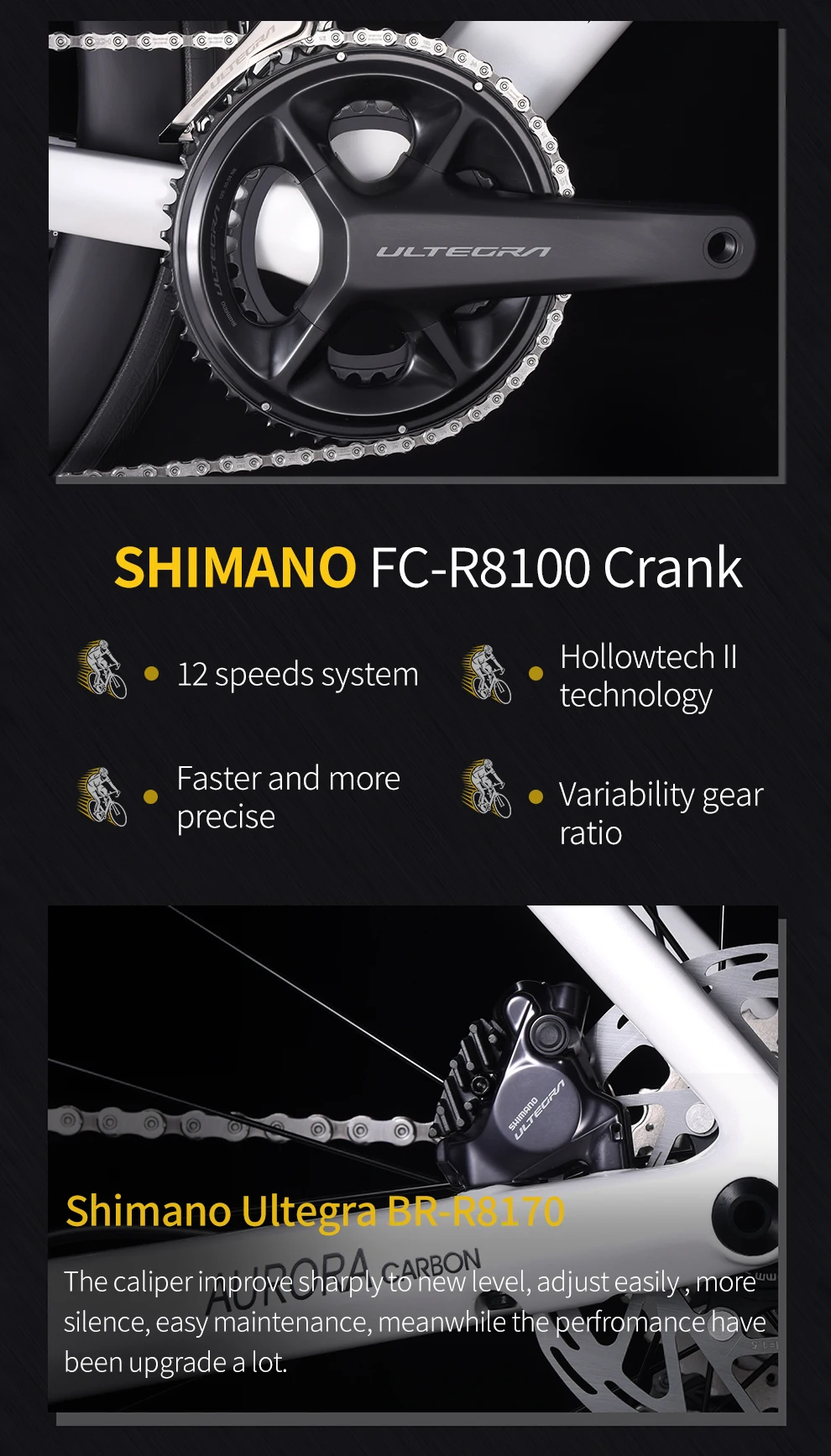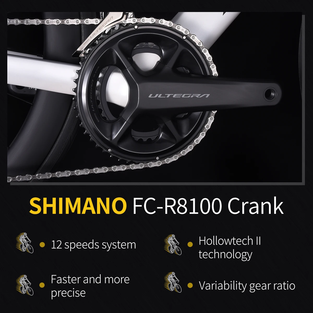 Комплекты кривошипов: SHIMANO FC-R8100 50-34T, 170 мм.