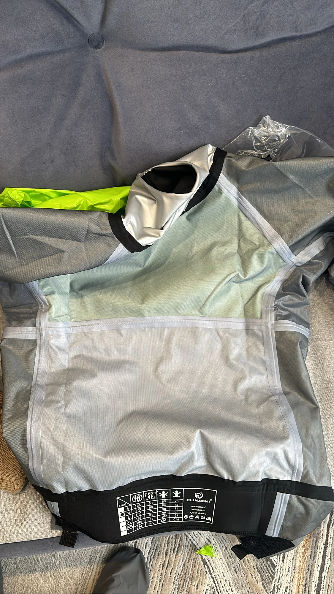 This lightweight suit is equipped with super elastic cuffs and external adjustable cuffs (double cuffs), a super large waterproof pocket storage facility in the chest, a neoprene lower waist, and a freely adjustable flap. The pants are equipped with elastic suspenders, which can be adjusted freely. With a pair of rain shoes/leather boots, you can freely fish, ride a bike, row and ski in the rainstorm.....