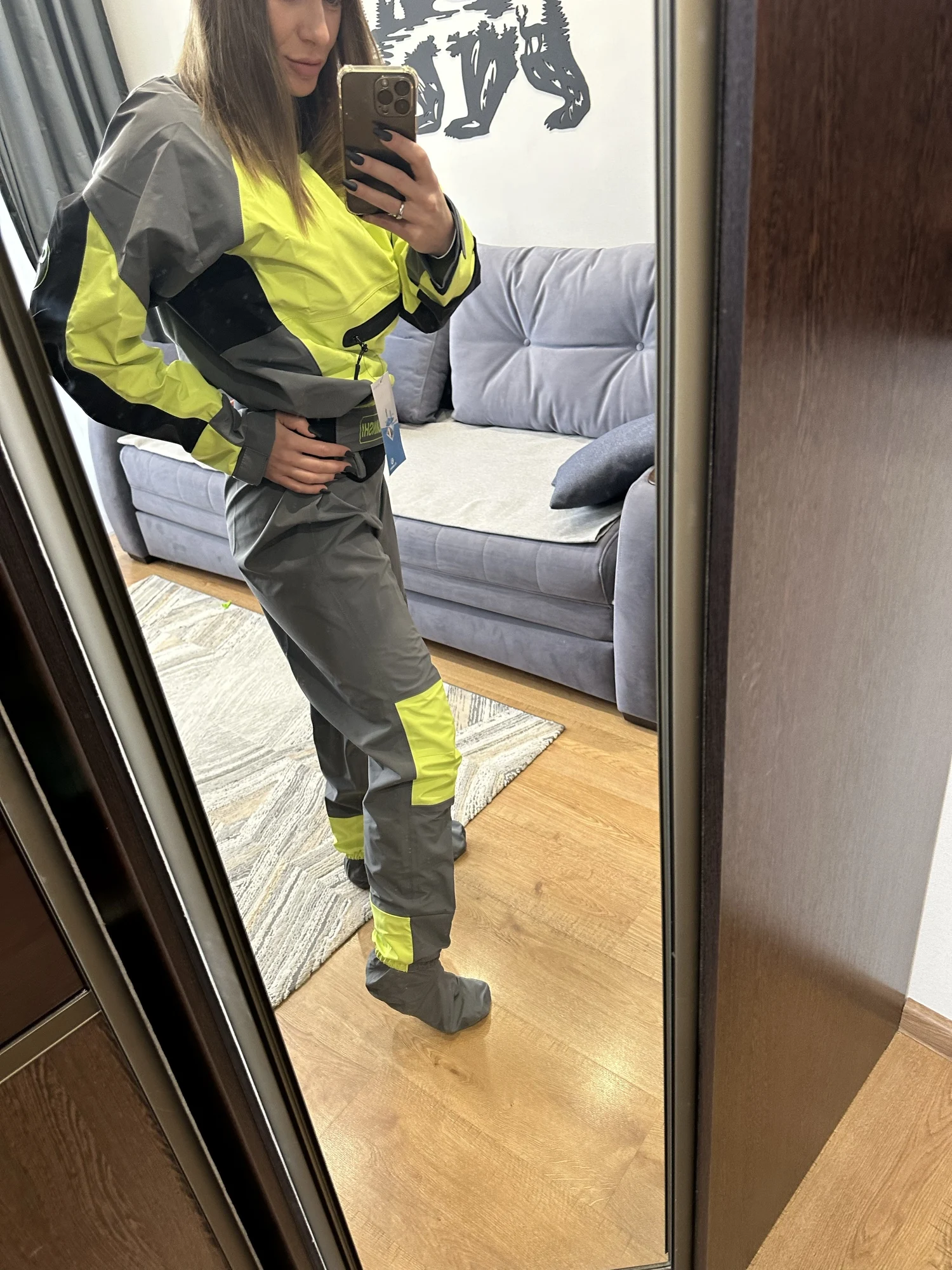 Костюм разочаровал. Размерный ряд не соответствует реальности. Взял самый максимальный размер, однако на правую ногу штаны так и не смог натянуть - манжета носков оказалось такой узкой и маленькой, что не смог просунуть стопу. Хотя левая стопа влезла без проблем. При этом куртка оделась более-менее, с запасом. Соответственно, костюмом пользоваться не могу, пришлось отдать другому человеку. Зря потраченные деньги.